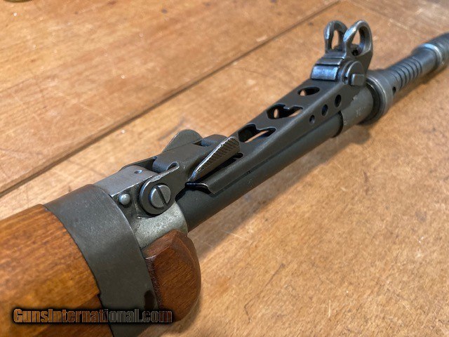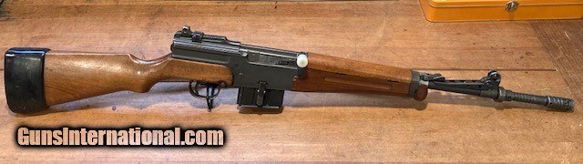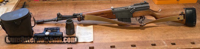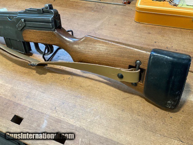 Description: For Sale is a very nice French MAS (Manufacture d'armes de Saint-Etienne) Model 1949-56, also known as "The Pride of the French Foreign Legion", chambered in the original 7.5x54mm French cartridge. The rifle was imported by C.A.I. and is in very good+ condition with everything functioning very smoothly (i.e. action, sight adjustments, mag release, etc.). The 19.5" compensated barrel has a very nice bright bore with strong rifling and also features the adjustable grenade launcher attachment. The wood is in excellent condition with the exception of one very small, pen-tip size ding near the receiver. All of the metal is in great shape as well with a few light handling marks and some very light finish wear consistent with the age of the rifle. This rifle also comes with an original scope package that includes the scope, mount, eye relief piece, and manual (in French) in the original canister, all of which are in very good condition. The rifle is also equipped with a very good condition leather sling and one 10-round magazine. L.O.P. is 13-3/4" over a nice "MAS 1962" buttstock pad. This is a very interesting piece of military history that would make an excellent addition to any collection. Feel free to call or text with any questions. Thanks for looking! SOLD Rifle Caliber: 7.5x54mm MAS |