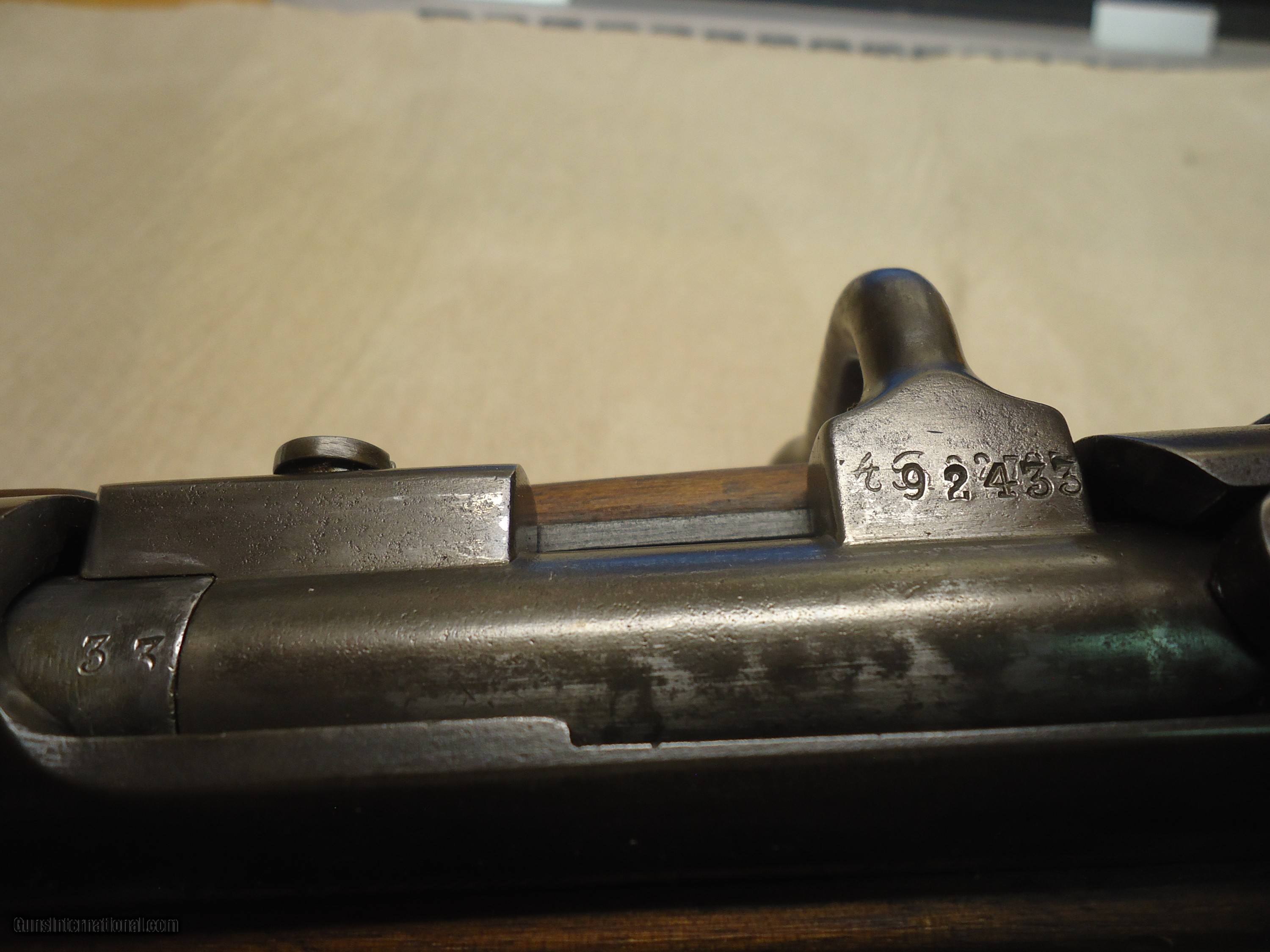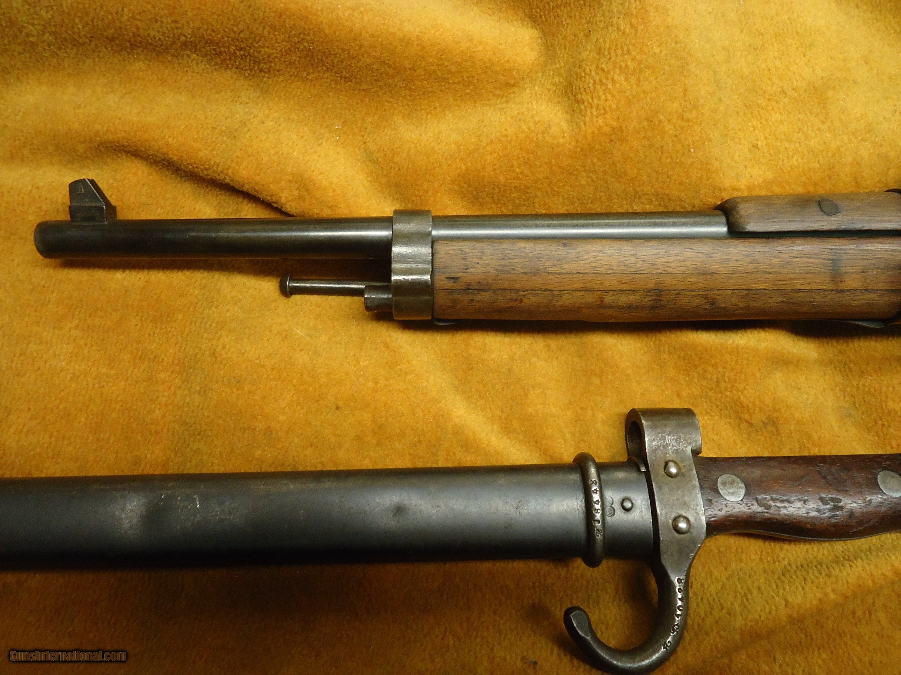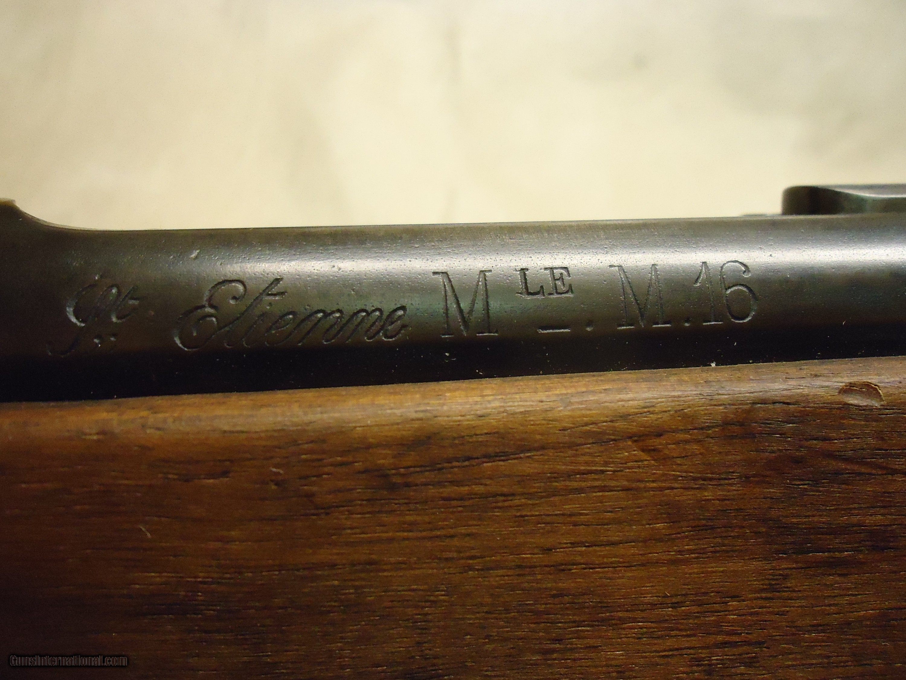 Description: French St.. Etienne M LE. M.16 8mm Label (8x51R) Carbine. All matching, Excelent bore, Original sling. 2 boxes commercial ammo, 3 stippers and 23 rounds of original ammo, for additional $125.00 SOLD Rifle Caliber: 8x56mmR, 8x56mm MS Manufacturer: St. Etienne Model: M LE M16 Serial Number: 92433 Barrel Length: 18 |