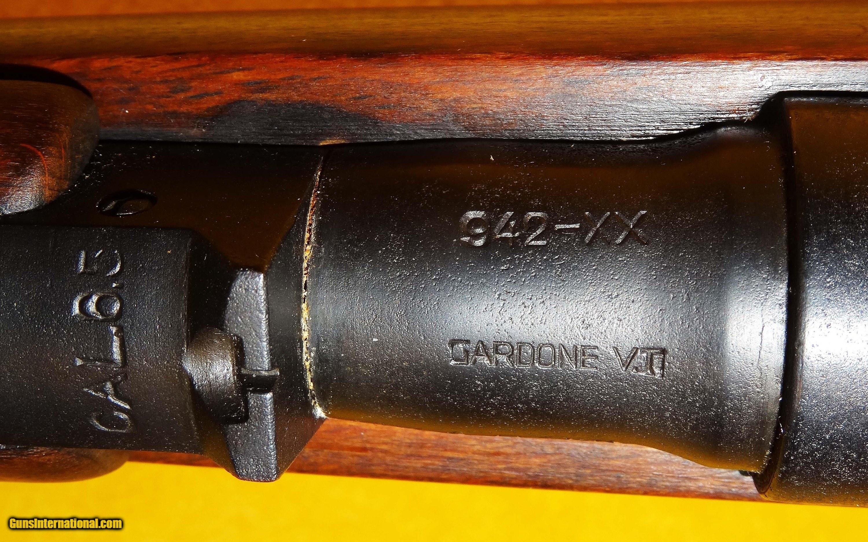 Description: GARDONE VT CALVARY CARBINE CARCANO IN 6.5 CARCANO CAL., WITH 18" BARREL. COLOR BLUE. CONDITION 95%. SERIAL NUMBER RY1890. GARDONE VT MODEL CALVARY CARBIN CARCANO, BRIGHT BORE WITH STRONG RIFLING, FIXED FOLDING BAYONET, ALL MATCHING NUMBERS, FIXED REAR SIGHT, WOOD IS VERY GOOD TO EXCELLENT, COMES WITH ONE STRIPPER CLIP, 95% OVERALL CONDITION, OUR STOCK # D63. SOLD |