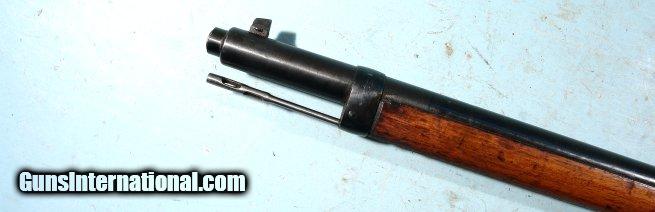 Description: GERMAN LOEWE GEWEHR 88 OR 1888 COMMISSION 8x57 RIFLE. Serial number "160". Receiver stamped "Loewe Berlin 1890" with an "S" over it. Receiver in the white correct. Regimental markings next to "GEW 88" on left says "74 L.R.10.2". Crown proofs on right. Slot cut for stripper clip feed. Barrel with old arsenal re-blue and excellent condition with no dings. Rear sight with Turkish graduations. Sling swivels with slight bit of corrosion but still blue. Small repair along forend. Original cleaning rod. Bore mint. Crisp trigger pull and bolt lock-up. Perfect working order and shoots like it should and very accurate. Hard to find these anymore. SOLD Antique: Yes |