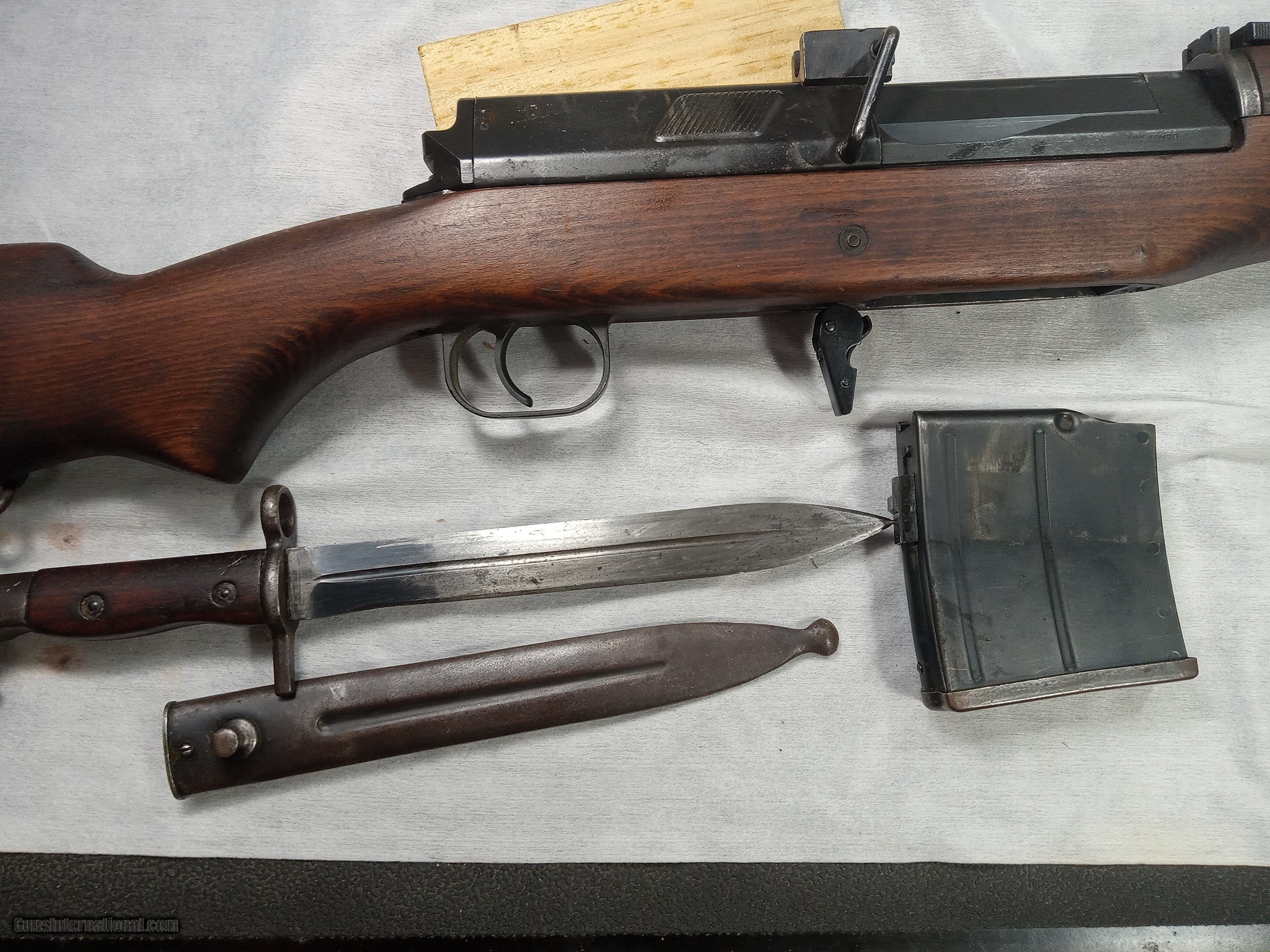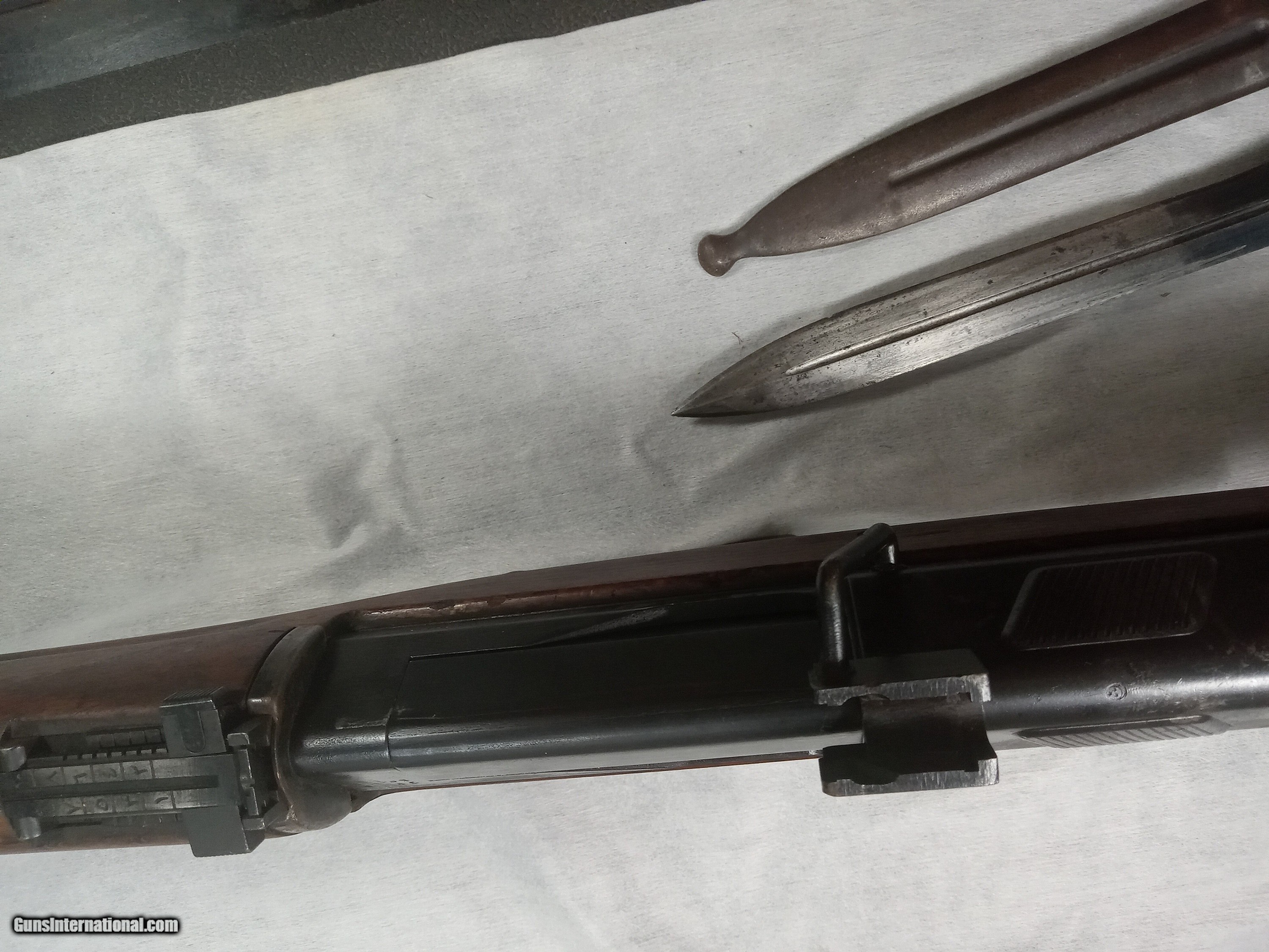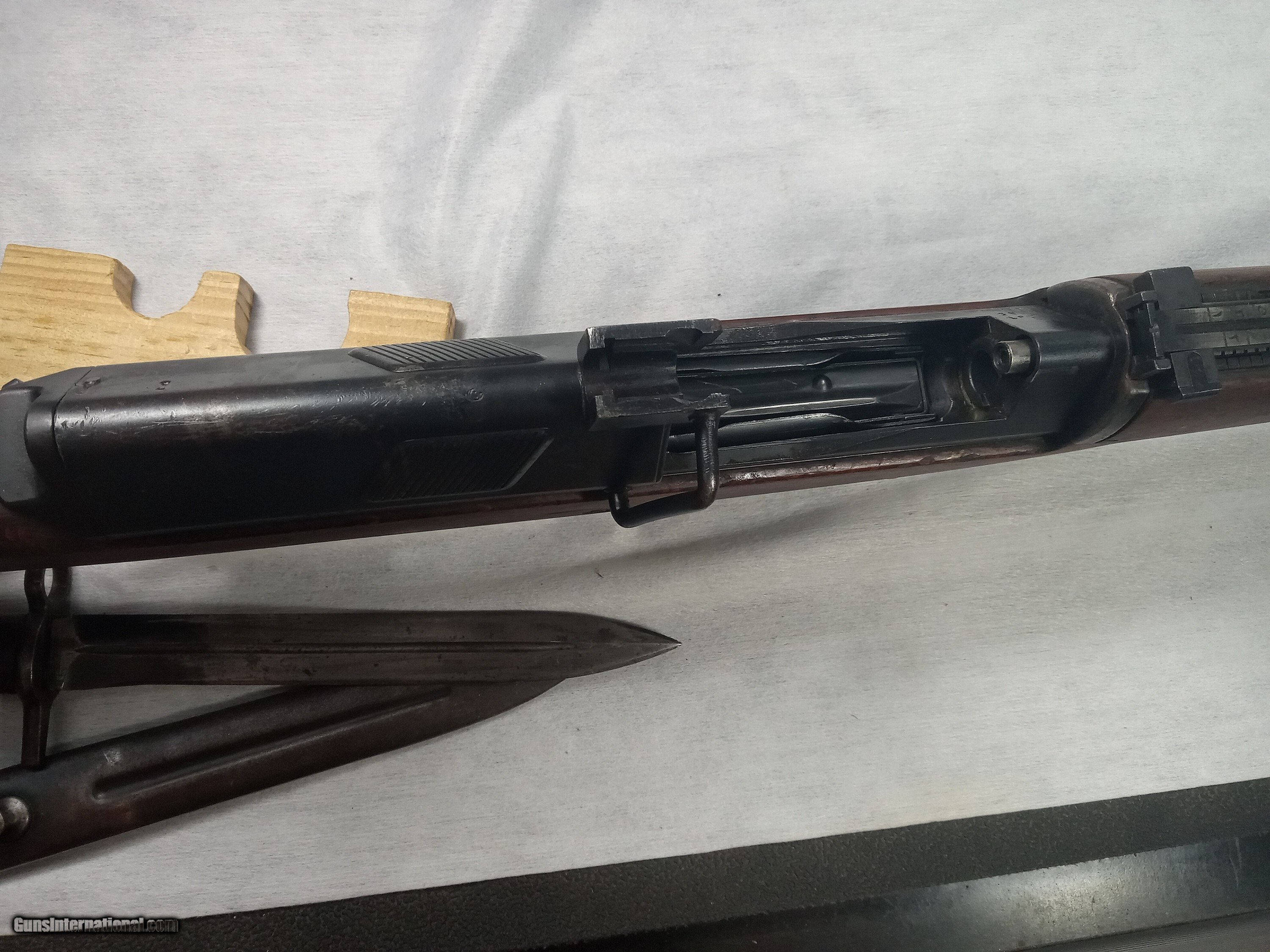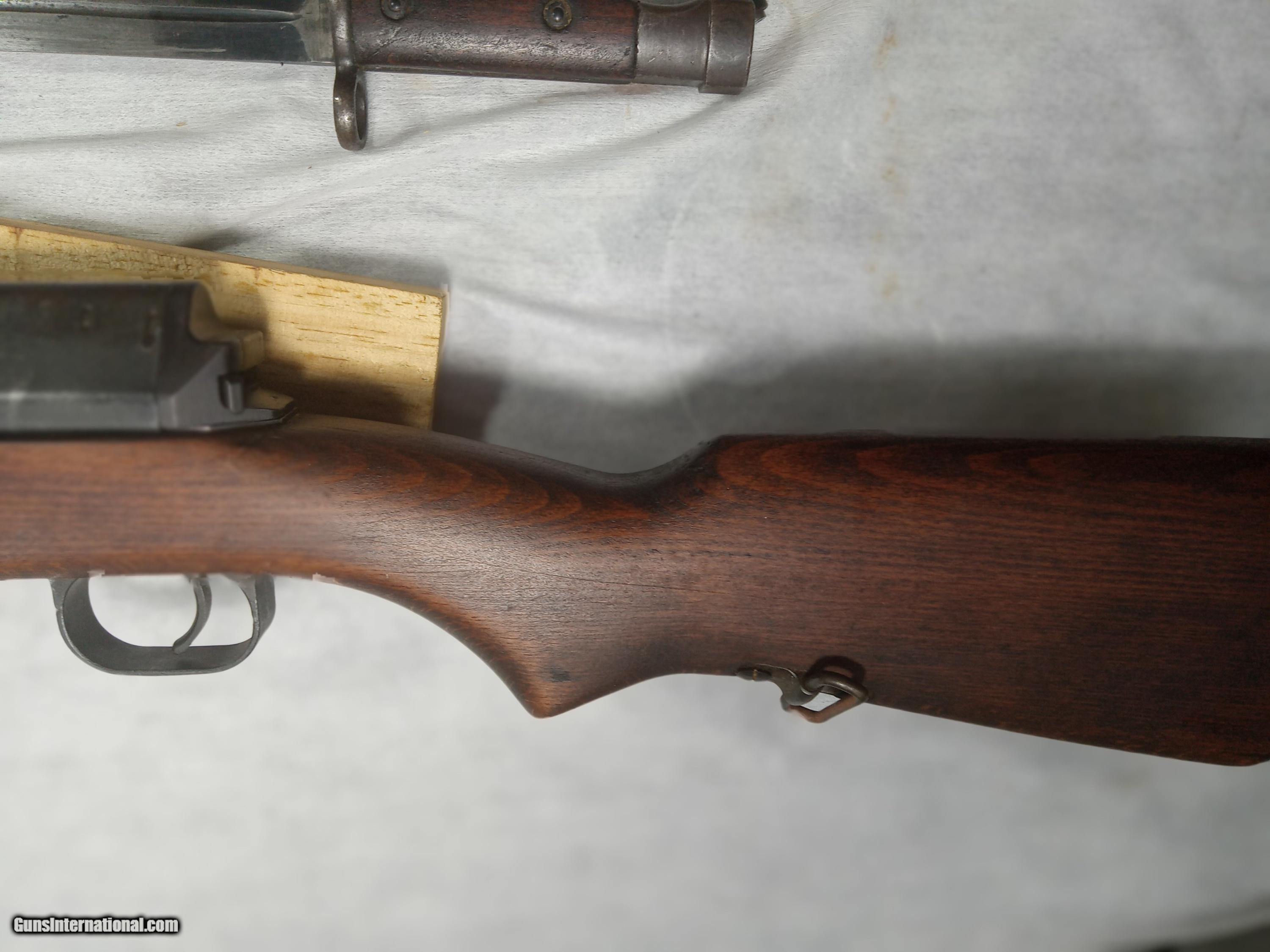 Description: egyptian hakim 8mm bore is excellent with strong rifling blue is about 80% + wood is very good condition action is crisp and works as it should bayonet and scabot in good condition SOLD |