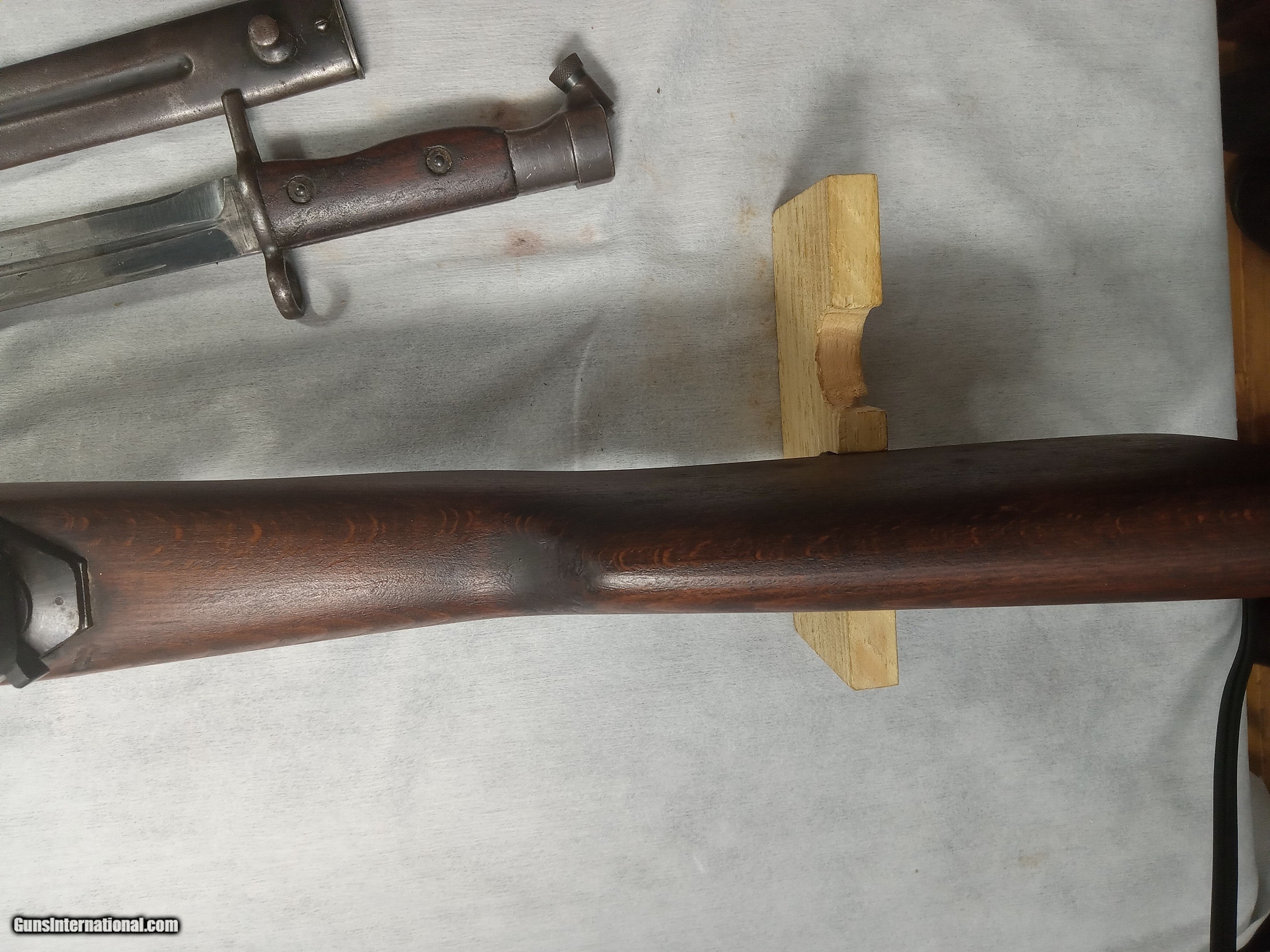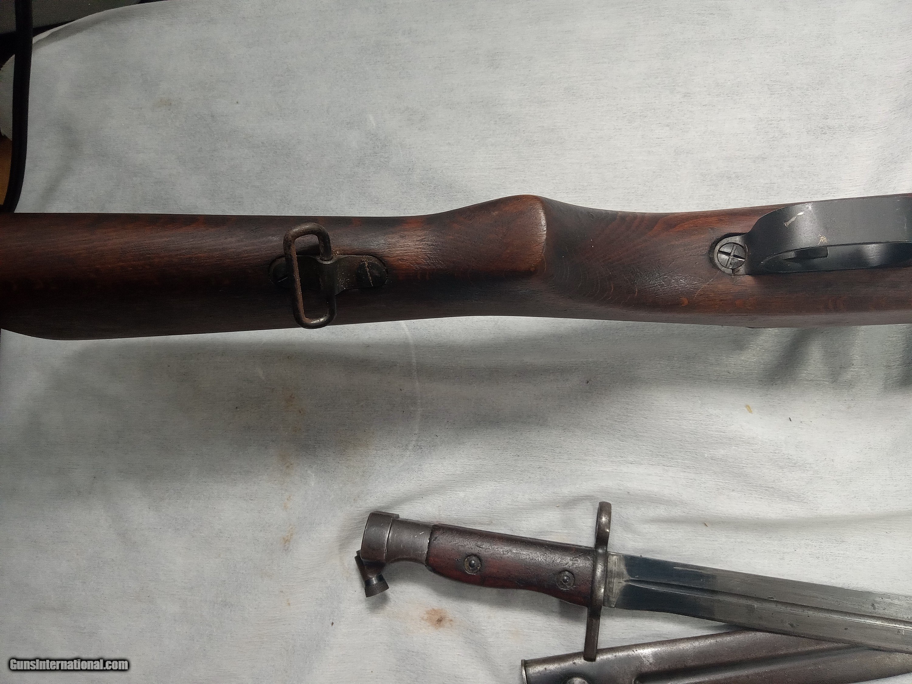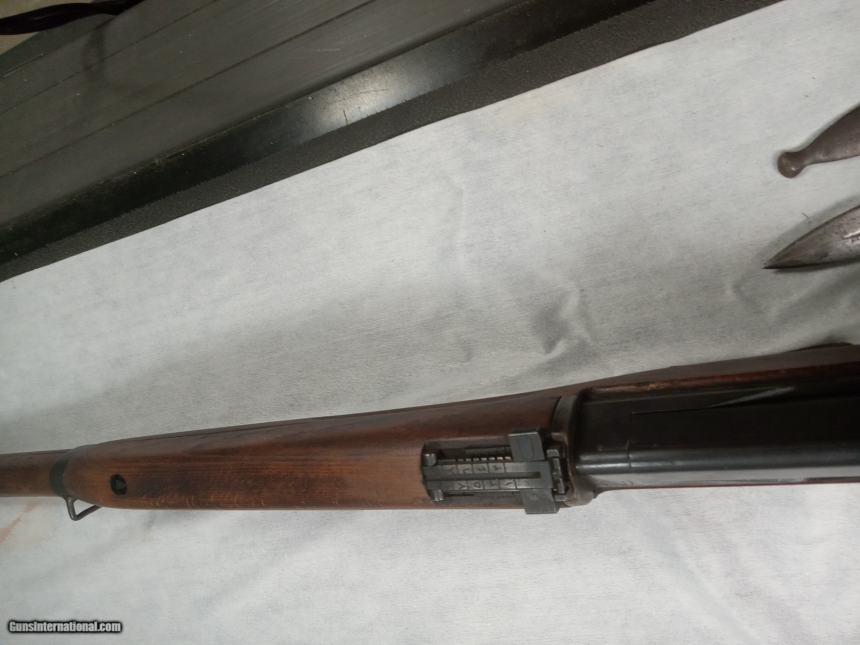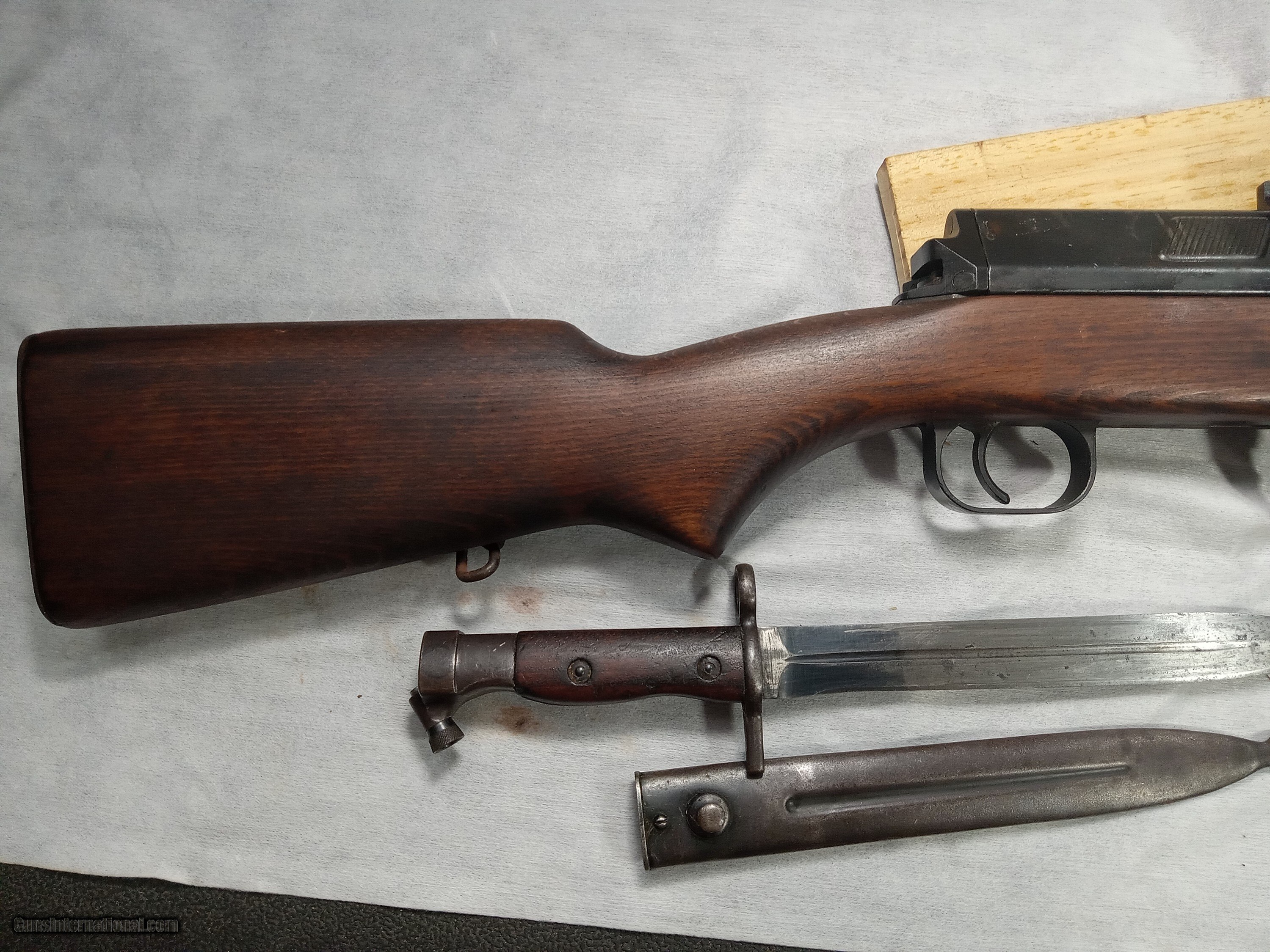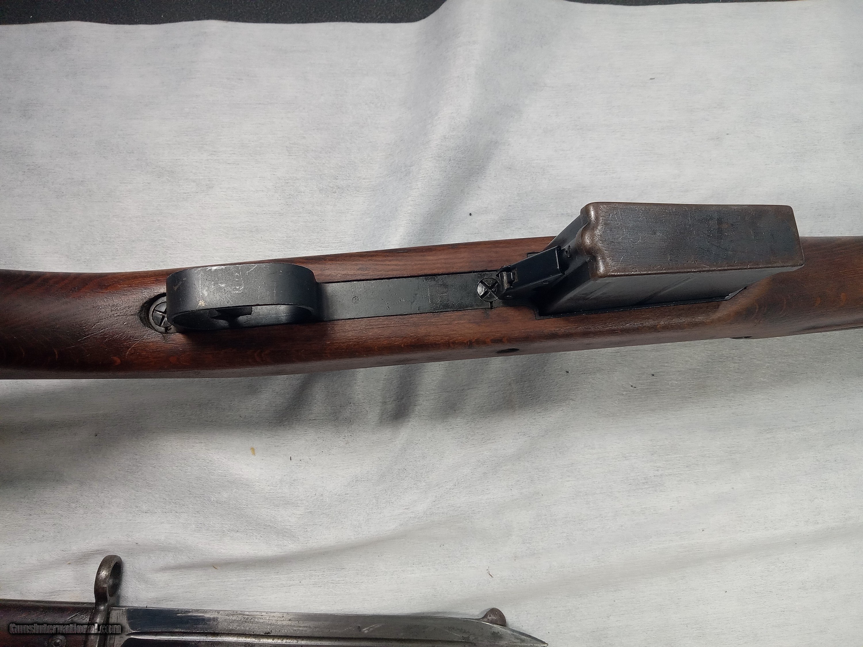 Description: egyptian hakim 8mm bore is excellent with strong rifling blue is about 80% + wood is very good condition action is crisp and works as it should bayonet and scabot in good condition SOLD |