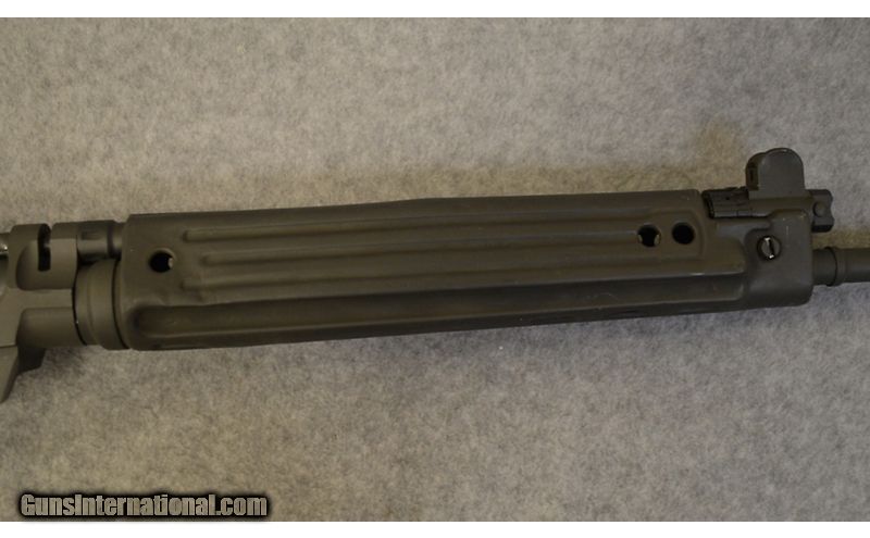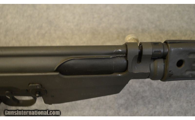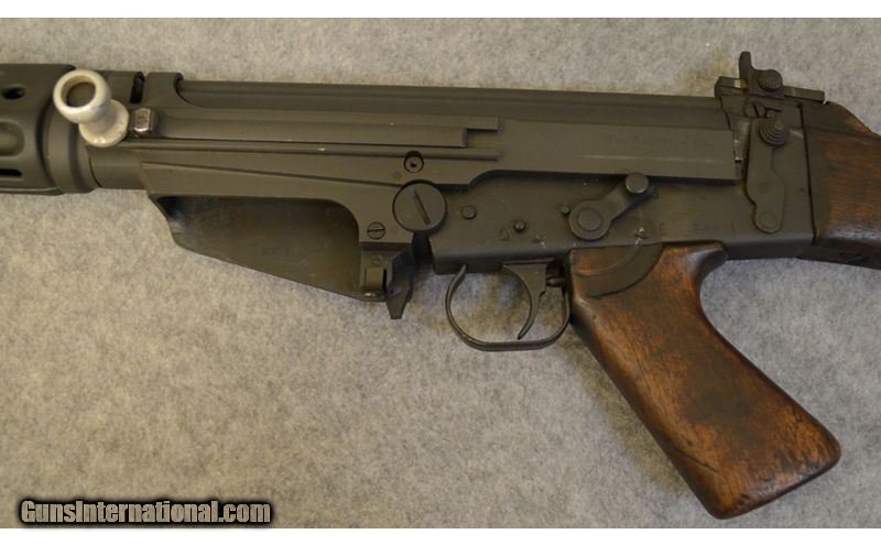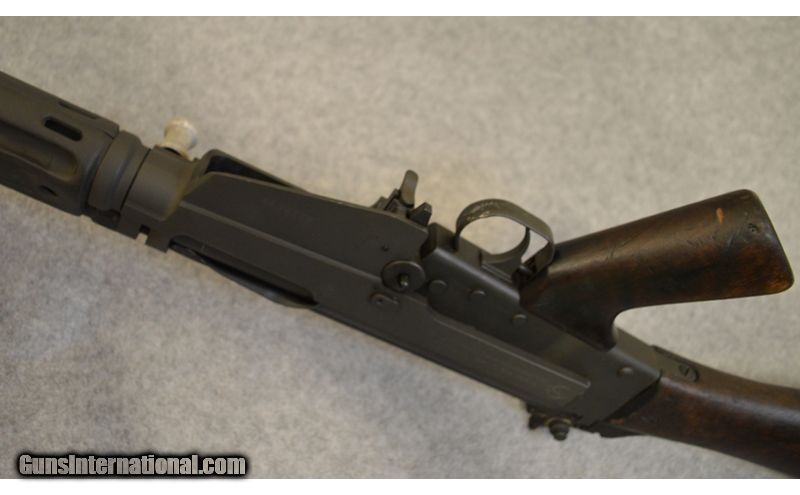 Description: This is semi-automatic metric pattern G1 FAL kit built on IMBEL XFAL receiver chambered in 7.62×51 mm. It has 20.5" barrel. The stock and pistol grip are matching wood in good condition with some scratch marks. The metal is in good condition with some dents and scratches. This rifle has no magazines with it. 7.62 x 51mm SOLD Chambers: Semi-automatic Metal Condition: Good with some dents and scratch marks. Wood Condition: Good with some scratch marks Bore Condition: Bright and shiny. Barrels: 22.5 Triggers: Single curved trigger Stock Dimensions: 14" LOP Fore End: Stamped sheet metal with vertical grooves. Butt Pad: Stamped metal butt plate. Weight: 9 Lb 3 Oz. Sights: Front post sight and range adjustable rear sight. Item Location: Huntsville, AL |