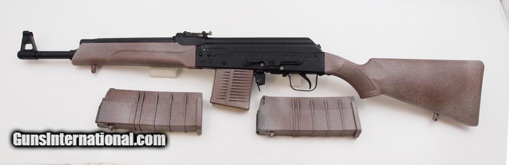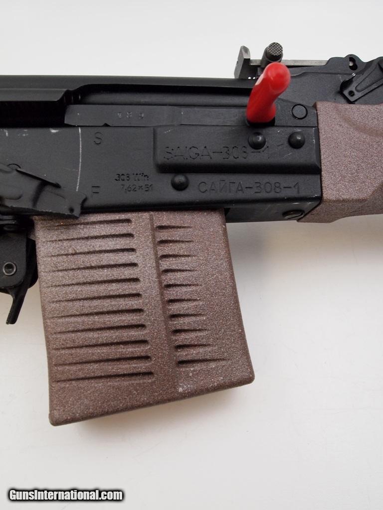 Description: IZHMASH (Russia) SAIGA 308-1 .308, 16" bbl, bright shiny bore, strong rifling, black finish, adjustable notch rear sight, post in military wings front sight, stock, forearm, and three magazines have a desert sand finish. This rifle is in very good to excellent condition. Add 3% for Credit Card Shipping $30.00 SOLD |