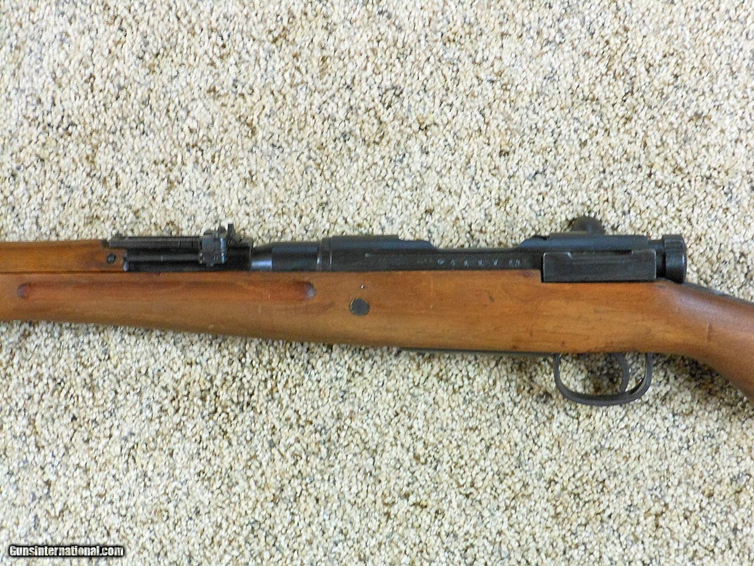 Description: Quality Consignments Wanted! This rifle's serial number is 4117. This rifle is all matched serial numbers including the bolt. The "MUM" is intact. The "AA" sight is also intact. The monopod is intact and not a replacement. The bore is sharp and bright. The bayonet has a rubber style scabbard. This rifle is in original issued condition. It shows very little use. The stock is in very nice condition with no dents or other issues. This is a really nice original 7.7 Japanese Type 99 rifle that is intact. Search for hlvfineguns on google. Curio&Relic C.A.C. Consn. F. No. 220 SOLD Curio/Relic: Yes Manufacturer: Japanese Arsenal Model: 99 Serial Number: 4117 Caliber Info: 7.7 Japanese |