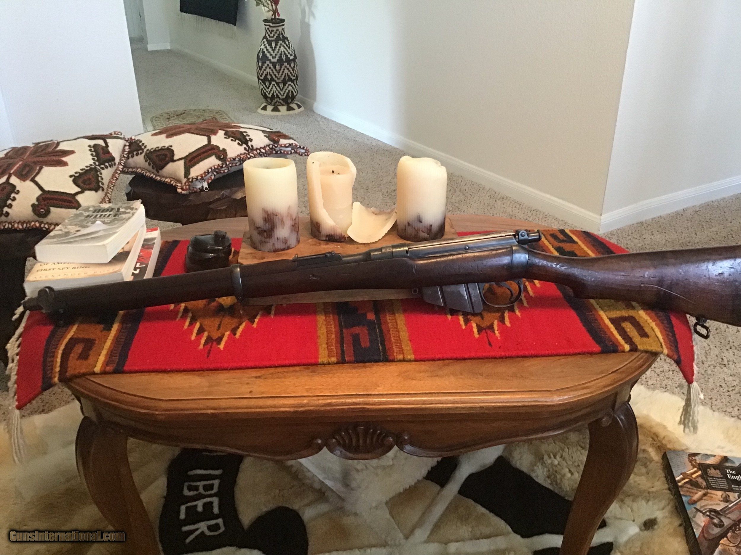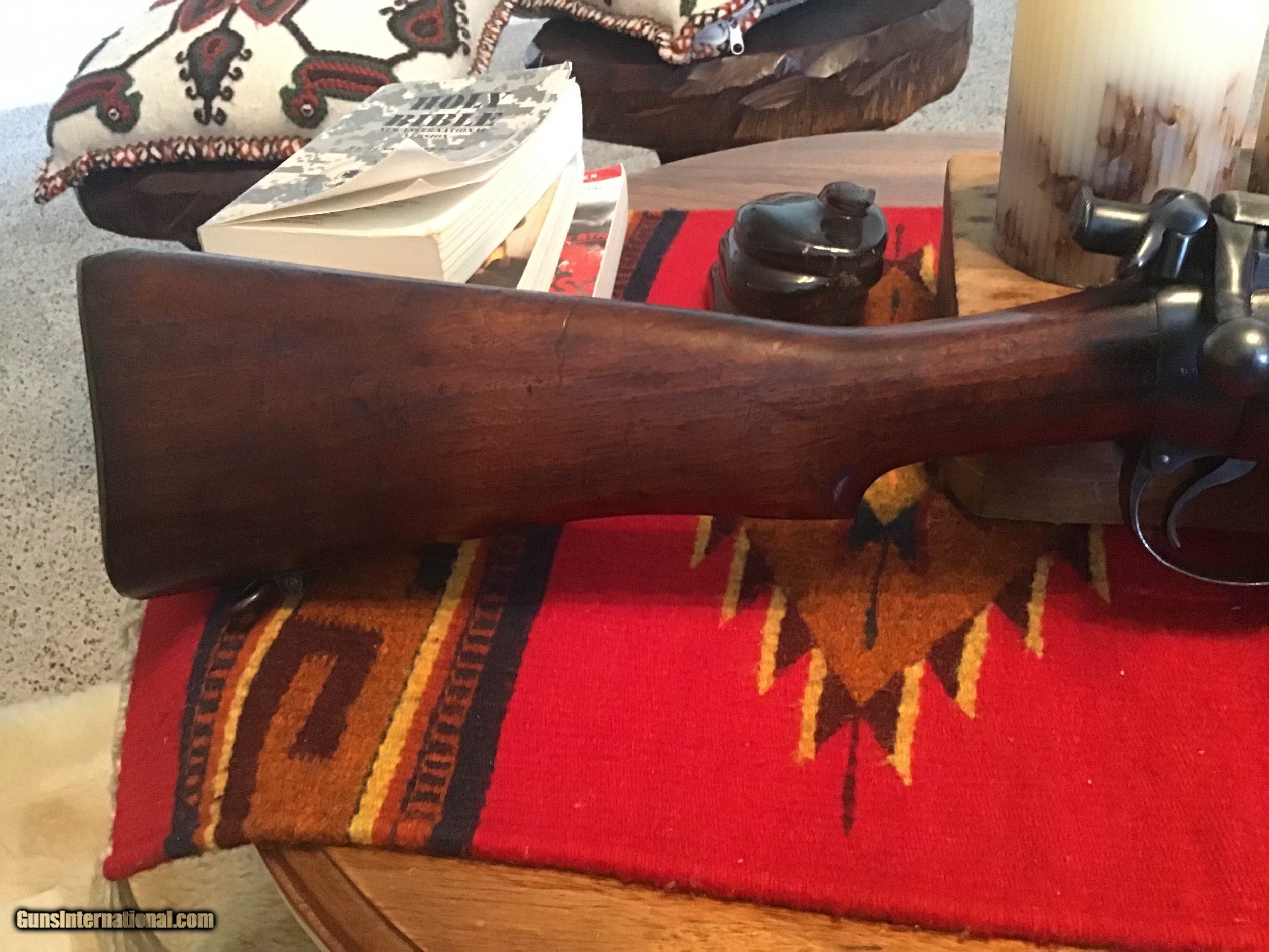 Description: Thinning out the herd. Highly collectible, super rare and untouched. From my personal collection. Bought this from Commonwealth Arsenal. Write up credit Commonwealth Arsenal. Buyer pays shipping. Out of the Bob Faris Collection. Lee-Enfield Mk.I* Cavalry Carbine; 1899 BSA, Birmingham, England Production/Officer's Private Purchase; .303 British; Capacity: 10 Rounds; Barrel: 21" Round Very rare officer's model LEC I*...this Enfield was manufactured in 1899 by seminal producer BSA for retail to the Victorian officer elite who were, at the time, expected to furnish their own small arms. Approved by the MoD in 1896, the LEC was the scaled-down variant of the historic Long Lee-Enfield rifle. Identified as a Mk.1* by the lack of a cleaning rod provision in the forestock, the gun may be further dated by its low, three-digit serial number. Features include a magazine cut-off, 21" round barrel, bolt-mounted safety, dust cover, and full-length, Mannlicher-style stock fitted with a muzzle cap that would later be modified for use in the iconic Short Magazine Lee-Enfield. Manufactured for less than 10 years beginning in 1896, the LEC was, at the time, among the world's finest shoulder arms. With most seeing hard use during the Second Boer War and extensive modification prior to the First World War, original examples are rarely seen outside of museums or advanced private collections. A desirable officer's variant of history's longest-serving bolt action rifle, this 1899 BSA LEC I* represents a sound investment and a truly exceptional find for the dedicated British arms enthusiast. Condition Good condition, the gun has seen no refinish, refurbishment or restoration, with factory blue around 60%, the balance consisting of even fading and typical pale blue/grey patina. There is oxidation and high edge wear, but no rust or pitting visible. The markings include all matching serial numbers(bolt, rear sight, barrel and receiver), as well as BNP/pressure test marks; neither import nor export mark are present. The Walnut furniture is in good condition with an unfaded BSA cartouche on the pistol grip. There are scrapes, pressure dents, handling marks, a couple of superficial hairline cracks and two 1/8" patches of wood filler on either side of the stock beneath the rear sight(pictured). Having no damage, cracks or repairs of note, the furniture is original to the gun and the buttstock could benefit from a light tightening. Mechanically excellent, the rifle headspaces correctly and the action is both brisk and smooth. The bore is remarkably fine displaying sharply-edged rifling beneath light lint, there is no visible pitting, frost or rust. Provenance: ex. Bob Faris Collection. SOLD Curio/Relic: Yes |
