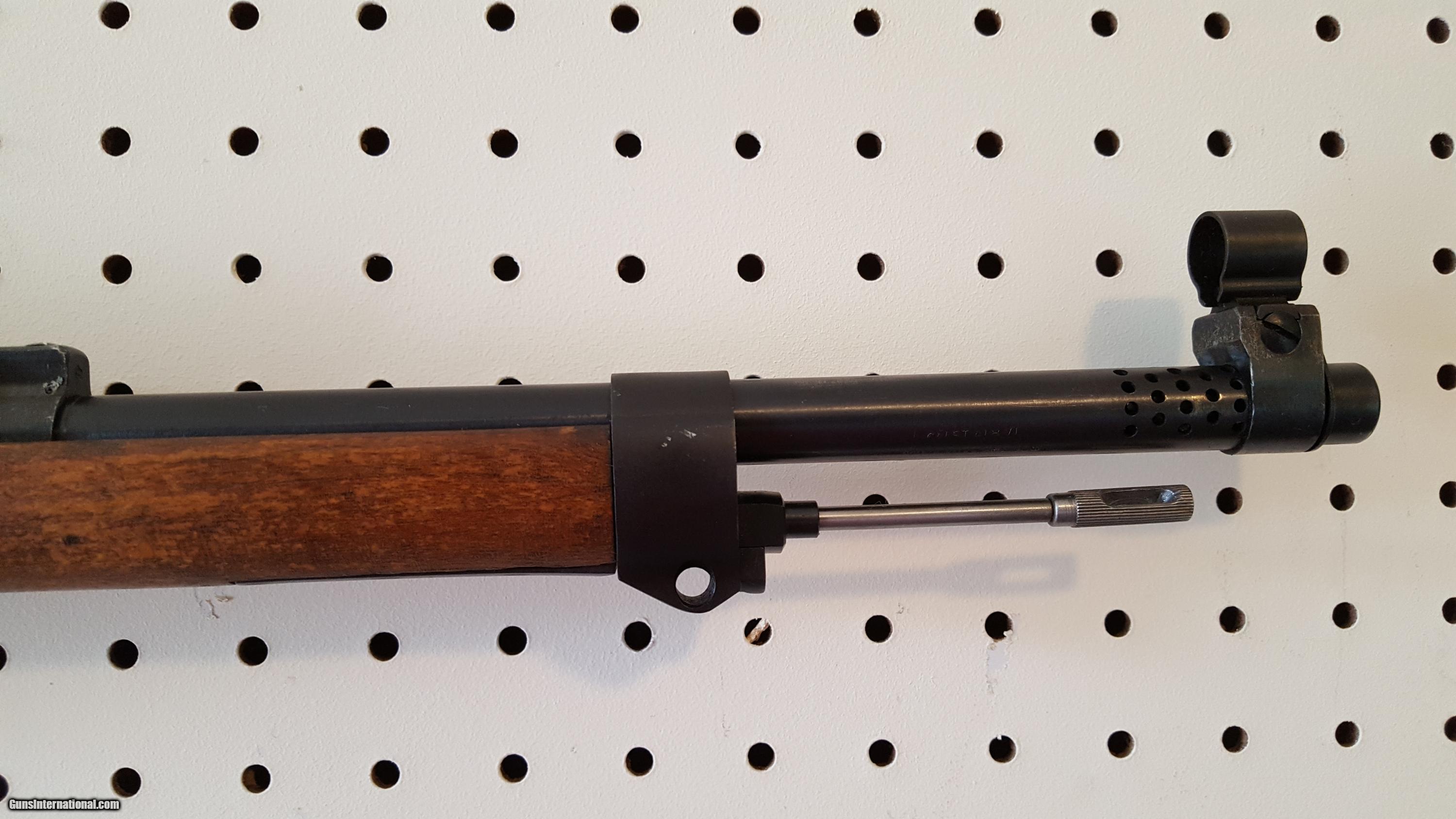 Description: Ljungman. Model 42-B Swedish semi auto military rifle. Cal. 6.5x55 mm. 24 1/2" barrel with a mint ore. These were placed in service with the Swedish Military in 1942. Manufactured by Carl Gustafs Stad. It is a direct gas operated design with no piston or rod. Features a ten round detachable magazine, military sights, full length military stock, and hand guard with barrel bands. Date on left side of frame is 1943 with crown. Right side of stock has the original brass disc. Metal finish in rust blue and black enamel of which frame, trigger guard and barrel retain virtually all of their original finish. This rifle is basically a variation of the Egyptian Hakim rifle, with certain upgrades. This rifle has seen little to no use and appears to be un-issued. Very scarce Swedish semi-auto. Serial # 1798. SOLD Curio/Relic: Yes |