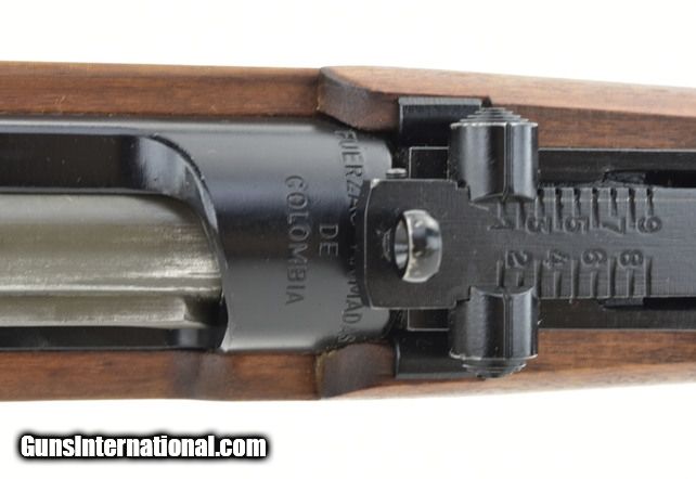 Description: Madsen M1947 .30-06 caliber rifle. Columbian contract Madsen rifle. Bore is excellent. Wood is near excellent with some light handling wear. Near excellent condition. A desirable military rifle.