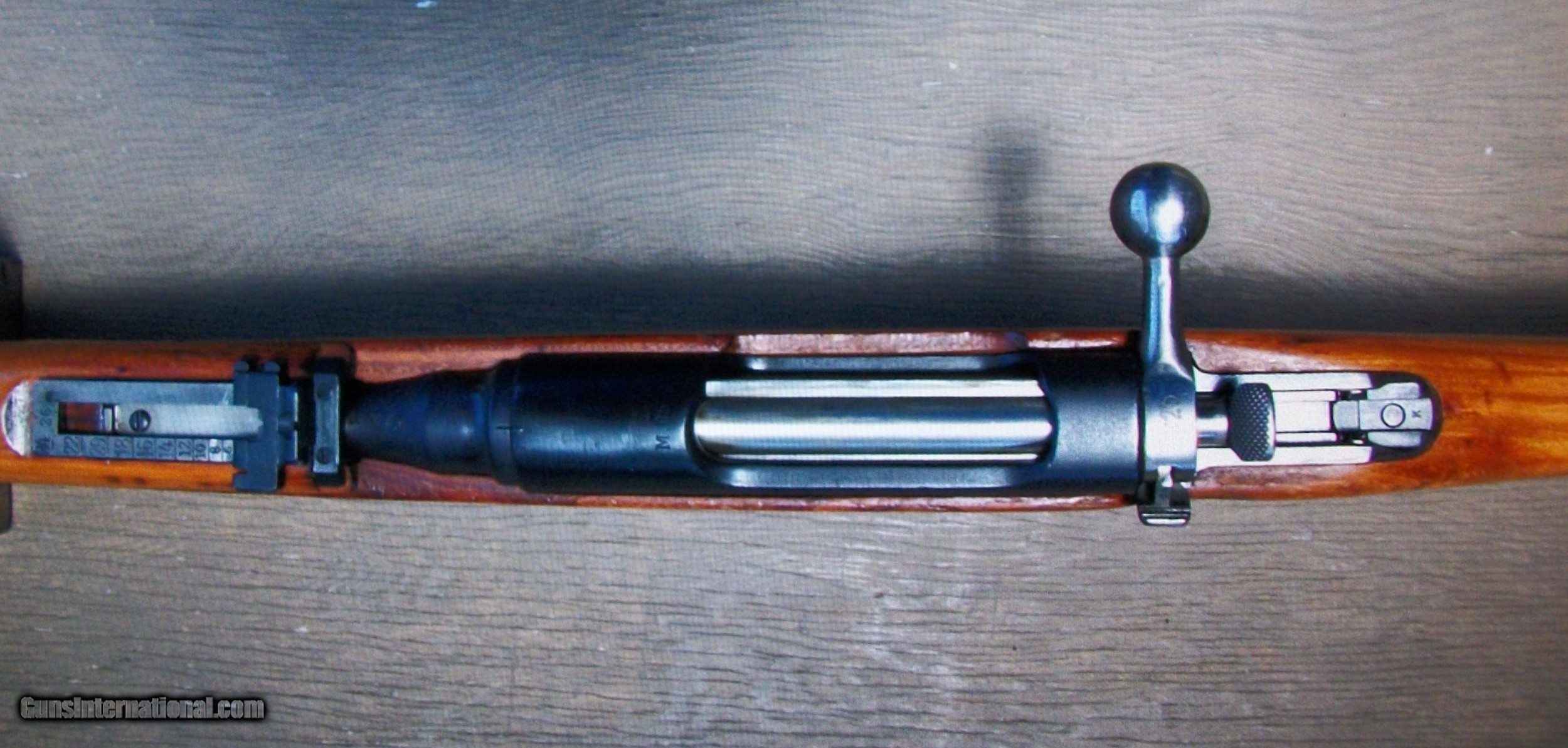 Description: Mannlicher M95. 8 x 56 mmR cal. marked Styer 1903. Austrian straight pull action. Arsenal refinished. Very good condition. Matched action and barrel, #3720P, bolt engraved and stock stamped to match. Barrel stamped S, indicating "spitzer cartridge". Bore a little frosty, rifling sharp. $460 shipped to FFL or C&R License. gchase1san.rr Gordon 858 274 9228 SOLD Curio/Relic: Yes |