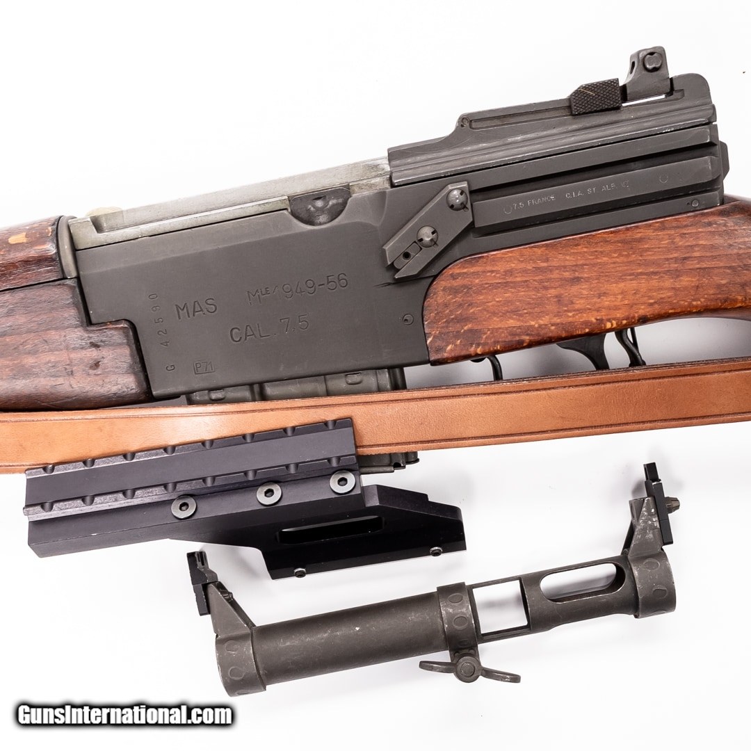 Description: Guns Listing ID: 399414 The French military wanted to concentrate on the development of a semi-automatic rifle for the entirety of their infantry in 1938. However, the development of this idea was hampered by the French capitulation in 1940. Thus, even though the model and design prototypes started in the 30's, the design was not adopted into French service for production until 1949, thus leading to the MAS-1949 designation. In 1957, the improved MAS-1949 was adopted with upgrades from lessons learned from field experience. The rifles were shortened, lightened, and an integrated grenade laucher/compensator was installed, paired with an integral grenade sight which cut off the gas system to cycle grenade blanks. This rifle includes one 10-round magazine, a sling, a scope rail mount, a cheek riser, and night sights. SOLD Curio/Relic: Yes Manufacturer: MAS Model: 1949/56 Caliber Info: 7.5X54MM FRENCH Condition: Used - Certified Barrels: 19.5 BARREL Finish: BLACK |