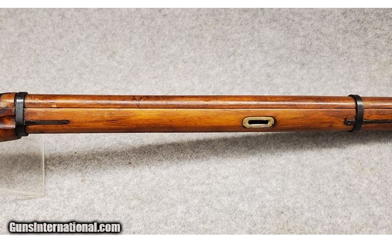 Description: Mosin Nagant M91/30 in 7.62x54mm with a five round capacity and a 28" barrel. Metal butt plate. Blued trigger guard, magazine box, untextured trigger, receiver and barrel. Rear bolt twist safety. Rear flip up adjustable and front hooded fixed blade. Metal slots to mount a shoulder sling. Comes with a bayonet. Matching serial numbers on parts. Must ship to a C&R or FFL holder. Condition: Good/Very good with light scratches, wood dings and metal oxidation. The rifled bore has a moderate grain with strong rifling. 7.62x54R SOLD Curio/Relic: Yes Chambers: 7.62x54R Metal Condition: Great Wood Condition: Great Bore Condition: Great Barrels: 28 Stock Dimensions: 14" LOP Fore End: Great Butt Pad: Great Weight: 9lbs 7oz Sights: Open Sights Item Location: Berlin |