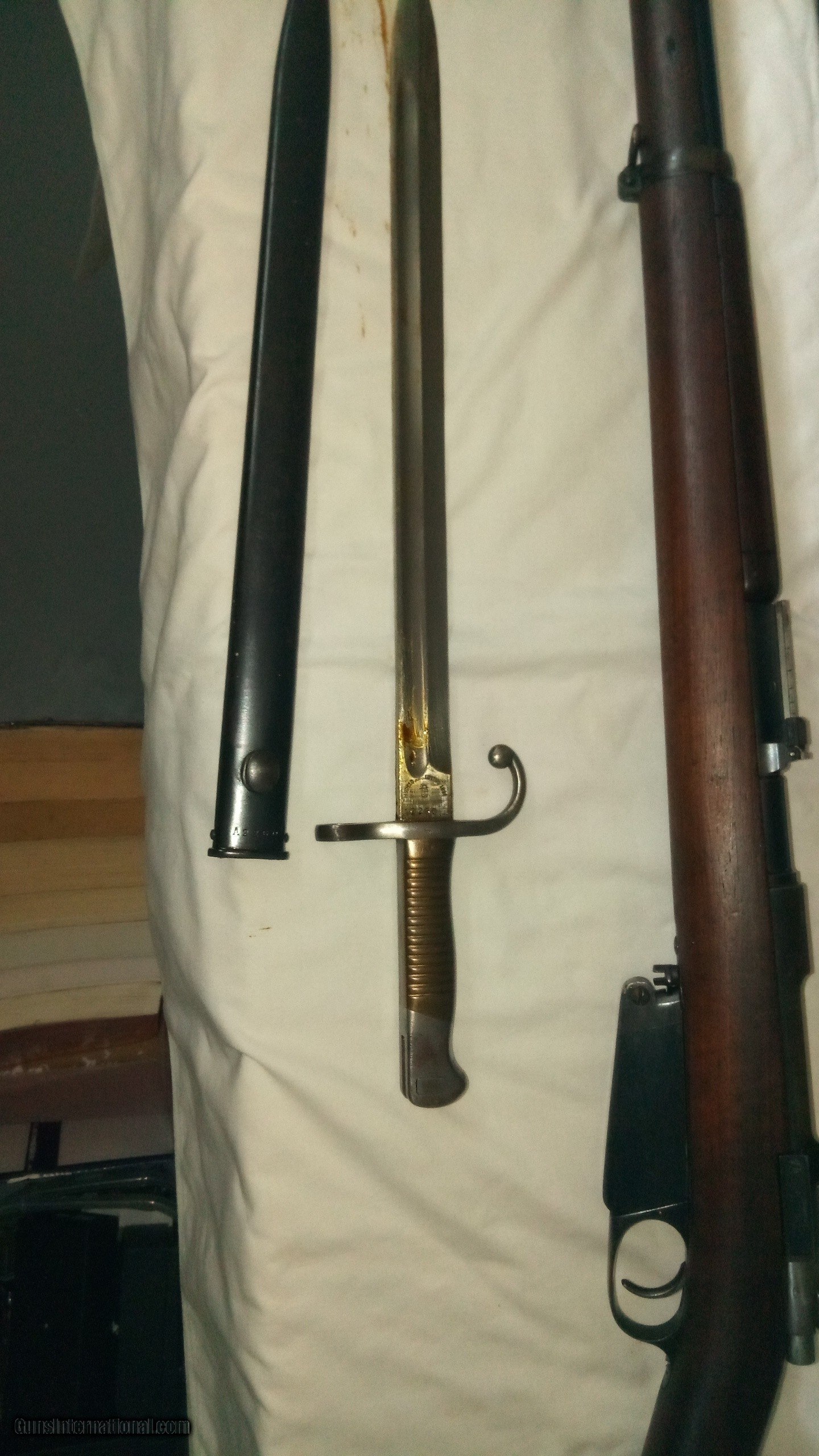 Description: All matching numbers except for cleaning rod. Crest is intact, excellent bore, 90% bloom, wood is matching w/good markings, bayonet is 90% w/crest. SOLD Curio/Relic: Yes Antique: Yes |