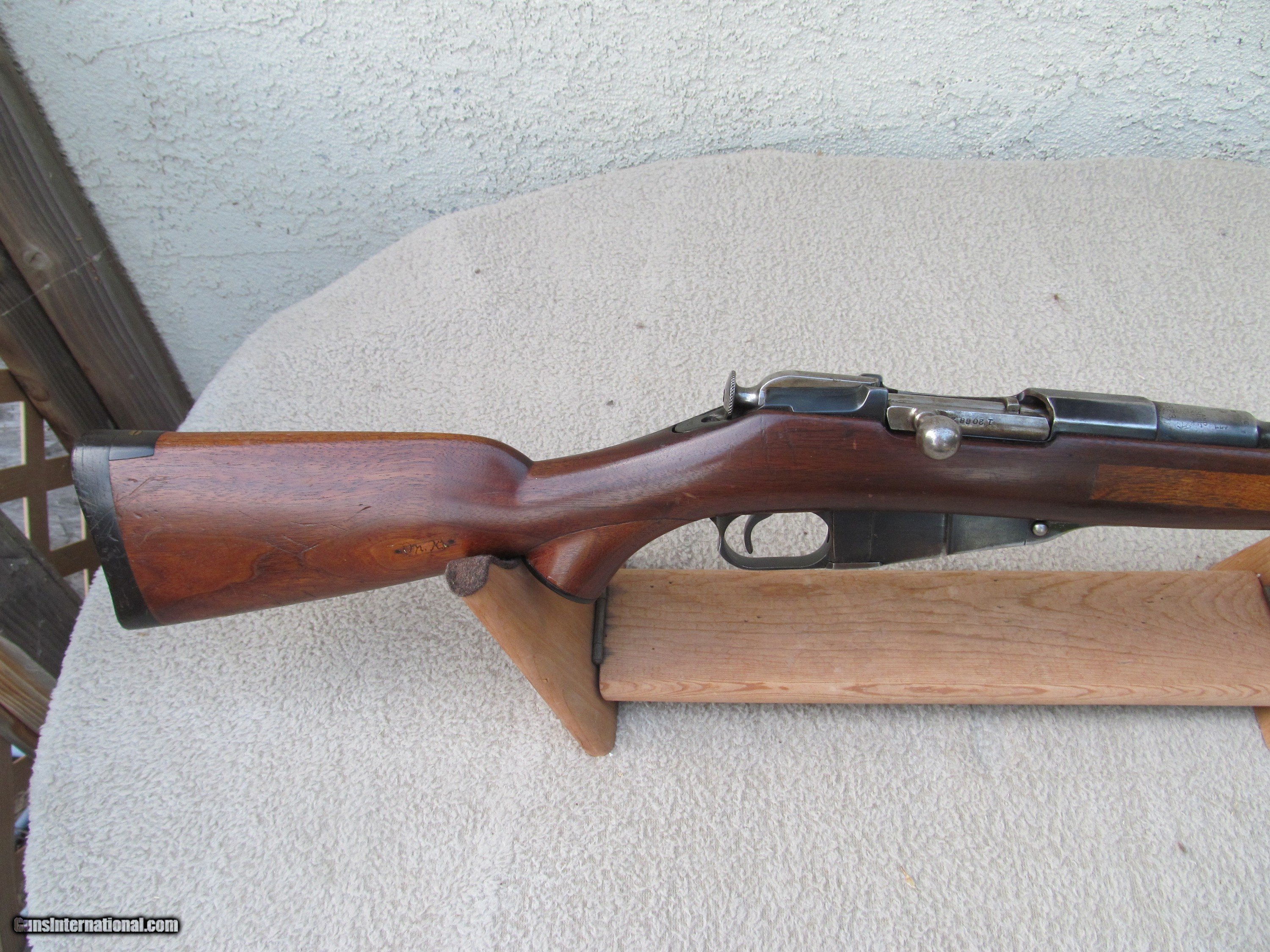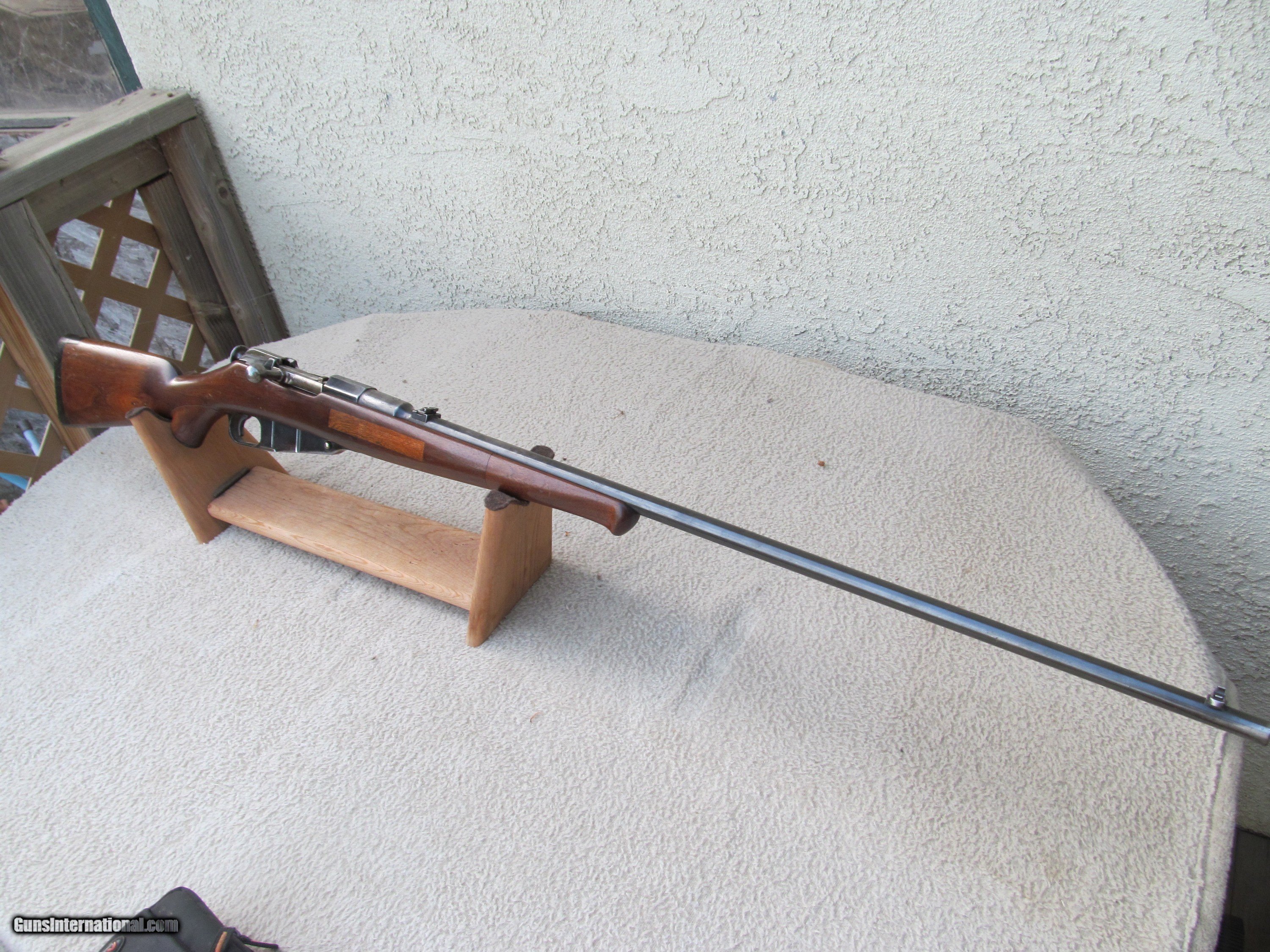 Description: This rifle is all matching , siock has been sporterized in a very uniqe way. (see photos) Bore is rough , but still shoots, may clean-up ? Good for restoration .Non import. Selling due to medical Must ship to FFL, that will receive from individual. Must be checked by gunsmith before shooting SOLD Bore: rough Metal Condition: clean Barrels: 31 |