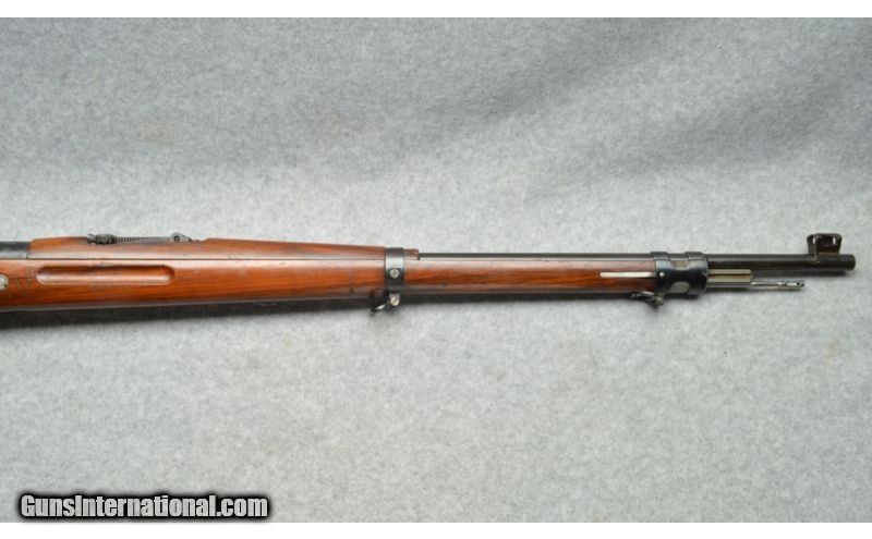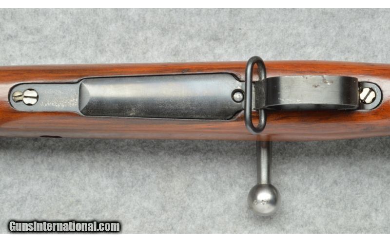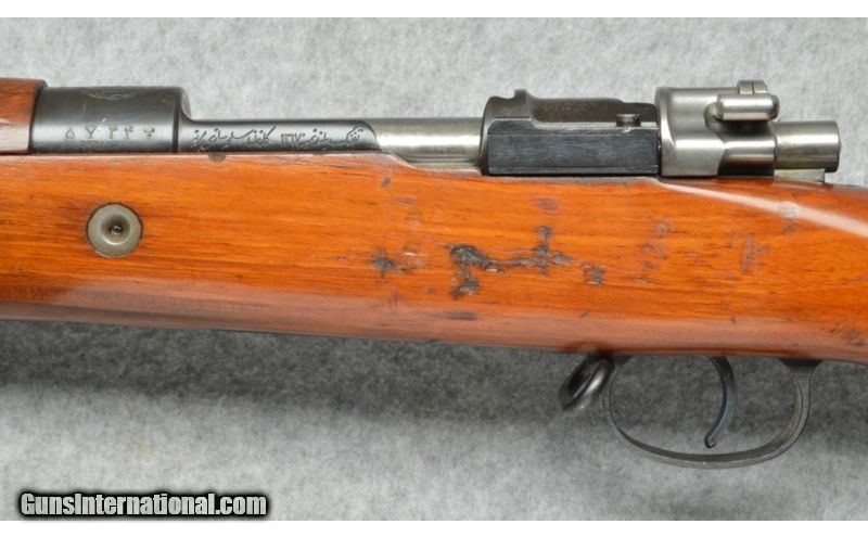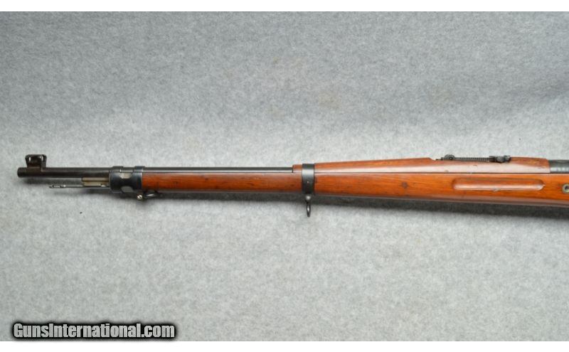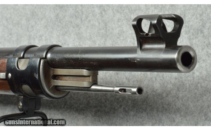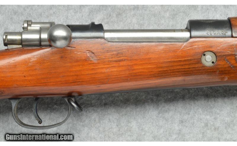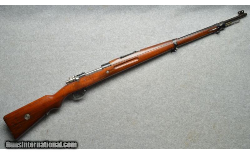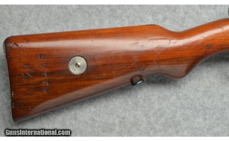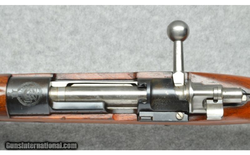 Description: SOLD Curio/Relic: Yes Manufacturer: Estimating 1940. Caliber Info: 8mm Mauser Chambers: Bolt action, five round internal magazine. Metal Condition: Very good. Wood Condition: Very good. Bore Condition: Excellent. Barrels: 29 inch rifled blue barrel. Triggers: Two stage trigger. Stock: Smooth semi pistol grip wooden stock. Stock Dimensions: 13 1/8 inch length of pull. Fore End: Smooth fore-end with top cap over barrel. Butt Pad: Steel butt plate. Weight: 9 1/2 pounds. Sights: Blade front sight with protective wings, rear sight is adjustable to 2000 meters Item Location: Berlin, MA |