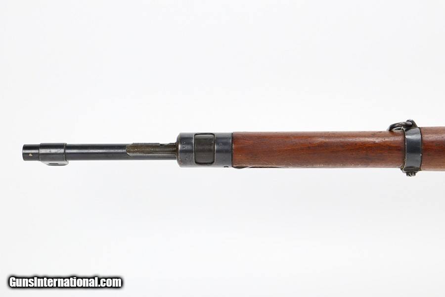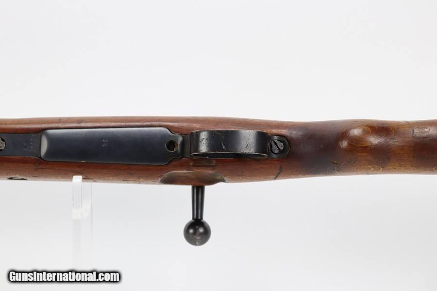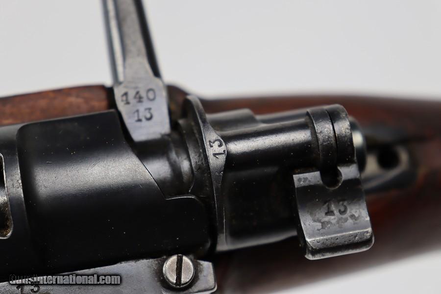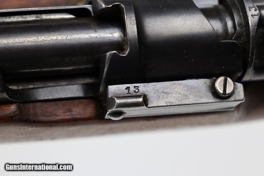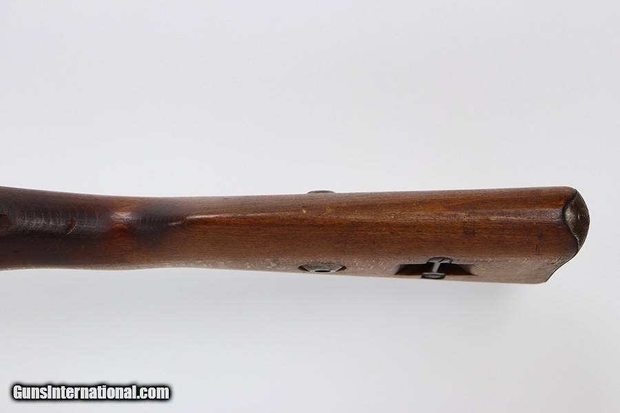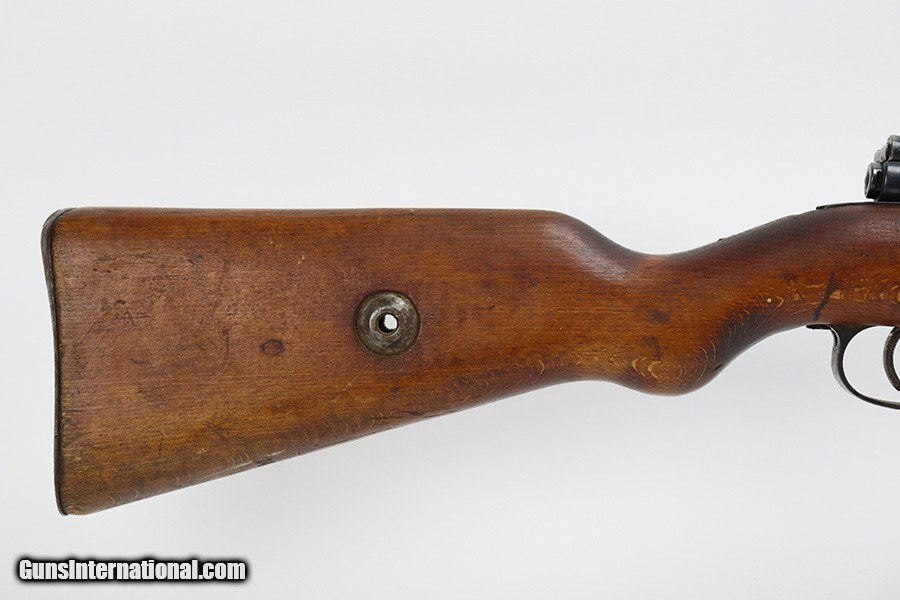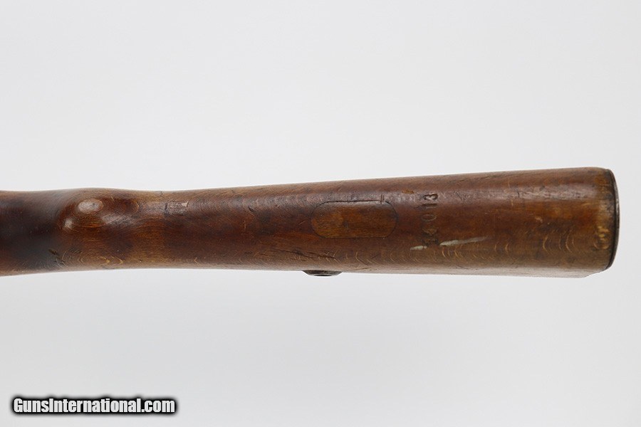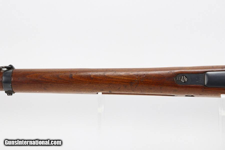 Description: This is a rare, all-original F.B. Radom Wz. 29 rifle manufactured for the Polish Army in 1935. Since Poland was invaded by Germany in 1939, and the Polish weapons factories were quickly re-tooled for Nazi use, finding an all-original and matching numbered Wz. 29 rifle is difficult. This example is in about 92-95% overall condition, with the majority of the wear being found on the butt plate. The bolt shows some mild handling and use wear, with areas of light surface patina and finish loss. The receiver is excellent. There is edge wear and light surface patina mixed within the finish on the barrel bands, trigger, trigger guard, and barrel. All numbered parts match, except for one screw in the floorplate, which is stamped "56" instead of "13". There is also a small oval-shaped repair just below the serial number on the stock. The metal disc on the right side of the stock is missing as well. This doesn't affect functionality or fit, but is worth noting (close up shown in photos). The stock is in great overall condition with typical surface dings and bumps from age. There is a small "D2" proof stamp on the right side of the buttstock. The bore is in near-excellent condition: shiny with strong rifling and some traces of patina and use wear within the grooves. SOLD Curio/Relic: Yes Rifle Caliber: 7.92x57mm Mauser |