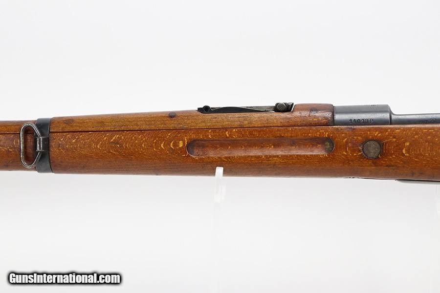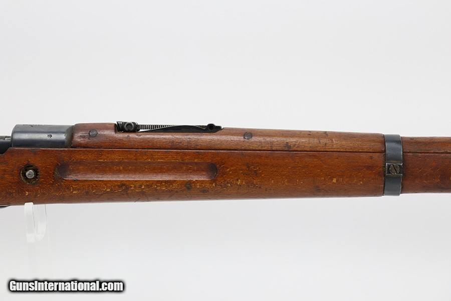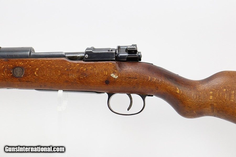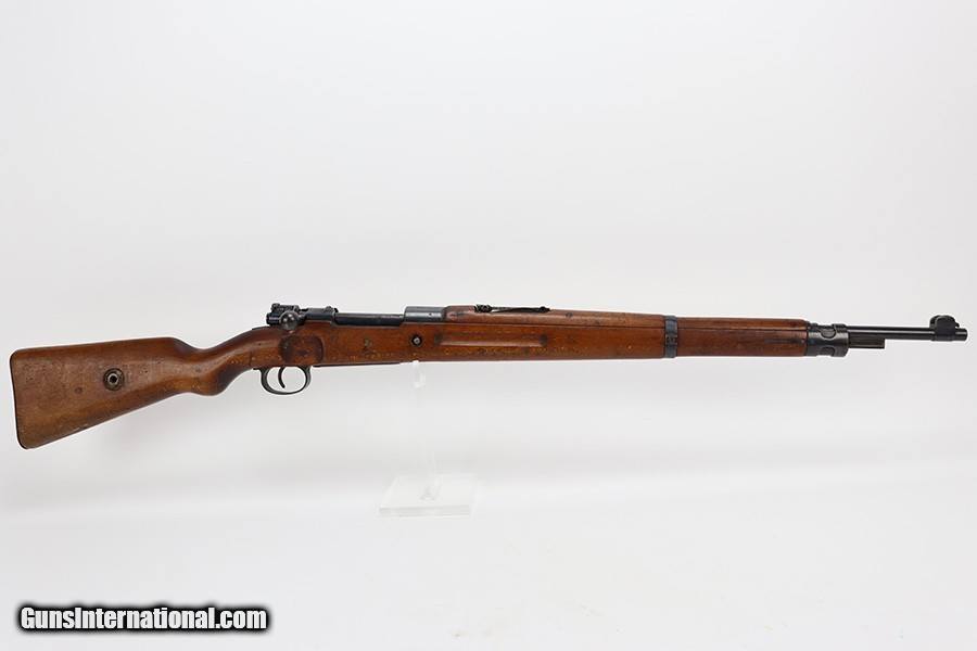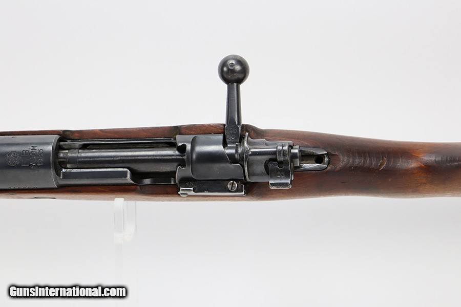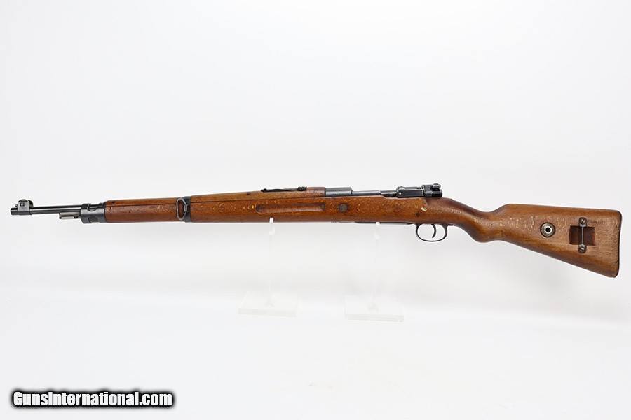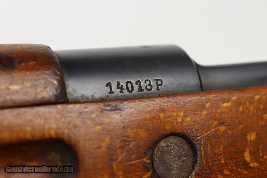 Description: This is a rare, all-original F.B. Radom Wz. 29 rifle manufactured for the Polish Army in 1935. Since Poland was invaded by Germany in 1939, and the Polish weapons factories were quickly re-tooled for Nazi use, finding an all-original and matching numbered Wz. 29 rifle is difficult. This example is in about 92-95% overall condition, with the majority of the wear being found on the butt plate. The bolt shows some mild handling and use wear, with areas of light surface patina and finish loss. The receiver is excellent. There is edge wear and light surface patina mixed within the finish on the barrel bands, trigger, trigger guard, and barrel. All numbered parts match, except for one screw in the floorplate, which is stamped "56" instead of "13". There is also a small oval-shaped repair just below the serial number on the stock. The metal disc on the right side of the stock is missing as well. This doesn't affect functionality or fit, but is worth noting (close up shown in photos). The stock is in great overall condition with typical surface dings and bumps from age. There is a small "D2" proof stamp on the right side of the buttstock. The bore is in near-excellent condition: shiny with strong rifling and some traces of patina and use wear within the grooves. SOLD Curio/Relic: Yes Rifle Caliber: 7.92x57mm Mauser |