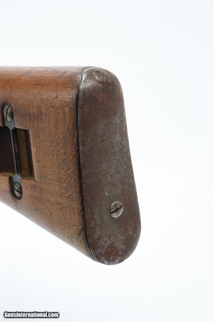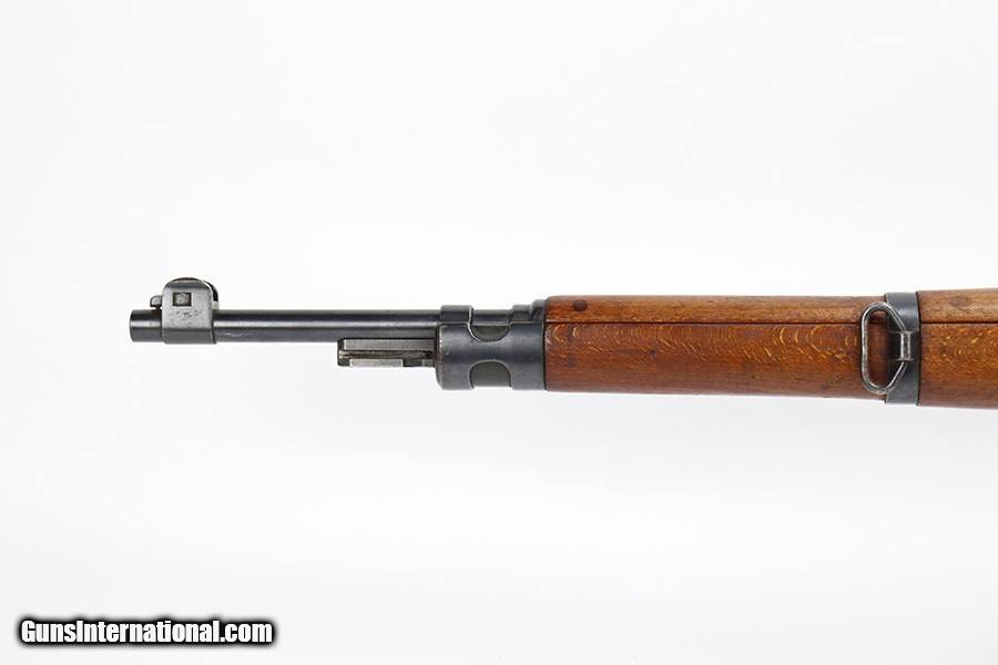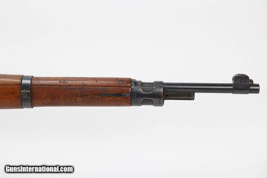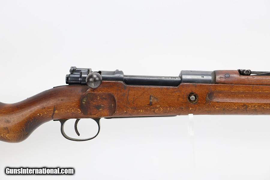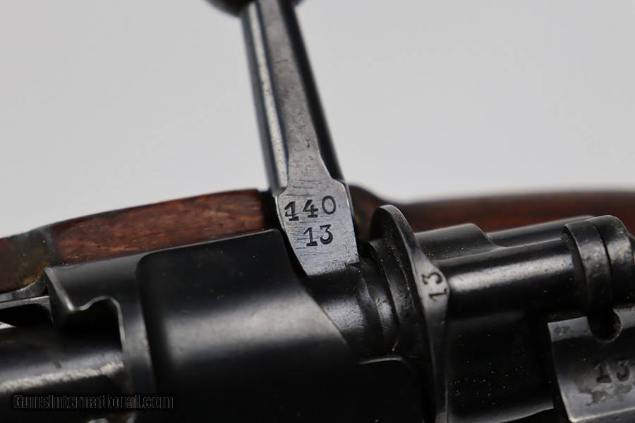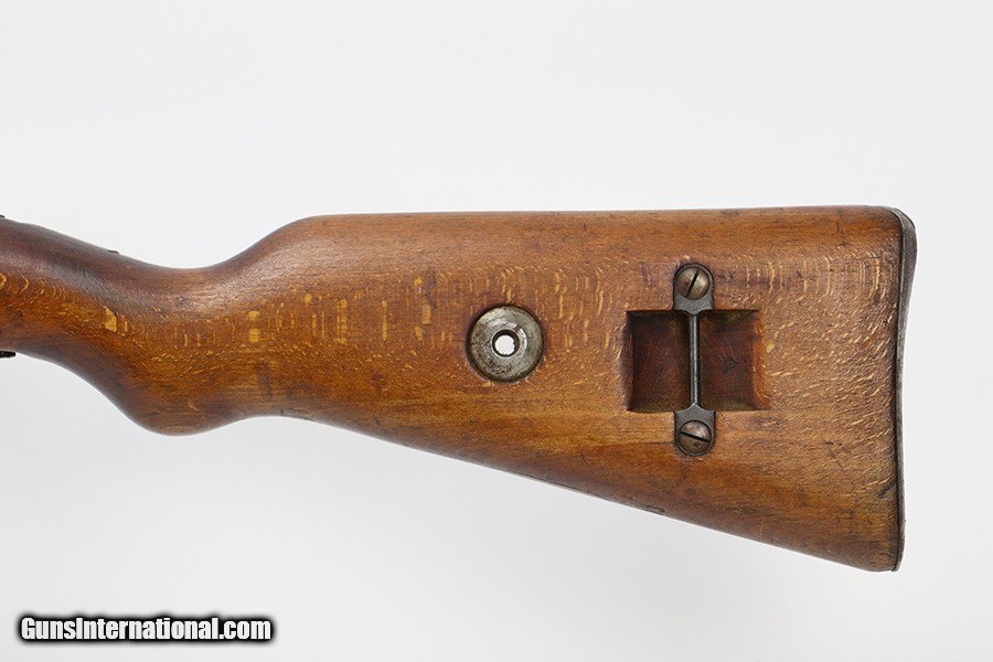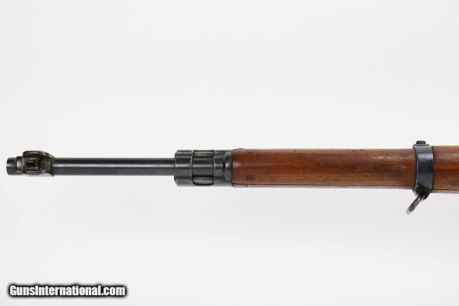 Description: This is a rare, all-original F.B. Radom Wz. 29 rifle manufactured for the Polish Army in 1935. Since Poland was invaded by Germany in 1939, and the Polish weapons factories were quickly re-tooled for Nazi use, finding an all-original and matching numbered Wz. 29 rifle is difficult. This example is in about 92-95% overall condition, with the majority of the wear being found on the butt plate. The bolt shows some mild handling and use wear, with areas of light surface patina and finish loss. The receiver is excellent. There is edge wear and light surface patina mixed within the finish on the barrel bands, trigger, trigger guard, and barrel. All numbered parts match, except for one screw in the floorplate, which is stamped "56" instead of "13". There is also a small oval-shaped repair just below the serial number on the stock. The metal disc on the right side of the stock is missing as well. This doesn't affect functionality or fit, but is worth noting (close up shown in photos). The stock is in great overall condition with typical surface dings and bumps from age. There is a small "D2" proof stamp on the right side of the buttstock. The bore is in near-excellent condition: shiny with strong rifling and some traces of patina and use wear within the grooves. SOLD Curio/Relic: Yes Rifle Caliber: 7.92x57mm Mauser |