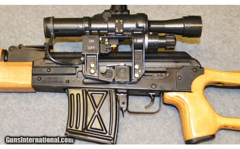 Description: This is a ROMARM / CUGIR PSL 54 Rifle in 7.62x54R. The PSL 54 Romanian military designated marksman rifle is made in Romania and imported by Century Arms. The PSL-54 features a 24” chrome lined threaded barrel. The front trunnion has an RPK-style bulged trunnion due to the high power 7.62x54R. The rifle has laminated wood furniture and a thumbhole stock. Chambered in 7.62x54R, the PSL can engage targets at extended ranges. This rifle is in excellent condition and comes with the Soviet designed PO 4x24 scope with quick detach mount,1 10 Rd. magazine and box. SOLD Caliber Info: 7.62x54r Chambers: Semi auto. Metal Condition: As new in the box. Wood Condition: As new in the box. Bore Condition: As new in the box. Barrels: 24" barrel with muzzle break. Triggers: Single trigger. Stock: Laminated wood with thumb hole. Stock Dimensions: 12 3/4" LOP Fore End: Matching wood. Butt Pad: Black rubber. Weight: 10 Lbs. Sights: Adjustable rear and adjustable front with Soviet designed PO 4x24 quick detach scope. Extras: As new in the box. Comes with 1- 10 round magazine, scope & mount, and manual. Item Location: Acworth, GA |
