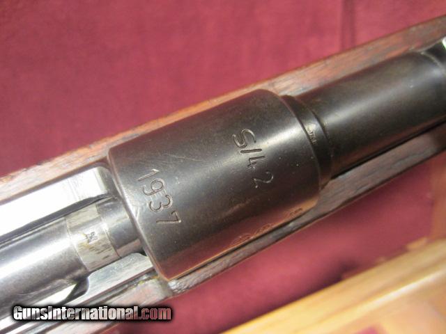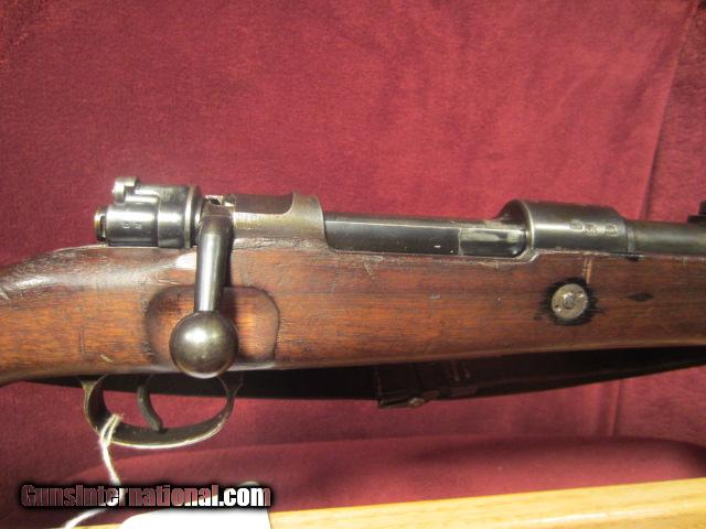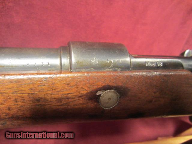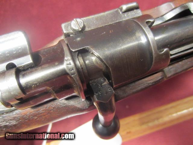 Description: 98K MAUSER 98 MODEL CODE S/42 ALL MATCHING NUMBERS, EXCEPT BUTT PLATE AND FRONT BARREL BAND. BORE EXCELLENT NO RUST OF META LPARTS. NON IMPORT VET BRING BACK. SMALL LOCKING SCRS HAVE LAST TWO DIGETS OF SERIAL NUMBER ALONG WITH MAGAZINE FOLLOWER ALL STAMPED (31) FACTORY ORIGINAL SLING. TOP FOREND WOOD HAS REPAIRED CRACK. NEED MORE INFORMATION PLEASE CALL OUR OFFICE 716-941-3946 SOLD Curio/Relic: Yes |