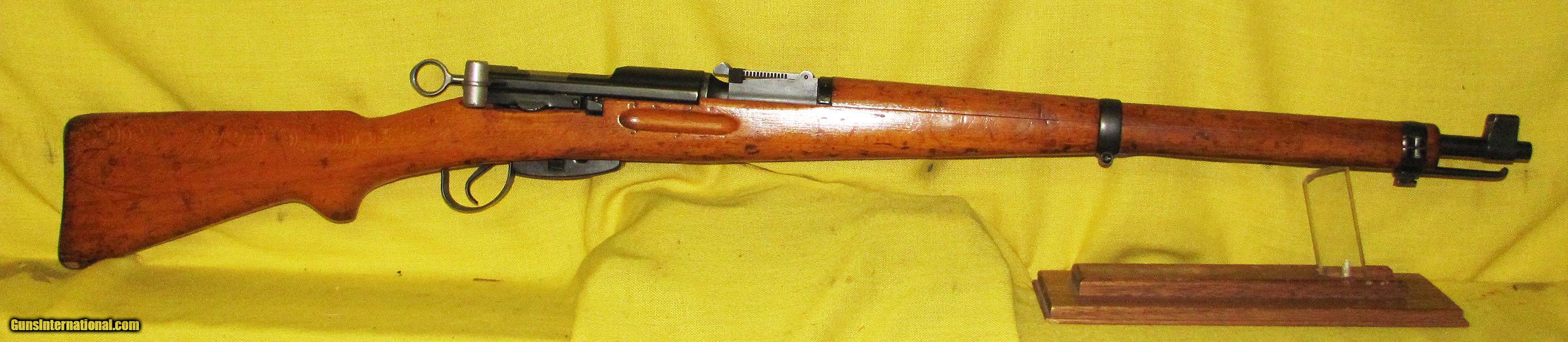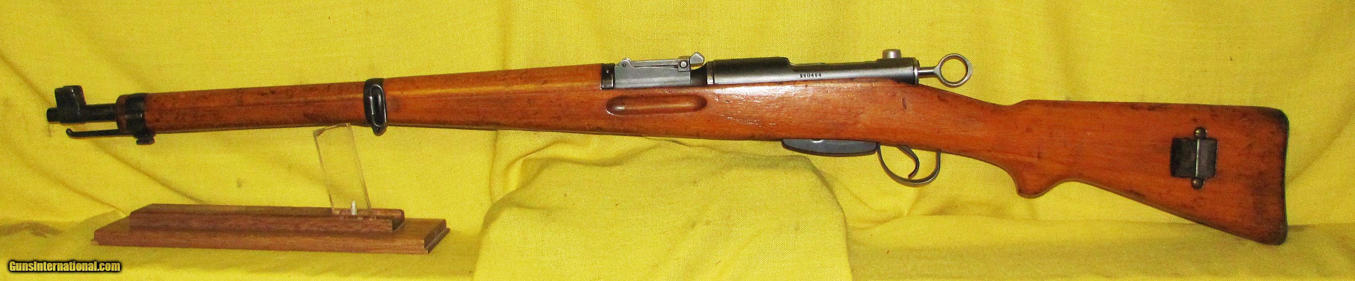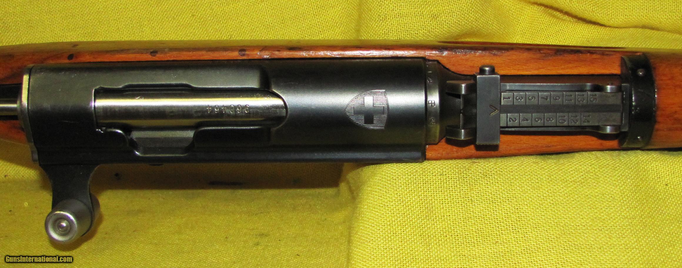 Description: SCHMIDT RUBIN K31 IN 7.5 X 55 CAL., WITH 26" BARREL. COLOR BLUE. CONDITION 97%. SERIAL NUMBER 960464. SCHMIDT RUBIN MODEL K31, EXCELLENT BRIGHT SHINNY BORE, WOOD IS VERY GOOD TO EXCELLENT CONDITION WITH SOME STORAGE DINGS, STRAIGHT PULL BOLT, 98% FACTORY FINISH, EXCELLENT CONDITION OVERALL. OUR NEW STOCK # D31992. SOLD |
