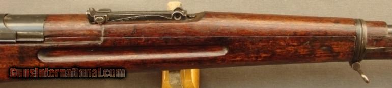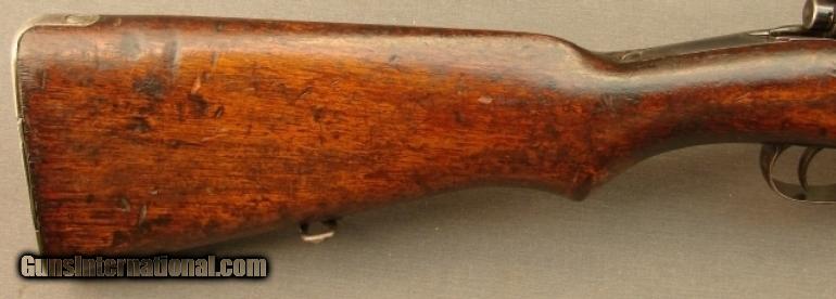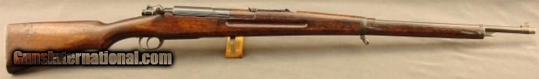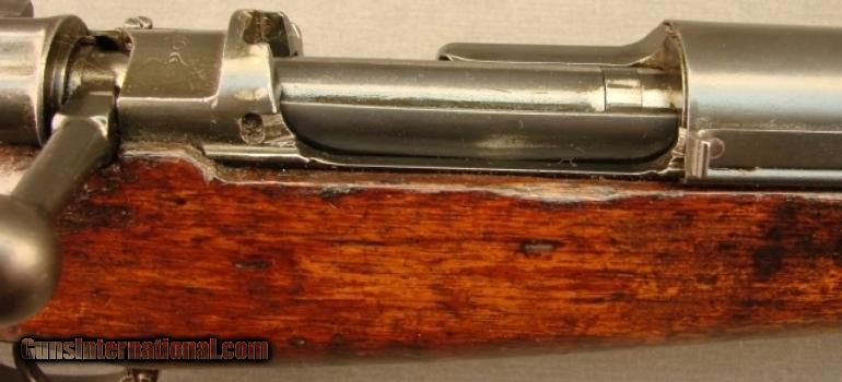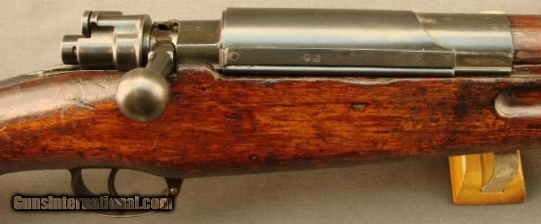 Description: An unusual bolt rifle with sliding dust cover that is chambered for a very rare 8mm Siamese rimmed cartridge. See "Cartridges of the World 10th. edition", page 341, top. The receiver ring is marked with the circular Siamese" Charkra" over characters for the model year which translates into "RS 121" or Ratanakes 121 the year of adoption of the dynasty, or the Christian year 1903. All markings on the rifle are in Siamese. Bright, excellent bore. This example is in much better condition than we normally see with over 90% original blue and the wood showing some minor dings, bruises and a considerable amount of original varnish. Reference page 356 in "Mauser Military Rifles of the World". This rifle also has a bright excellent bore. FFL or C&R SOLD Curio/Relic: Yes Manufacturer: Siamese Model: 1903 Serial Number: NSN Caliber Info: 8mm Gauge Info: 8mm |