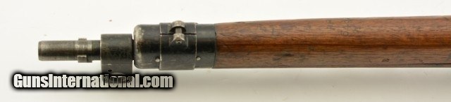 Description: Serial #PF54691, .303 British, 25" barrel with a fine, bright bore that has some mild freckling within the grooves. This is a 11/48 dated, ROF Fazakerly-made rifle that has retained 60-70% of a flaked Suncorite finish, with the underlying metal having a mixed plum-brown and pewter gray patina. The matching numbered bolt exhibits some further mild wear and finish loss on the bearing surfaces, and the handle has worn to dark gray underlying metal with some Suncorite remaining. The receiver has a small import stamp on the left side, as well as a large "U (Broad Arrow)" Union of South Africa property stamp on the top of the receiver ring. Additionally, a milled adjustable rear sight is fitted. The walnut buttstock, non-numbered forend, and handguards are in about good-very good condition with numerous small handling marks scattered about the reapplied military oil finish, a few stable cracks at the heel of the butt, and the brass buttplate has an overall dark ochre patina. The rifle is accompanied by a single, matching-numbered magazine. This is a very good-near fine example of a just pre-Korean War era, South African No. 4, and would make a terrific addition to any collection. FFL or C&R SOLD Curio/Relic: Yes |