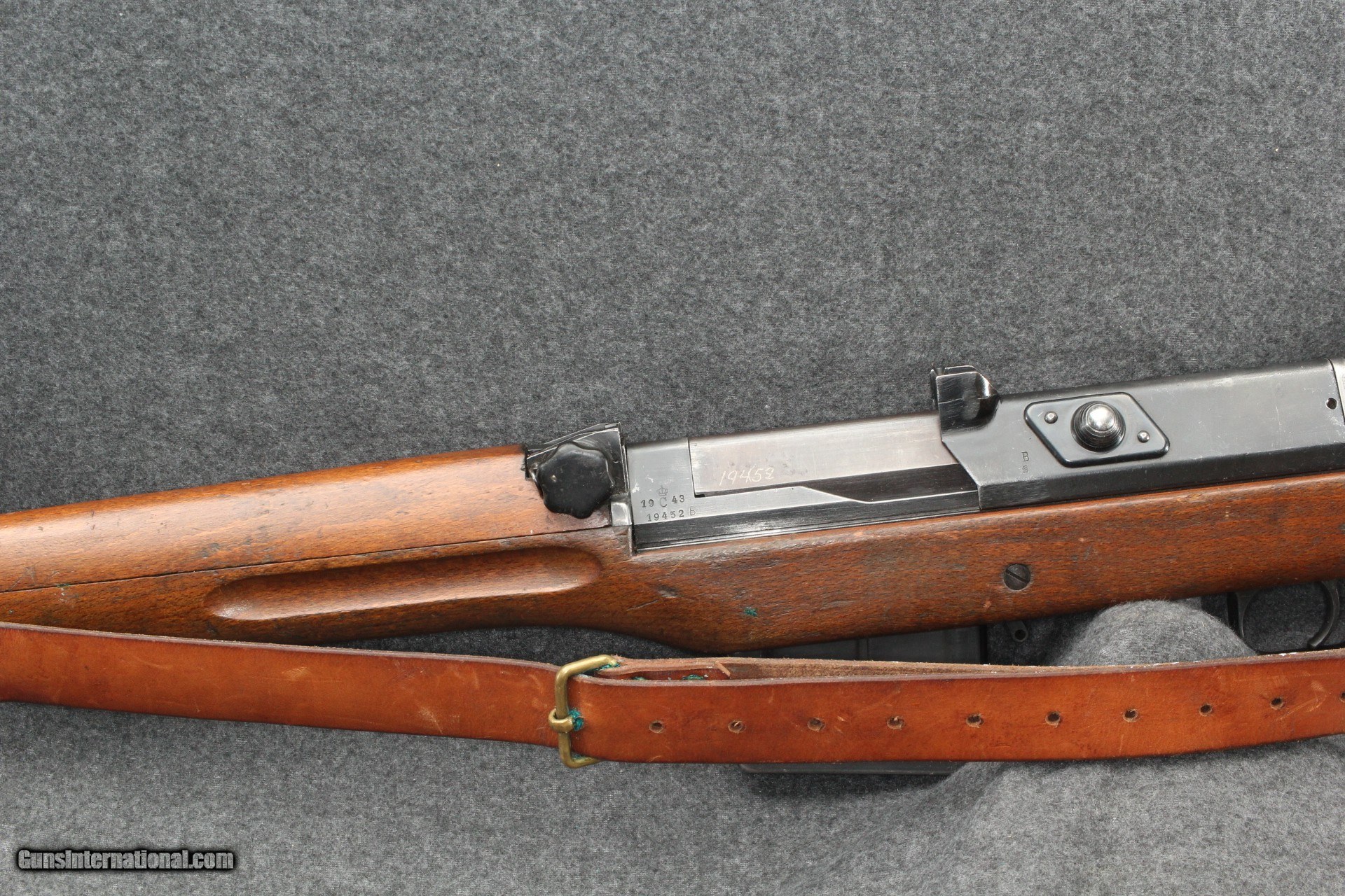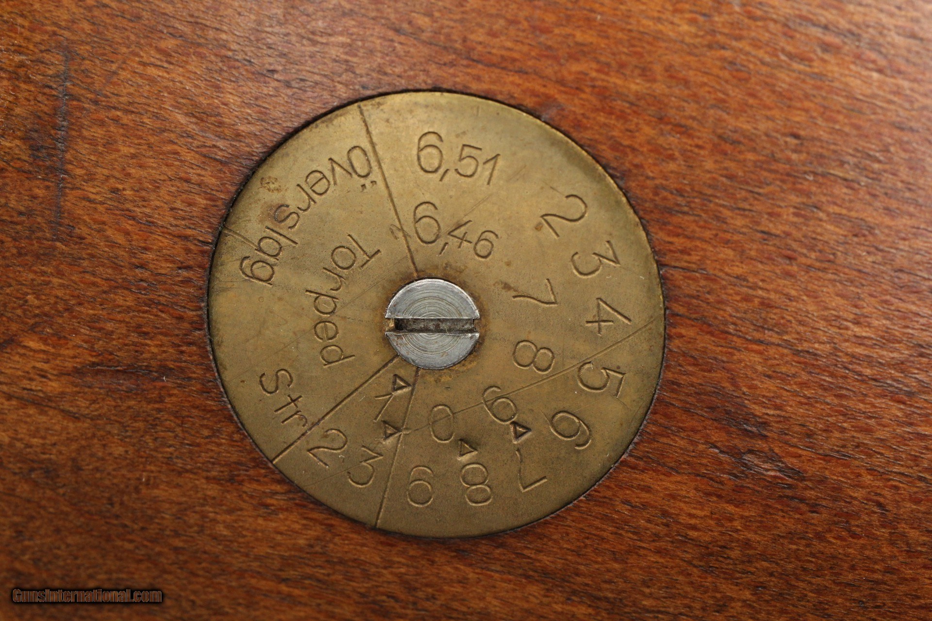 Description: 6.5x55, serial number 194XX. No import marks. Stock retains high percentage original finish with normal marring from military use. Original armors disc. Original magazine, not serial numbered. Throat and bore excellent. Excellent mechanical. Metal 85% with wear on high profile surfaces. Correct period sling. More photos on request. Please add $55.00 for shipping and insurance. Cannot sell to Washington State residents. SOLD Curio/Relic: Yes Rifle Caliber: 6.5x55mm Swedish |