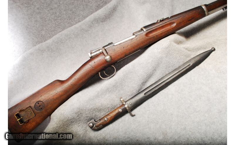 Description: SOLD Curio/Relic: Yes Caliber Info: 6.5x55mm Metal Condition: Bluing Loss, Lite Surface Pitting Wood Condition: Well Used with Finish Loss, Usage Marks and Scratches Bore Condition: Nice Barrels: 18.5 Triggers: Single Trigger Stock: Straight Grip Stock Dimensions: 13 1/8" LOP Fore End: Typical Mauser Butt Pad: Butt Plate Weight: 7 Lbs 14 Oz. Sights: Fixed Front Adjustable Rear Extras: With Bayonet. Item Location: Scarborough, ME |