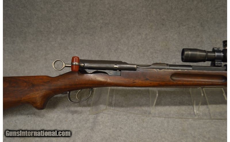 Description: For your consideration is a Swiss Model 1896/11 chambered in 7.5x55 Swiss. This firearm features a 30" barrel with a bright excellent bore. The wooden furniture is in very good condition with typical handling marks present from it's time in service. The metal finish of this firearm is in good condition with the bluing on the receiver beginning to wear revealing a grey patina. Fitted on the rifle forward of the receiver is a scope which provides proper eye relief when shouldering. 7.5x55mm Swiss SOLD Curio/Relic: Yes Metal Condition: Good Wood Condition: Very good Bore Condition: Excellent Barrels: 30 inch Weight: 9lb 13oz Item Location: Berlin |