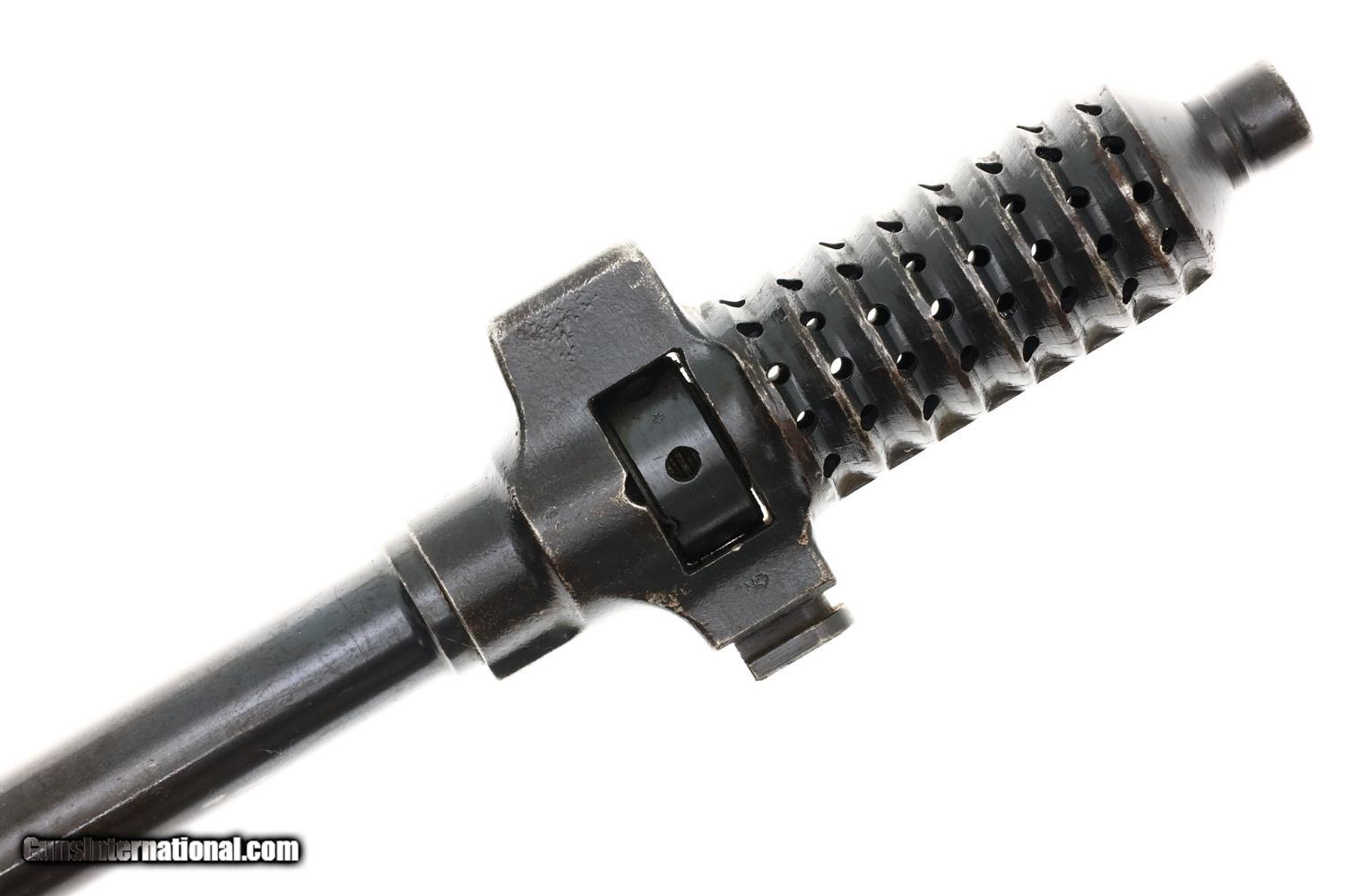 Description: Synopsis: Beautiful Swiss Military ZFK 55 Sniper Rifle made by the Bern Arsenal, all matching to include the scope and can, the scope with excellent optics. A wonderful find for the serious collector! Description: Standard configuration ZFK 31/55, one of approximately 5000 such rifles, an evolution of the K31 /42 and K31/43 sniper rifles, this one with telescopic sights, heavy barrel, flash suppressor/muzzle brake, and center-mounted foldable bipod. In addition to the standard K31 rear sight calibrated from 1-15, these guns were fitted with a quick detachable 3.5 power Kern telescopic sight, with serial numbering on top surface, whose reticle includes a thick central post with two thinner horizontal bars. The receiver has a Swiss “cross over chamber” with full serial number on left receiver and bolt. Matching barrel, magazine, scope, scope can (that includes the screw driver). Complete with unmarked military-style sling. Condition: Near EXC original blue with sharp edge wear and light handling marks except as concerns the bipod whose surface scuffing is consistent with the overall condition of the rifle. In-the-white parts are bright with minimal staining and magazine wear is negligible. Near EXC stock with a few superficial handling marks, no cracks or repairs, the acceptance stamp on the right side of the buttstock having broken through the finish. The buttplate is grey with impressions. Excellent original finish scope, can, and included screwdriver, the scope with comparably bright optics and correct manual adjustments. EXC sling with supple leather, light oil staining. Mirror bore. Correct manual mechanics. A beautiful Swiss Bern K55 sniper rifle with a bright matching scope / can and a mirror bore! Curio/Relic: Yes Manufacturer: Bern Model: ZFK 55 Sniper Rifle Serial Number: 3055 Caliber Info: 7.5x55 Condition: EXC Price: $7,995.00 Contact Seller |