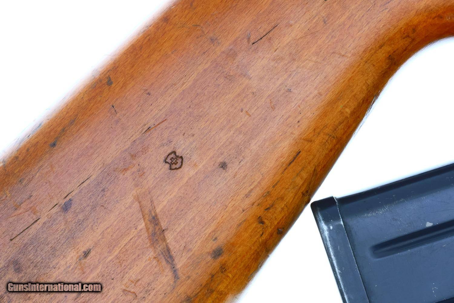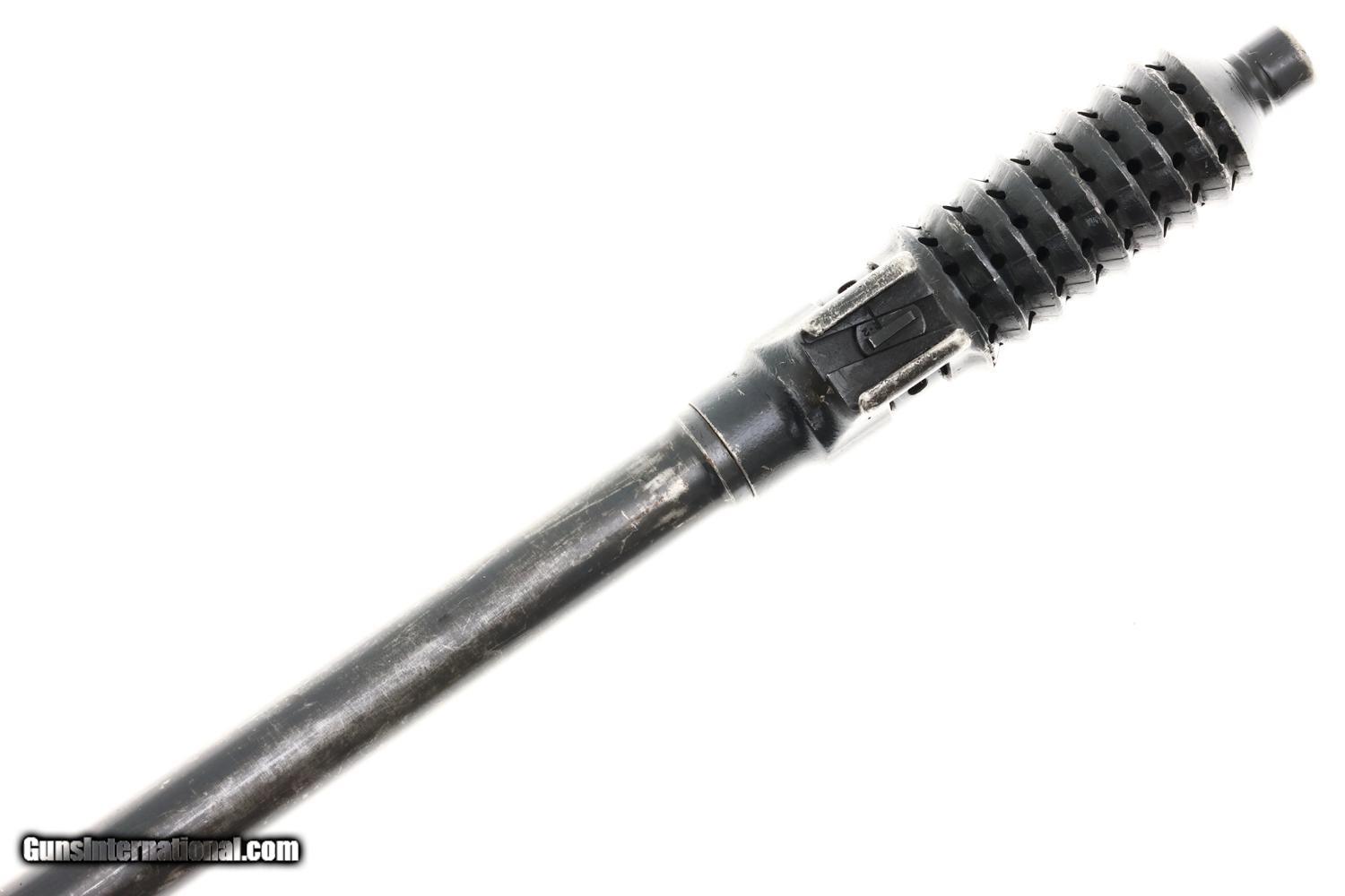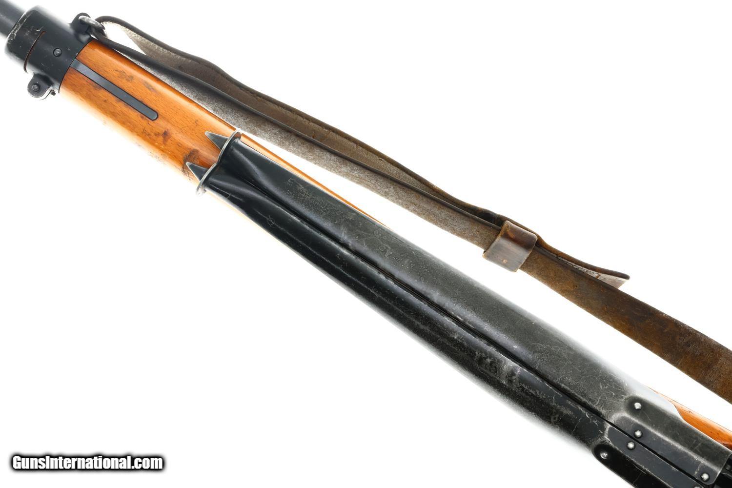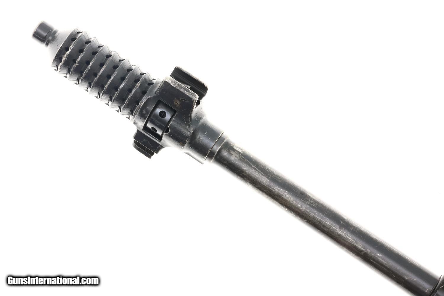 Description: Synopsis: Attractive, early production, Swiss ZFK 55 Military Sniper Rifle, an All-Matching example with an optically Bright Scope and a Mirror Bore, perfect for the Swiss military collector or to take to the range! Description: Standard configuration ZFK 31/55, one of approximately 5000 such rifles, an evolution of the K31 /42 and K31/43 sniper rifles, this one with telescopic sights, heavy barrel, flash suppressor/muzzle brake, and center-mounted foldable bipod. In addition to the standard K31 rear sight calibrated from 1-15, these guns were fitted with a quick detachable 3.5 power Kern telescopic sight, with serial numbering on top surface, whose reticle includes a thick central post with two thin horizontal bars. The receiver has a Swiss “cross over chamber” with full serial number on left receiver and bolt. Matching barrel, magazine, scope, scope can (does not include screw driver). Military sling without discernible acceptance date. Condition: VG+ original blue with sharp edge wear and light handling, barrel with thinning blue, bipod with moderate surface scuffing. In-the-white parts are bright with minimal staining and there is little wear on the magazine. Stock is VG with numerous bruises and handling mark discolorations, but no cracks or repairs. Near excellent original finish scope, can, screwdriver not included, with bright optics and correct manual adjustments. G sling with oil staining. Mirror bore. Correct manual mechanics. A nice, all-original and all-matching Swiss Bern K55 sniper rifle with a bright matching scope, mirror bore, and matching scope can. Manufacturer: Bern Arsenal Model: ZFK 55 Sniper Rifle Serial Number: 1168 Caliber Info: 7.5x55 Condition: VG Price: $6,395.00 Contact Seller |