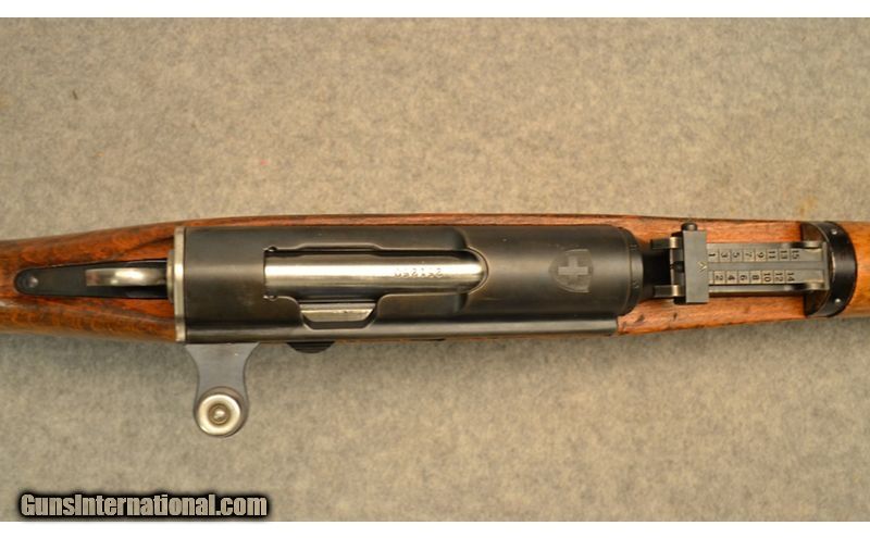 Description: Swiss Military Straight pull Bolt action rifle. 7.5 X 55mm Swiss SOLD Curio/Relic: Yes Metal Condition: Very Good Wood Condition: Excellent Bore Condition: Excellent Barrels: 24 Weight: 9 LBS Item Location: christiana |