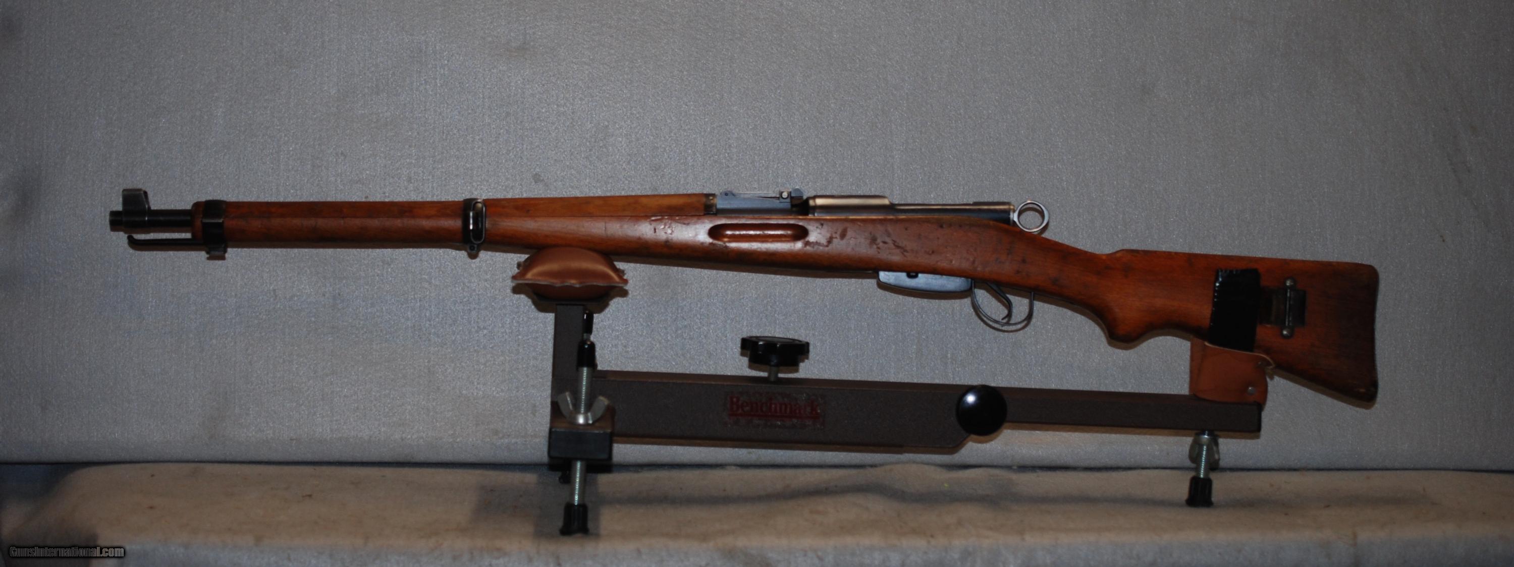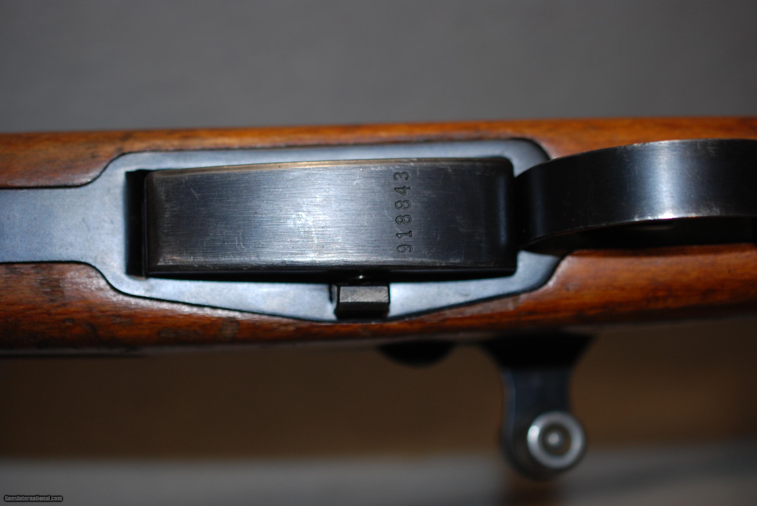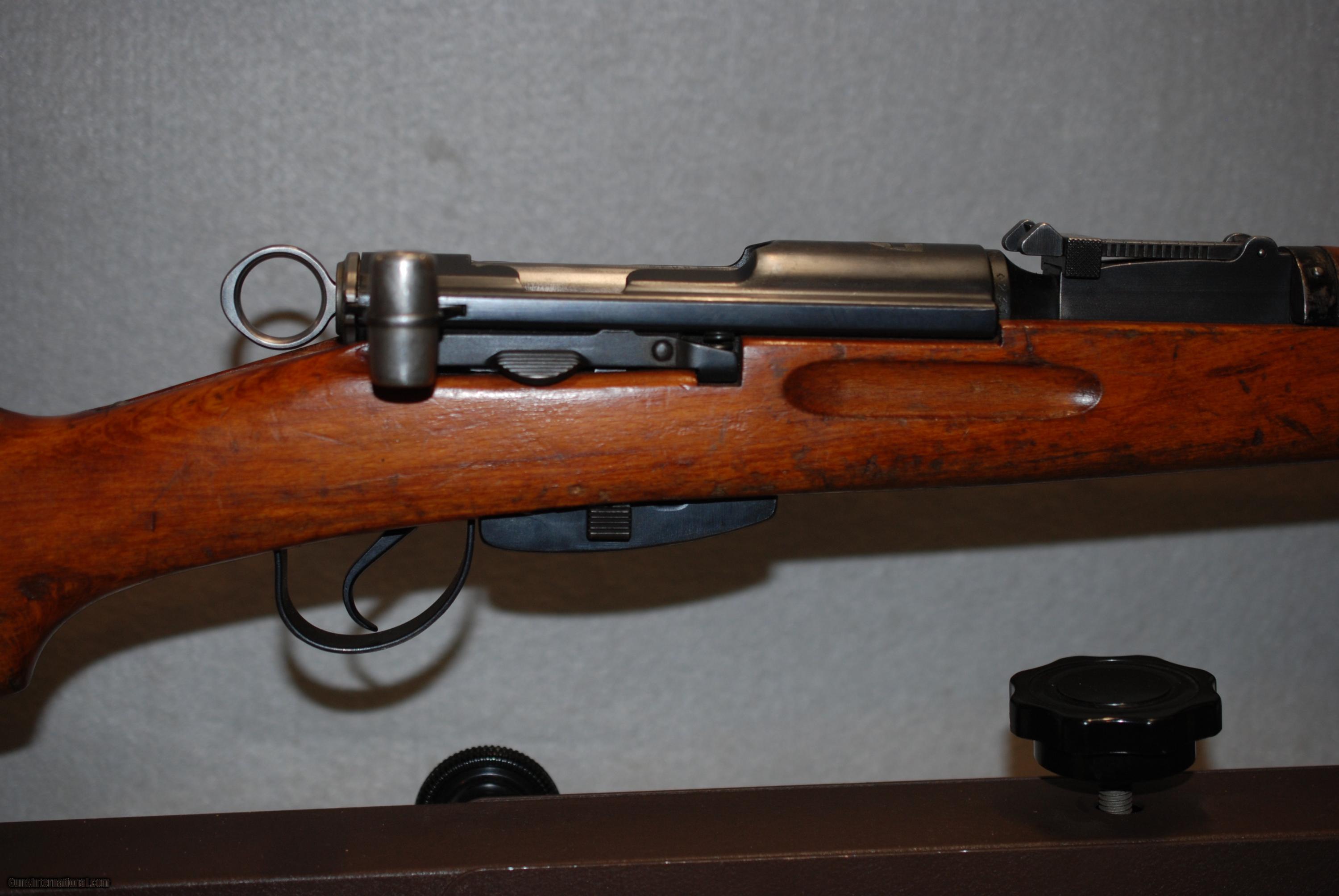 Description: Overall very good condition with very fast straight pull bolt. One of the most accurate WWII era rifles. Switzerland was neurtal in WWII so these rifles did not see combat.1948 build. Has detachable 6 shot magazine and an amazing two stage trigger. Has matching numbers bolt and magazine. Wood is solid with no cracks or splits and the usual handling marks and dings. Metal has no rust or pitting and returns about 60% of original bluing. Bore is bright with strong rifling. Shipping is 39 to lower 48. Questions, Gerry at 7326182833 Surplus Swiss ammo available here. SOLD Curio/Relic: Yes |