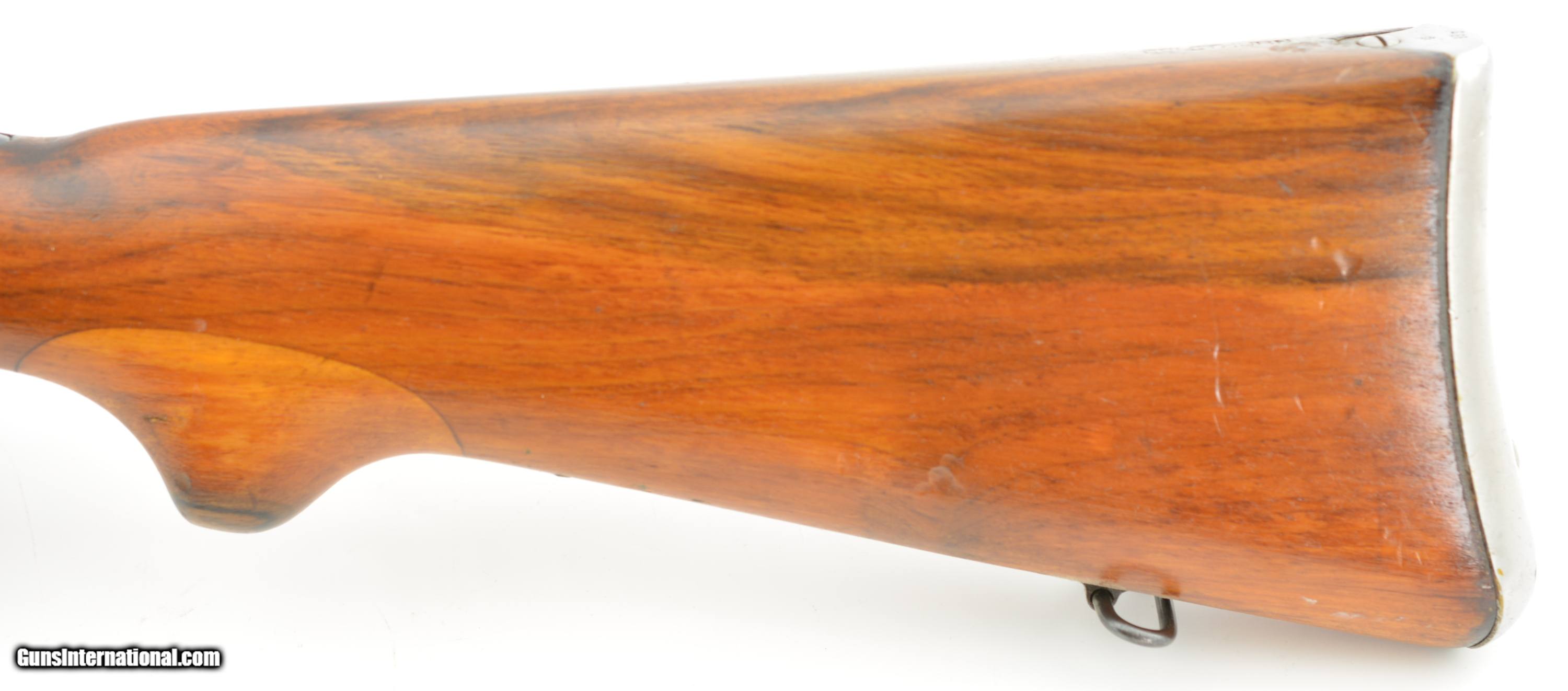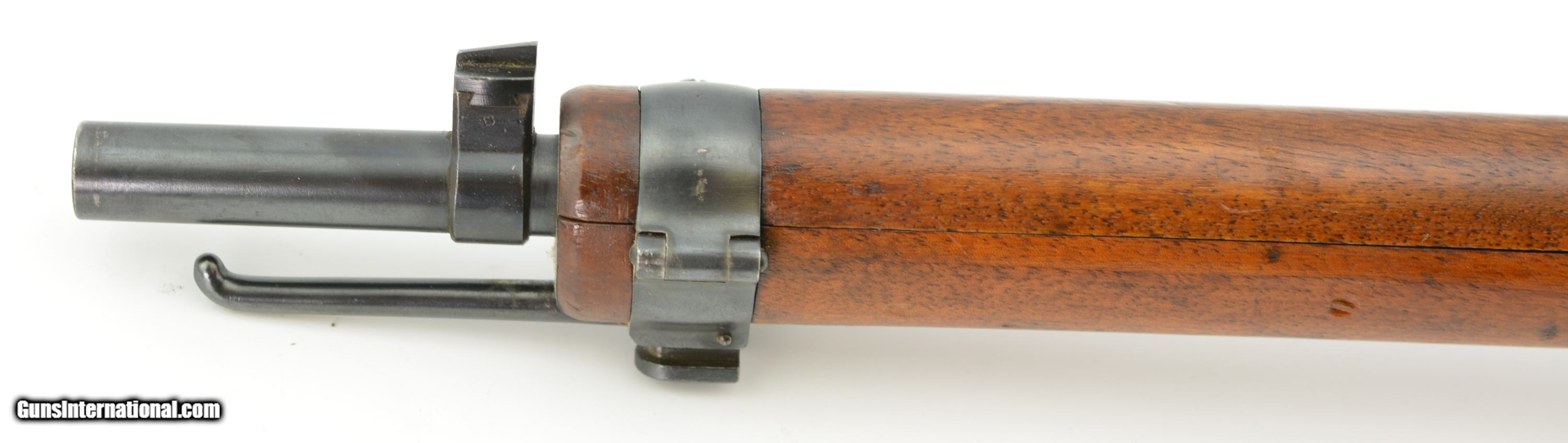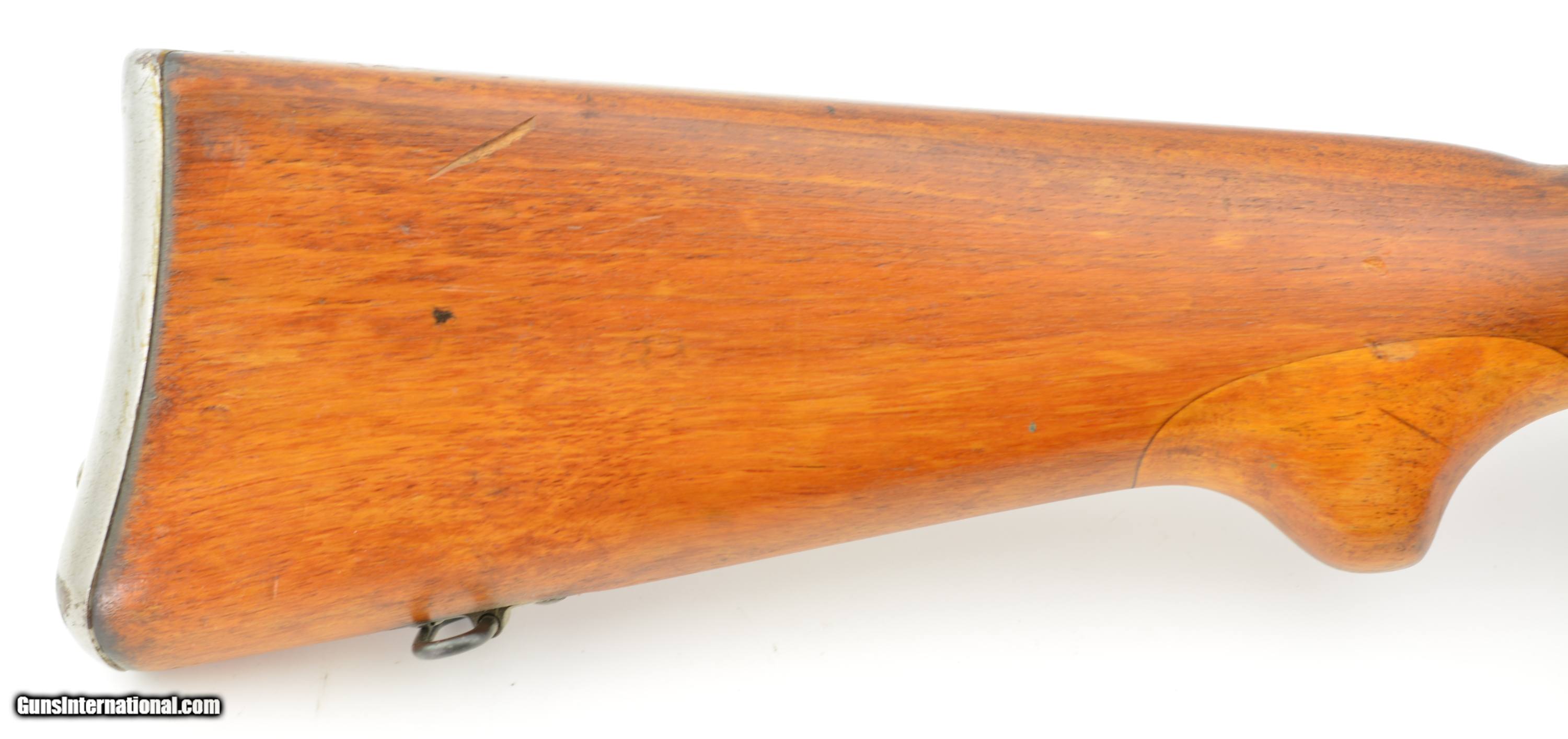 Description: Serial #286893, 7.5mm Swiss, 30 3/4" barrel with an excellent, bright bore. This is a very nice rifle that has matching numbers on the receiver, barrel, bolt, and magazine with the metal retaining 97-98% of the original blue finish that has silvered slightly at the muzzle, as well as some of the high edges. The bolt still has its armory bright finish with some light wear marks on the bearing surfaces, a few spots of mild freckling, and the ruddy-brown resin handle is intact. The wooden stock and handguard have small handling marks and minor blemishes in the armory-reapplied finish, but the Solothurn stamp is still crisp and clear on the comb of the butt. A small surface chip is missing from the nose of the handguard, just ahead of the muzzle-band. This is a fine example of a non-import marked Schmidt-Rubin rifle, and would make a great addition to a collection. FFL or C&R SOLD Curio/Relic: Yes Manufacturer: Schmidt-Rubin Model: 1911 Serial Number: 286893 Caliber Info: 7.5mm Gauge Info: 7.5mm |