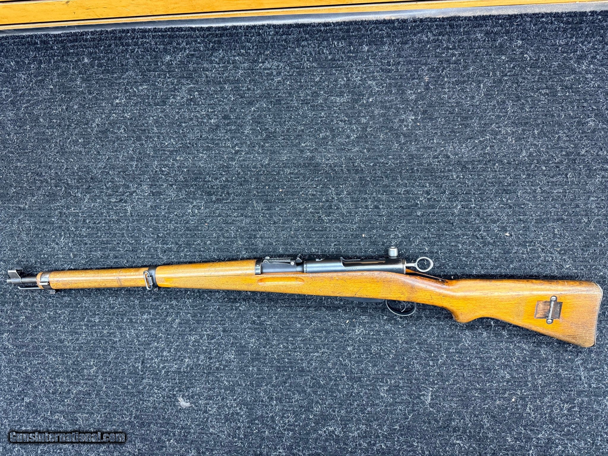 Description: Guns Listing ID: 515466 Swiss K31 straight pull bolt action rifle 7.5x55 Swiss in very good condition!! Has matching serial numbers. The Swiss K31, officially known as the Karabiner Modell 1931, is a straight-pull bolt-action rifle renowned for its precision, craftsmanship, and innovative design. Developed by the Swiss Federal Arms Factory (Waffenfabrik Bern) and adopted in 1933, it served as the standard-issue rifle for the Swiss Armed Forces until 1958, with some remaining in service until the 1970s. Design & Features Action: Straight-pull bolt-action mechanism, allowing rapid cycling of the bolt without rotating it. Caliber: 7.5×55mm Swiss (GP11), offering ballistics similar to the .308 Winchester. Magazine: 6-round detachable box magazine, often matching the rifle‚s serial number. Sights: Iron sights with a tangent-leaf rear sight graduated up to 1,500 meters. Barrel: 4-groove rifling with a 270mm twist rate, contributing to its exceptional accuracy. Weight: Approximately 4.0 kg (8.8 lbs) when empty. Length: 1,105 mm (43.5 inches), shorter than its predecessors due to a redesigned receiver and bolt .? The K31‚s design emphasized ergonomics and efficiency. The straight-pull action enabled soldiers to keep their sights on target while cycling the bolt, a significant advantage in combat situations. Additionally, the rifle‚s construction was noted for tight tolerances, resulting in remarkable accuracy. Swiss military manuals reported that at 300 meters, 50% of shots would land within a 4 cm horizontal and 6 cm vertical circle, and at 1,000 meters, within 21 cm horizontally and 43 cm vertically. Despite Switzerland‚s policy of neutrality during World War II, the K31 was designed to ensure the nation‚s defense readiness. The rifle‚s precision and reliability made it a formidable weapon in the hands of Swiss soldiers, though it never saw combat during the war. In summary, the Swiss K31 stands out as a testament to Swiss engineering and commitment to quality, combining innovative design with exceptional performance. SOLD Manufacturer: SWITZERLAND Model: K31 Caliber Info: 7.5X55MM SWISS Condition: Used - Non-Certified Barrels: 24 BARREL Action: BOLT ACTION Finish: blued |