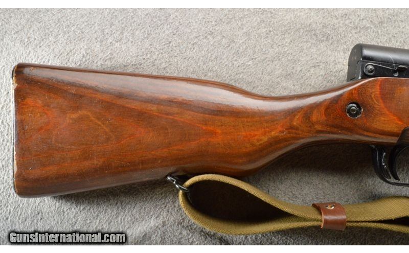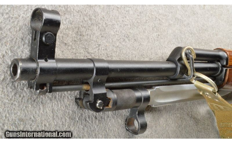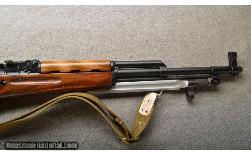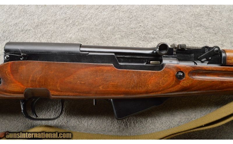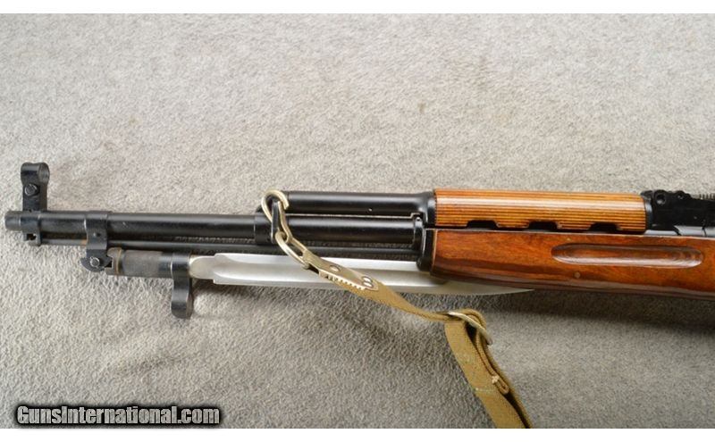 Description: This is a very nice and hard to find Russian SKS marked 1950. The wood and metal are in excellent refinished condition. The rifle has a knife style bayonet and a canvas sling. This is a very nice rifle. 7.62X39mm SOLD Curio/Relic: Yes Chambers: Semi-auto 10 round mag. Metal Condition: Excellent. Wood Condition: Excellent. Bore Condition: Bright and shiny. Barrels: 20" with sights. Triggers: Single 2 stage trigger. Stock Dimensions: 12 1/2" LOP. Fore End: Laminate upper and lower hand guards. Butt Pad: Laminate stock with a steel butt plate. Weight: 8 lbs. 15 oz. Sights: 0-1000 meter adjustable rear and a pin front. Item Location: Owatonna, MN |
