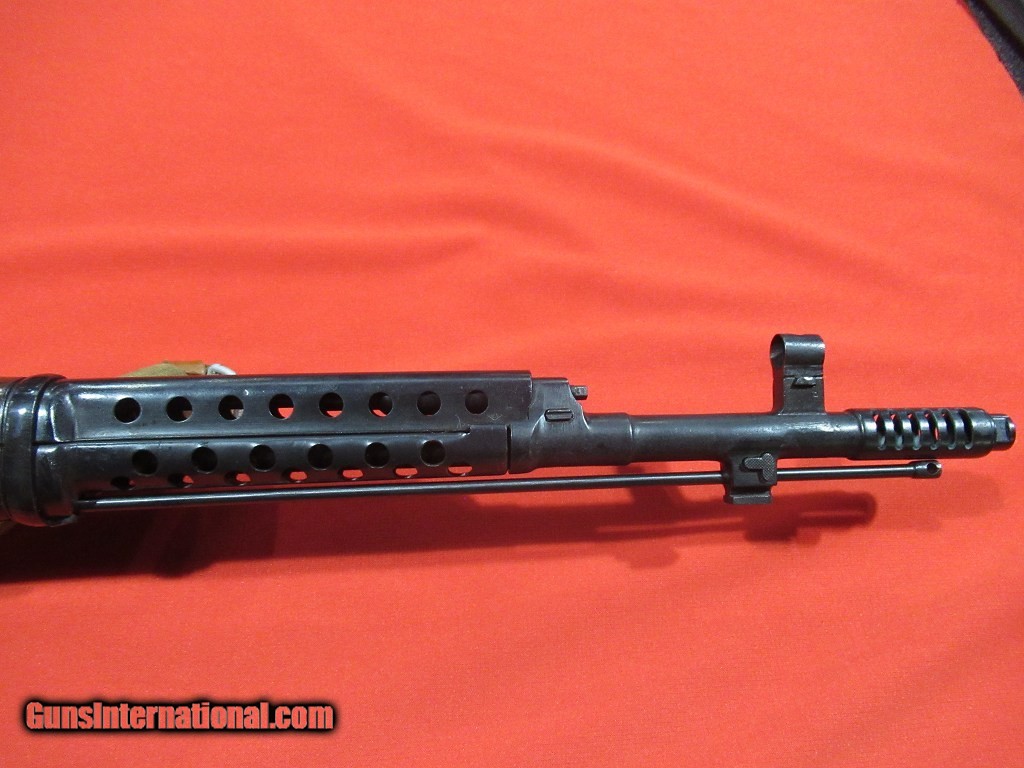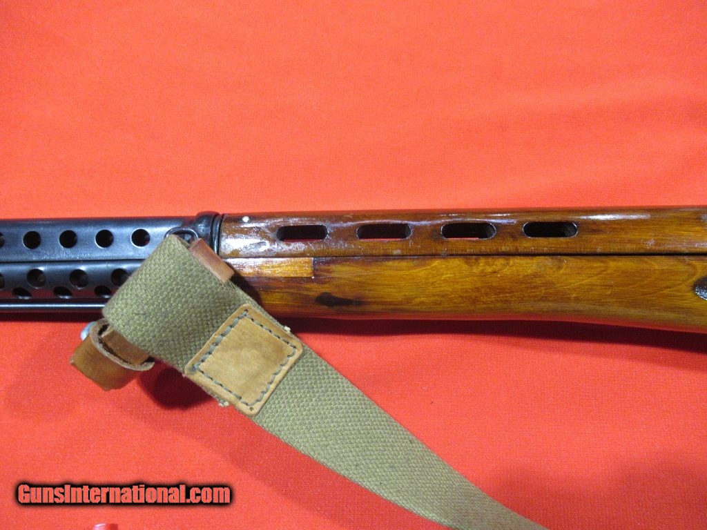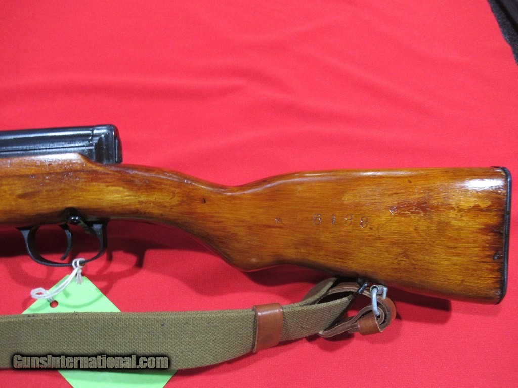 Description: 1941 Tula Manufactured. early style muzzle break, receiver rails, eight-hold heat shroud, hole in safety, correct early groove rear sight, two piece barrel hanger, cherry red carrier and bolt, non matching type 2 magazine with lug change. CDI Imported with import serial number T14889. SOLD |