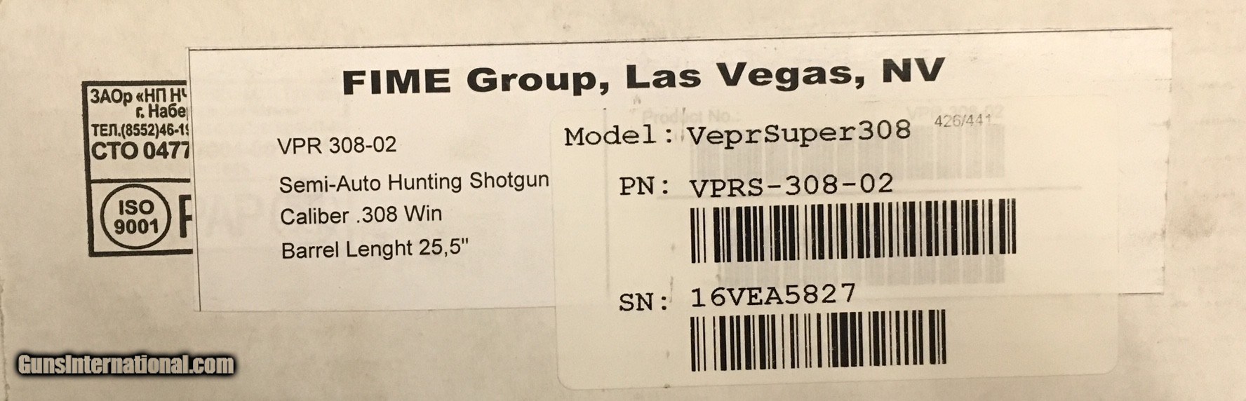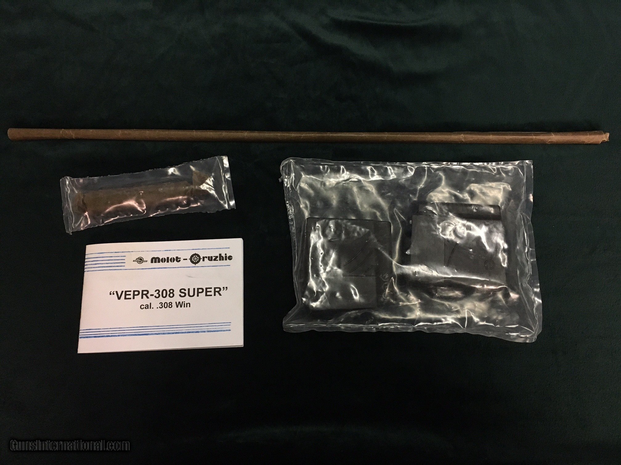 Description: VEPR - SUPER .308 Win. New in box, comes with cleaning kit and rod, paperwork, and two mags. SOLD Manufacturer: Molot-Oruzhie LTD. Model: VEPR - SUPER Serial Number: 16VEA5827 Caliber Info: .308 Condition: New in box |