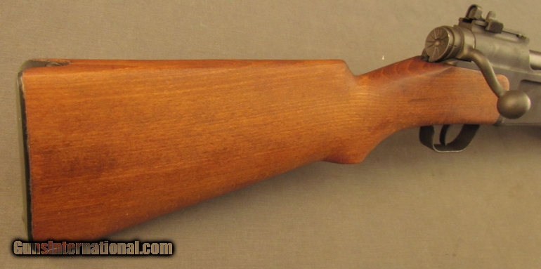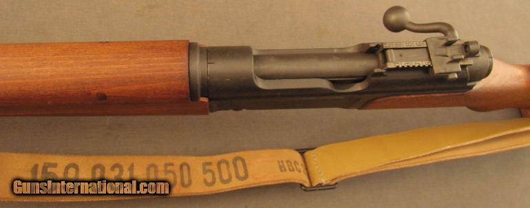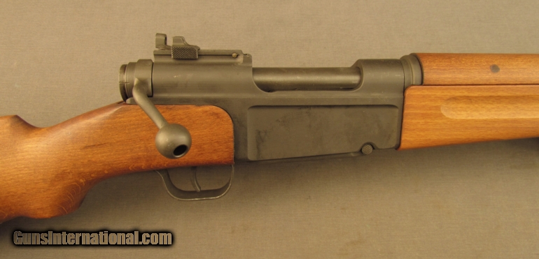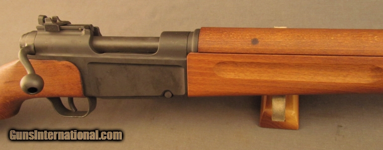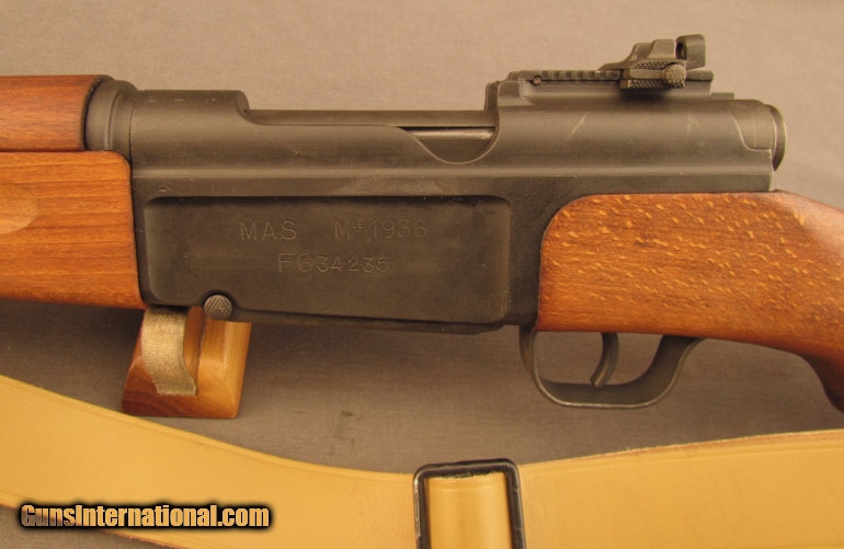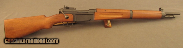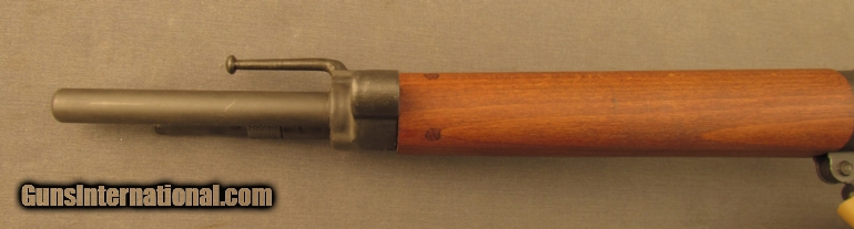 Description: Serial #FG34235, 7.5mm French, 22 1/2” barrel with an excellent, bright bore. This is a handsome rifle that retains about 99% of the arsenal re-applied dark gray phosphate finish with only a few tiny spots of silvering on a few of the high edges and bearing surfaces of the matching numbered bolt. All markings are still crisp and legible and there is a small C.A.I. import stamp on the barrel near the muzzle. The wooden forend, handguard, and buttstock are in excellent shape with a handful of minor marks and small blemishes in the otherwise super military oil finish. The rifle is accompanied by a correct spike bayonet and an original tan leather sling in excellent, unissued condition. This is a nice example of a MAS-1936, armory refurbished to excellent condition. FFL or C&R SOLD Curio/Relic: Yes Manufacturer: French Model: 1936 Serial Number: FG34235 Caliber Info: 7.5 MAS Gauge Info: 7.5 MAS |