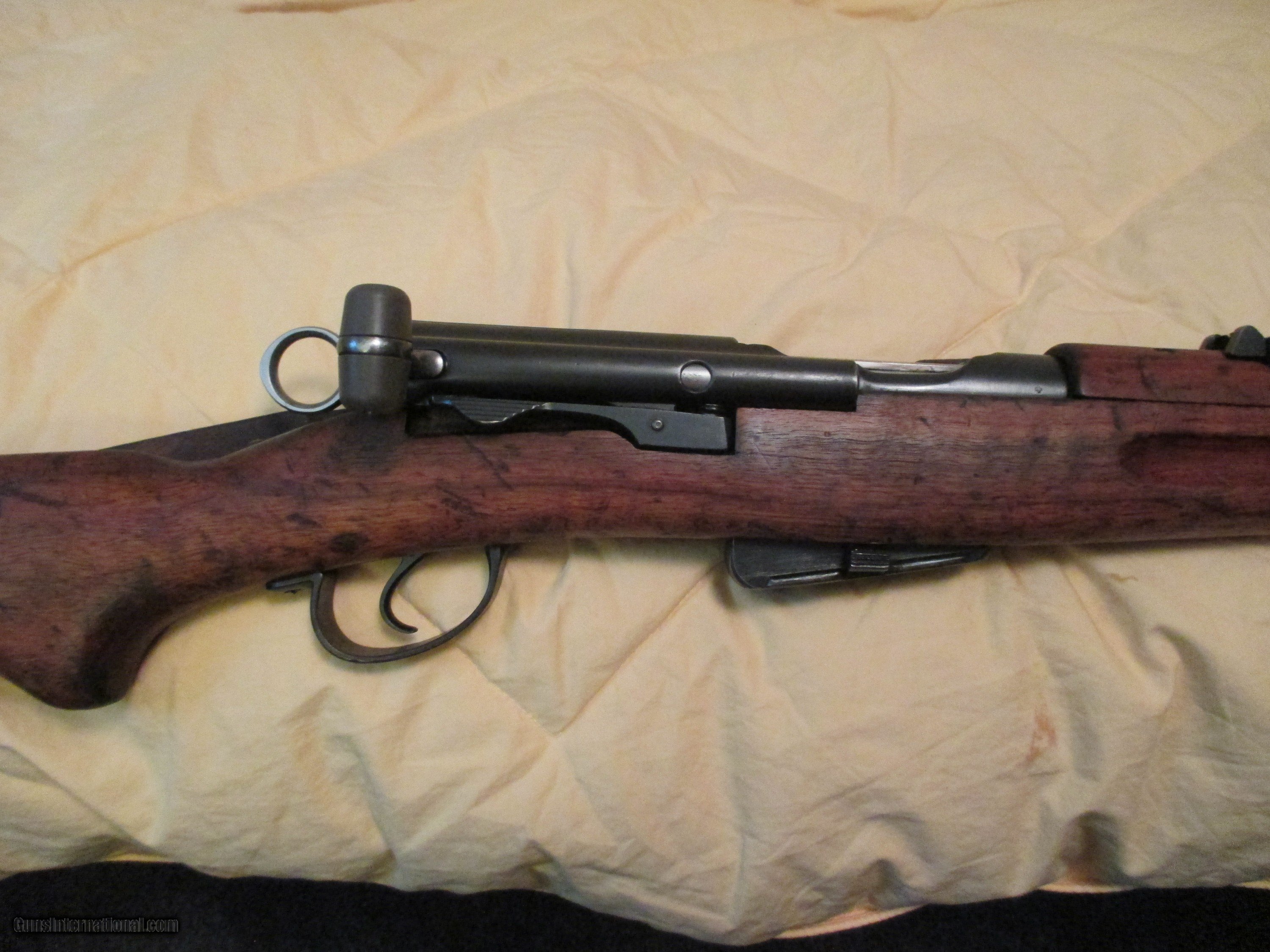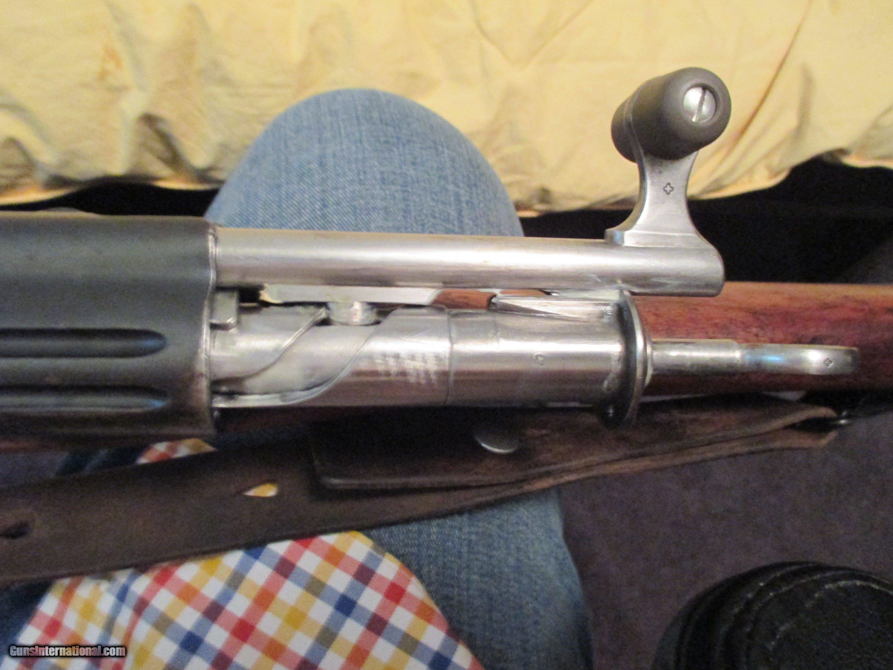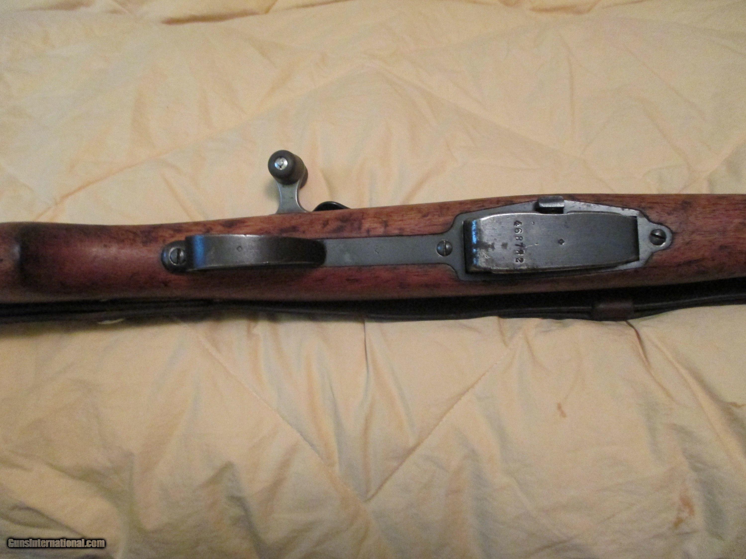 Description: WW1 vintage Swiss K11 in good to very good condition. Serial Number 30189 on bolt, barrel, receiver, stock and handguard. Magazine is mismatched. Manufactured by Waffenfabrik Bern in 1914 from serial number. Includes muzzle cap and leather sling. Shipping and insurance billed at actual cost for FedEx Grouind. SOLD Curio/Relic: Yes Rifle Caliber: 7.5x55mm Swiss |