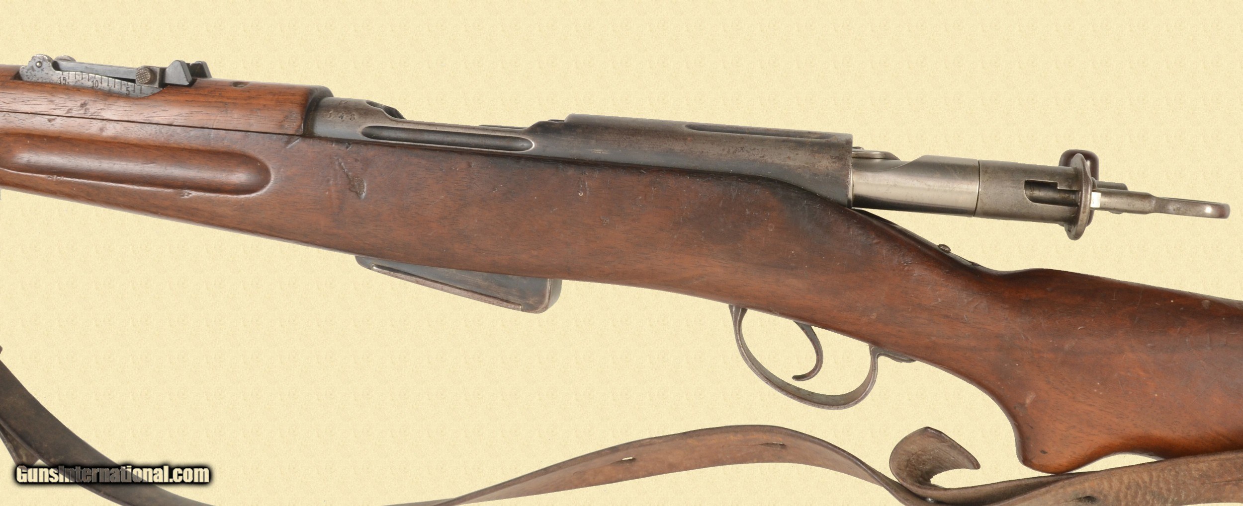 Description: 7.5mm; 60% blue, very good bore, very good stock, 23.3'' barrel, Mfd 1926. Matching numbers. The front sight is a winged blade, the rear sight is a Tangent elevation adjustable. Receiver, trigger guard and mag have turned gray with scattered patina. The stock has normal handling marks and dings. It is equipped with a brown leather sling. Bore is bright with sharp rifling. Import marked. Please call (309)342-5800 Tues-Fri, 10 am -6pm (CST), or Sat 1pm-6pm (CST), to speak with our sales team for further information, or to purchase firearms. FEDERAL FIREARMS LICENSE (FFL): is required on all shipments of modern guns. We must wait for a copy from your dealer before we can ship to them. We will also ship C&R eligible firearms to Curio and Relic (C&R) license holders. We accept your signed, legible FFL and C&R licenses via fax at 309/ 342-5730 (always on), email at FFLsimpsonltd or through the mail at Simpson Ltd; 140 S Seminary St; Galesburg, IL 61401. Pre-1898 firearms and non-firearms items are exempt from licensing requirements. All items shipped to an Illinois address will be charged 8.75% sales tax. NOTE: Because of recent shipping restrictions and charges placed on us by UPS and FedEx (handguns must ship via next day or 2nd day air and they have added a $10 surcharge for parcels over 48”. Our return policy lasts a maximum of 3 days from the time you receive your item. If 3 days have passed since you received your purchase, and we have not been contacted by you, unfortunately, we can’t offer you a refund or exchange. If you are not happy with your purchase, please contact us by phone and/or email to arrange for a return. Items must be shipped back to us to arrive with 7 days of notification of return. LAYAWAY POLICY: We are willing to put items on layaway for you under the following conditions: The item must be priced at $500 or more with a 20% minimum deposit and must be paid off within 30 days. You may have a maximum of 2 items on layaway at one time. If the balance is not paid off within the 30 day period, all deposits and payments will be forfeited and not returned or applied to another item. SOLD Serial Number: 148 |