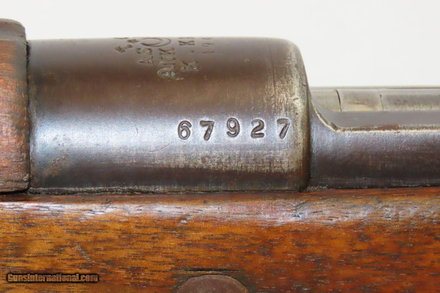 Description: WORLD WAR II Dated TURKISH MAUSER 7.92mm ANKARA K KALE Military Rifle C&R Turkish Model 98/22 Mauser Rifle Here we present a Turkish Mauser Ankara K. Kale Military Rifle made at the Kirikkale Rifle Factory just east of Ankara, Turkey circa 1942. There were 53,000 of these rifles made in 1942 with a total of 250,00 over the production run between 1940 and 1946. Many of the Turkish rifles were lumped together into a group called the Model of 1938, which wasn’t a single model, but rather a common set of features. The designation isn’t even one that the Turks used, but rather is a designation that U.S. importers used to describe these rifles. It is assumed that the Turkish military took whatever rifles that they had and converted them to this design. The most common of these rifles are the K. Kale marked rifles, such as this one. The markings on this rifle are T.C. for Turkive Cumhuriveti, for Republic of Turkey. A.S.F.A. for Askari Fabrika, or Military Factory. ANK ARA for the city of manufacture. And K. Kale for Kirikkale Rifle Factory. Though the Turks were neutral in World War II, they were courted by both the Allies and the Axis. But even with the courting, they stayed neutral to the end of the war. They gave refuge to both sides, giving refuge to the Germans that were escaping the Soviets in Bulgaria and Romania in 1944, and the Allies in Greece in late 1944 and early 1945. The overall condition is good. The action is strong all around. The bore is mostly bright. This example sports a solid stock. The barrel is dated “1942”. Here is a fantastic example of a scarce Mauser rifle! This firearm is classified as a Curio & Relic. Barrel is 29 inches. Caliber: 7.92mm Mauser Overall condition as seen in photos. Very Fast. Very Safe. FREE SHIPPING. Will need to be sent to your local FFL or C&R licensee. This firearm is classified as a Curio & Relic. Guaranteed AUTHENTIC & Includes CERTIFICATE OF AUTHENTICITY. ancestryguns $1185 #201414 SOLD Curio/Relic: Yes |