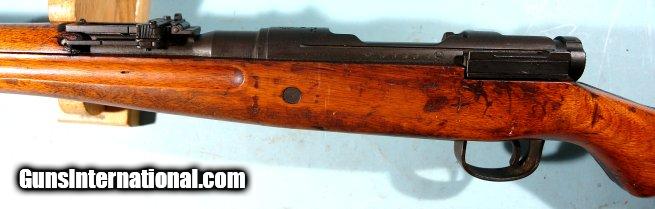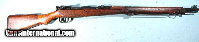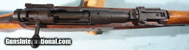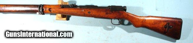 Description: WW2 JAPANESE ARISAKA TYPE 99 7.7MM RIFLE WITH MONOPOD AND MON. Serial number "583XX" and all matching including bolt. Mon still present on top of receiver. Original anti-aircraft wing rear ladder sight and front with one protective blade wing slightly bent(easy fix). Tokyo arsenal proof after serial number. All original arsenal finish on all parts. Original mono-pod(and sling swivels) still present as well as cleaning rod. Stock all original finish with period of use dings only and no evidence of cleaning although a few bayonet stab wounds in the shape of X's. Usually those with remaining Mons were battlefield captures. SOLD Curio/Relic: Yes |