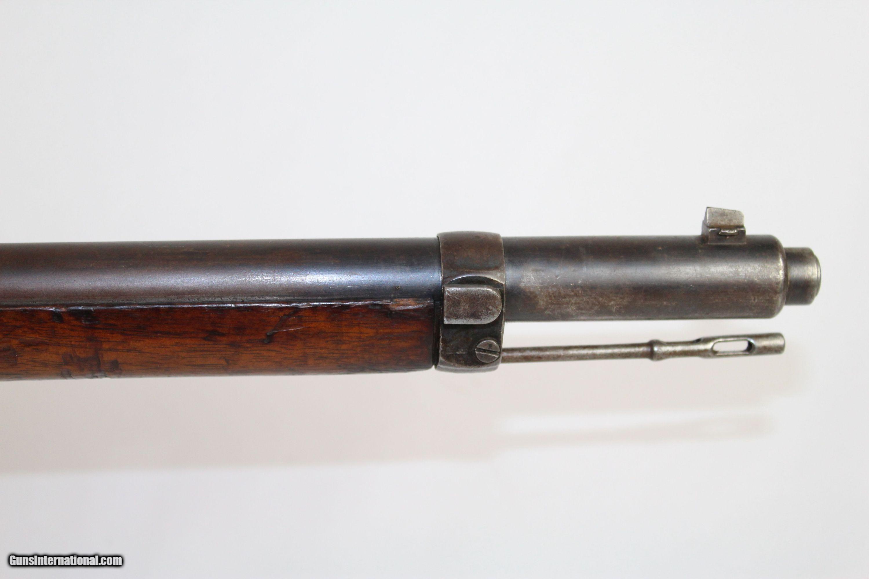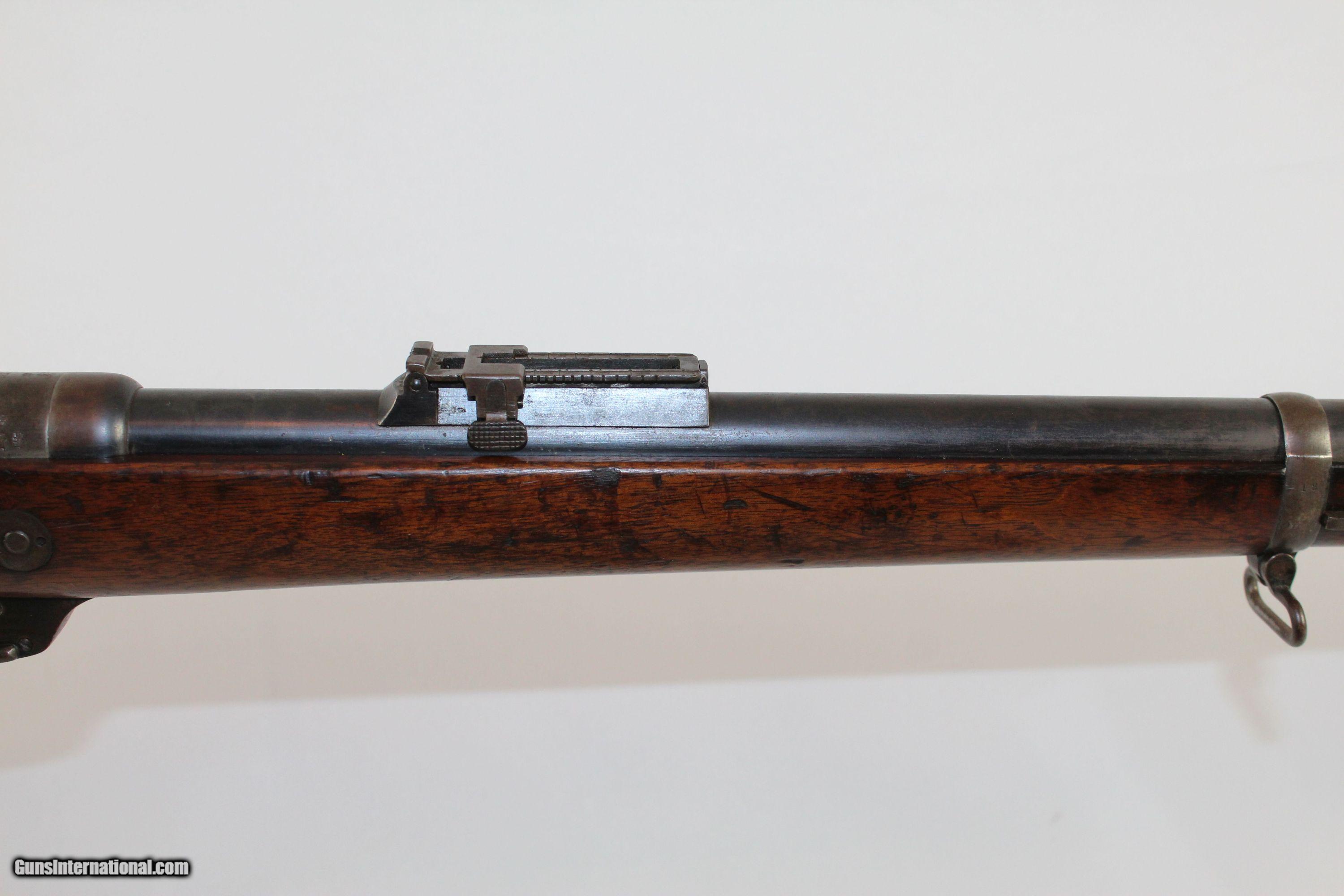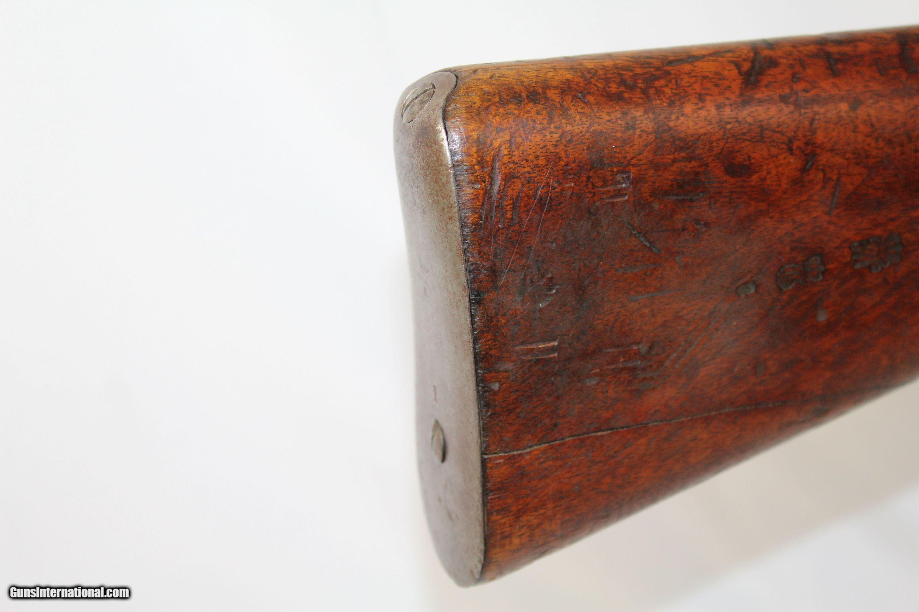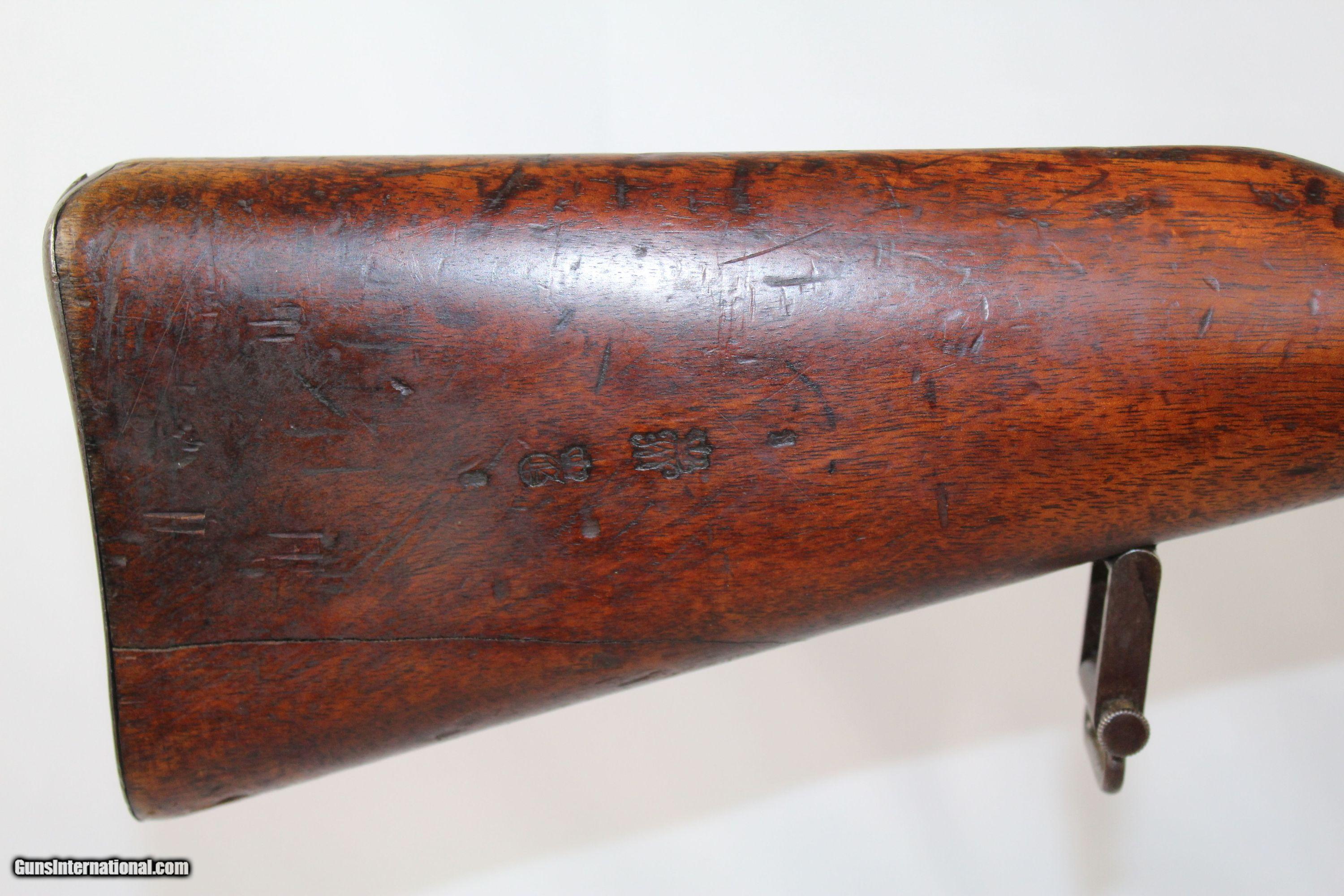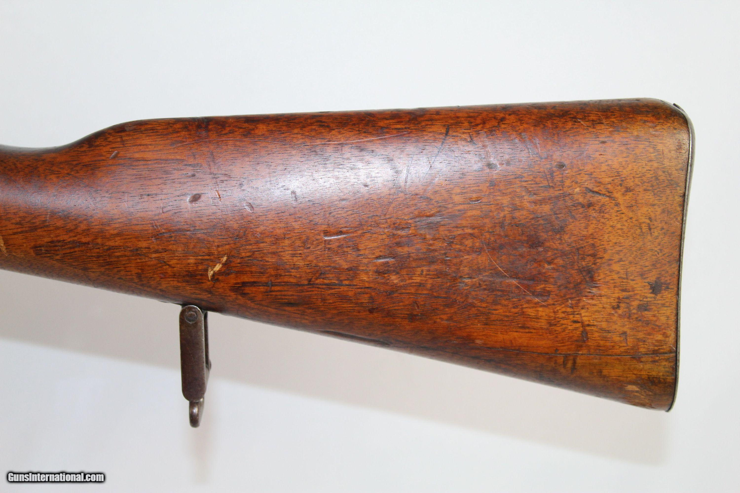Description: WWI C&R German/Turkish LOEWE Gewehr 88/05 Rifle Used by the Ottomans During WORLD WAR II! Here we present a German Commission Rifle Model 1888/05, made in 1890 by Ludwig Loewe & Company in Berlin, Germany. A highly advanced rifle when it was introduced, it was quickly made obsolete in the European arms race of the late 19th and early 20th Century. Mauser, who was furious with this rifle’s adoption, would soon dominate the market with his Model 98. When World War I saw Germany allied with the Ottoman Turks, the Germans provided the Turks these surplus rifles, which were then updated at the arsenal to accept the more modern spire point bullets, tighter barrel, rear sight marked in Farsi, and clip ejection port covered up. This rifle is dated on the receiver “1890”, which is the year of manufacture. The bottom of the clip ejection port cover is dated “1914”, when it was at the arsenal. The receiver is also marked “LOEWE BERLIN” with a “Crown/S” mark. The left side of the receiver is marked “GEW 88” in Gothic letters. A series of proofs are on the right side of the receiver. German acceptance marks are located behind the trigger guard and on the right side of the butt stock. The rear of the butt plate is marked “10/A”. The rear barrel band is marked “83.R.E.1.70.” The forward barrel band is marked “59.R.6.79.” These are likely unit markings from German service. The bolt handle is marked with a crescent, the rear sight is in Farsi, and it appears that various parts were renumbered in Farsi. The overall condition is very good. The original blue on the barrel shroud is about 50% with the balance having a dark patina. The numerous markings are clear and legible. The serial numbers on the barrel, receiver, screws, and magazine match while the barrel bands are mixed. The stock is solid and in good shape, with a solid period repair to the toe. The bore is excellent, with sharp rifling and bright surfaces. The action is excellent and strong. Here is a very nice historical rifle for your collection! This firearm is classified as a Curio & Relic. Barrel is 30 inches. Caliber: 7.92x57mm Overall condition as seen in photos. Very Fast. Very Safe. FREE SHIPPING. Will need to be sent to your local FFL or C&R licensee. This firearm is classified as a Curio & Relic. Guaranteed AUTHENTIC & Includes CERTIFICATE OF AUTHENTICITY. ancestryguns $1000 #5084 SOLD Curio/Relic: Yes |