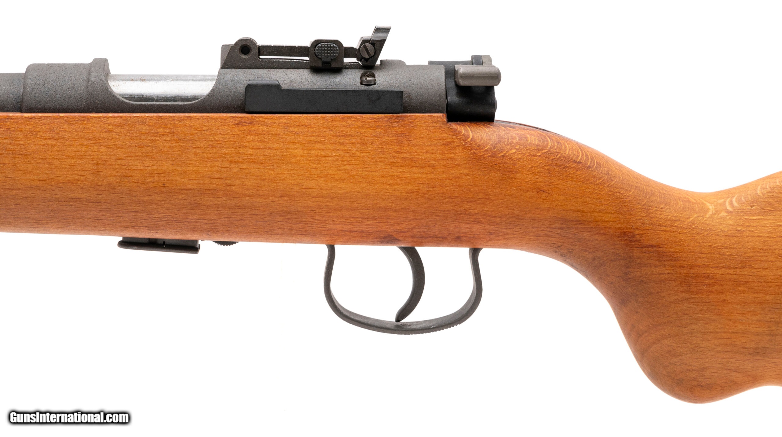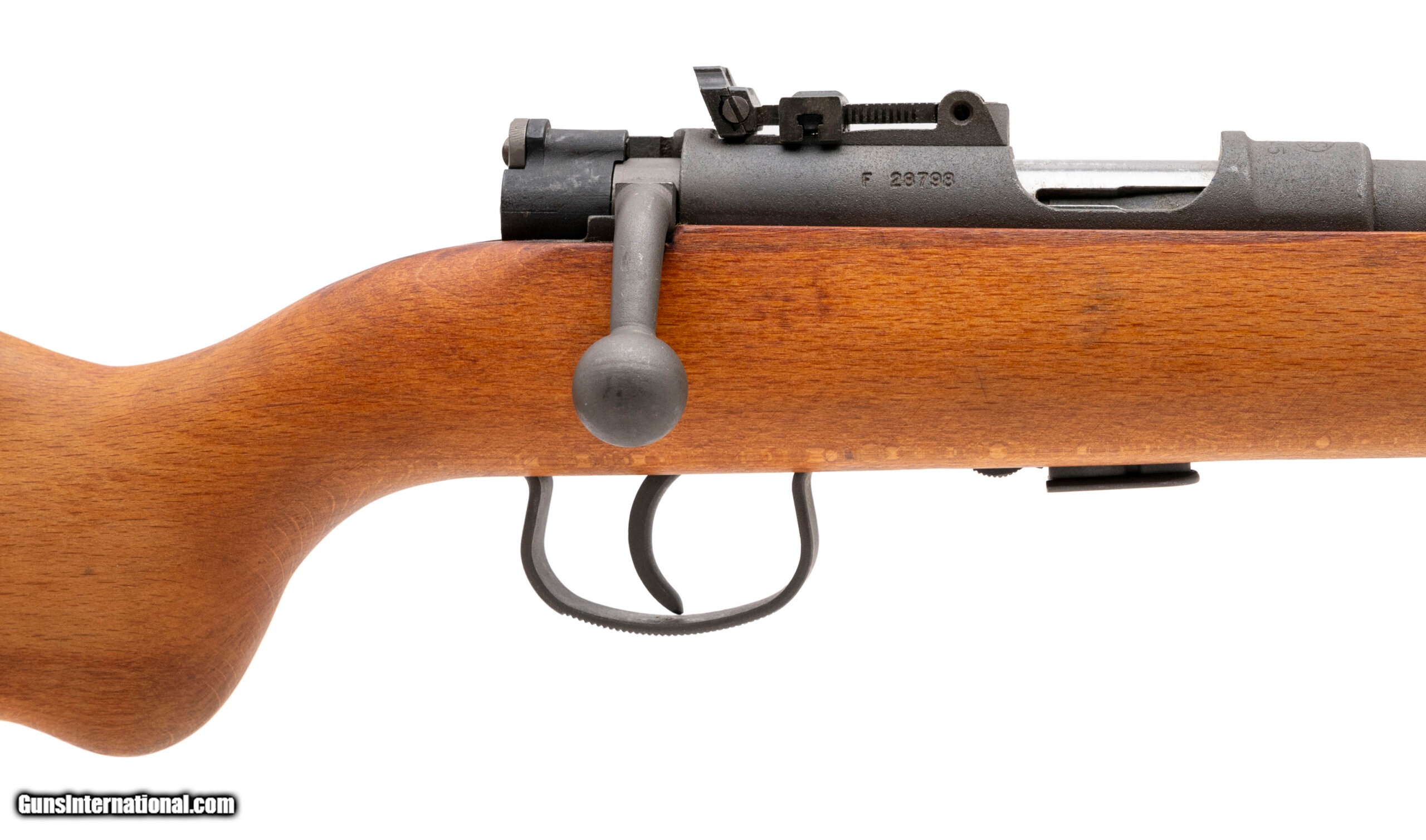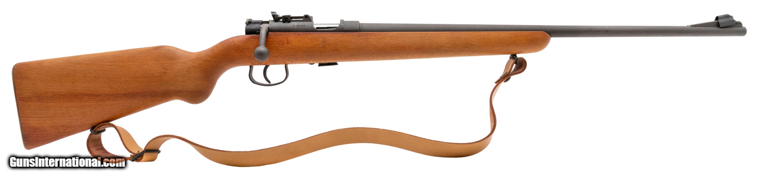 Description: "Serial No. F28798, circa 1945-1946, .22 L.R., 24" round barrel. Bore is bright and shiny with handsome rifling visible. Bolt is matching to the receiver, Parkerized finish is 96% with some discoloration noted on the barrel. Stock is in excellent condition; action is smooth and functions correctly. Rifle comes with original sling. Consignment SOLD Curio/Relic: Yes |