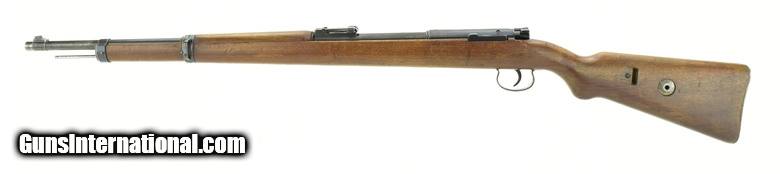Description: "Oberndorf Mauser .22 LR caliber rifle. German trainer rifle. Bore s excellent. Metal has approximately 80% original blue, thinning to patina. Wood is very good with minor nicks and dings. Very good overall condition. SOLD |
