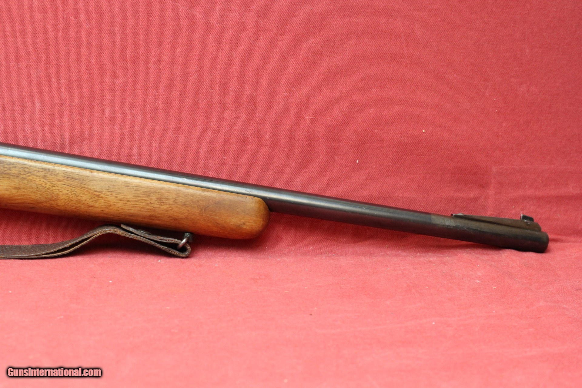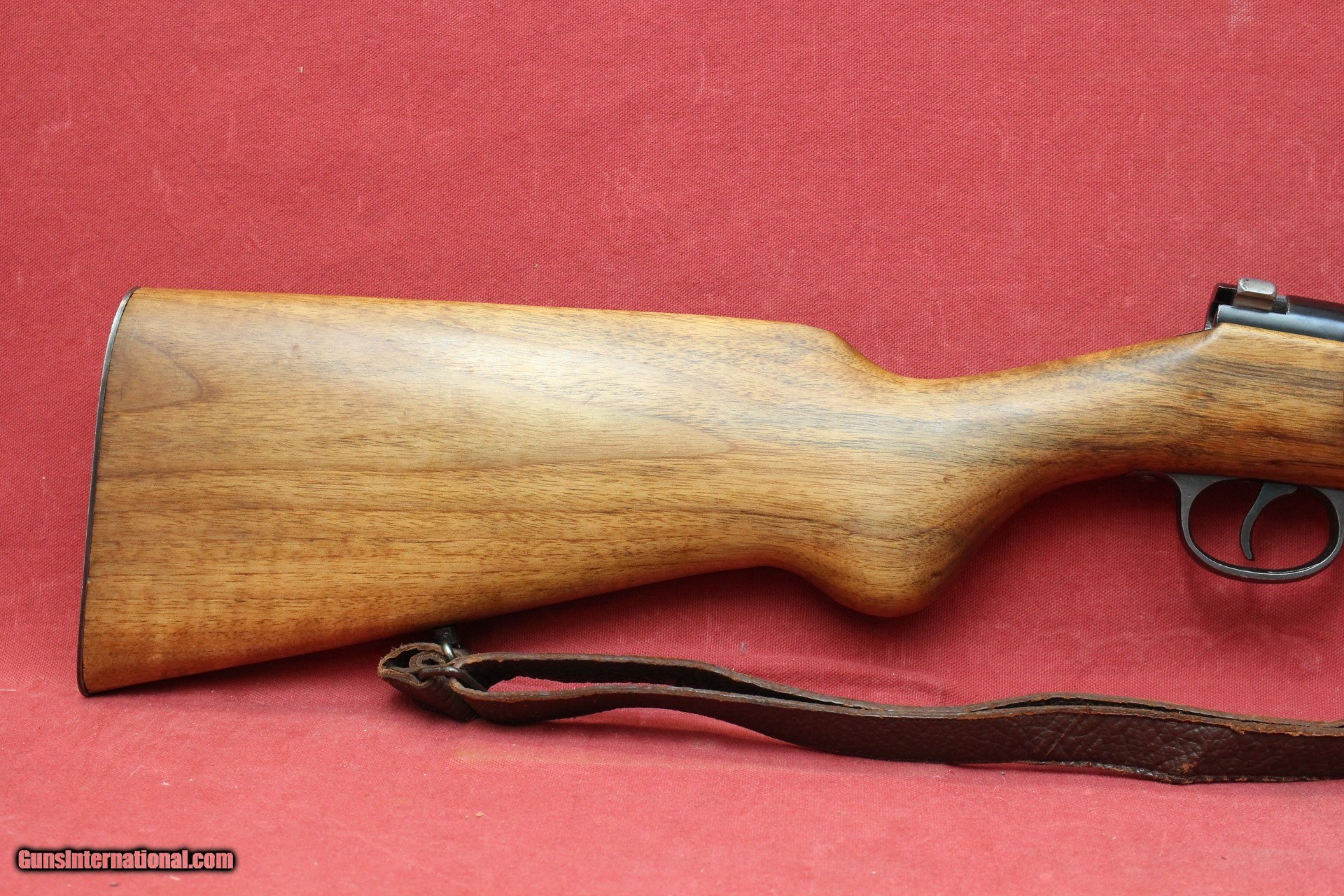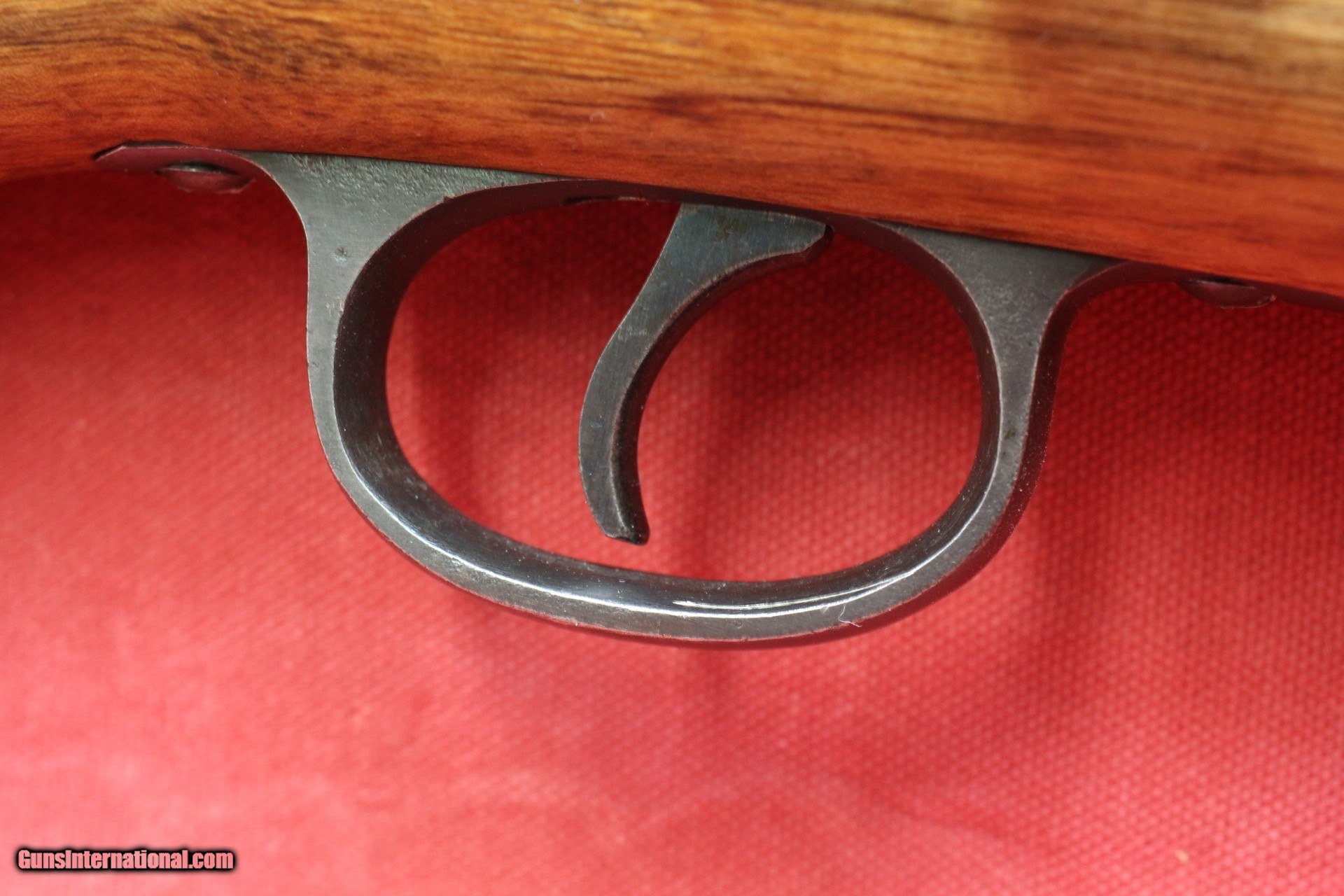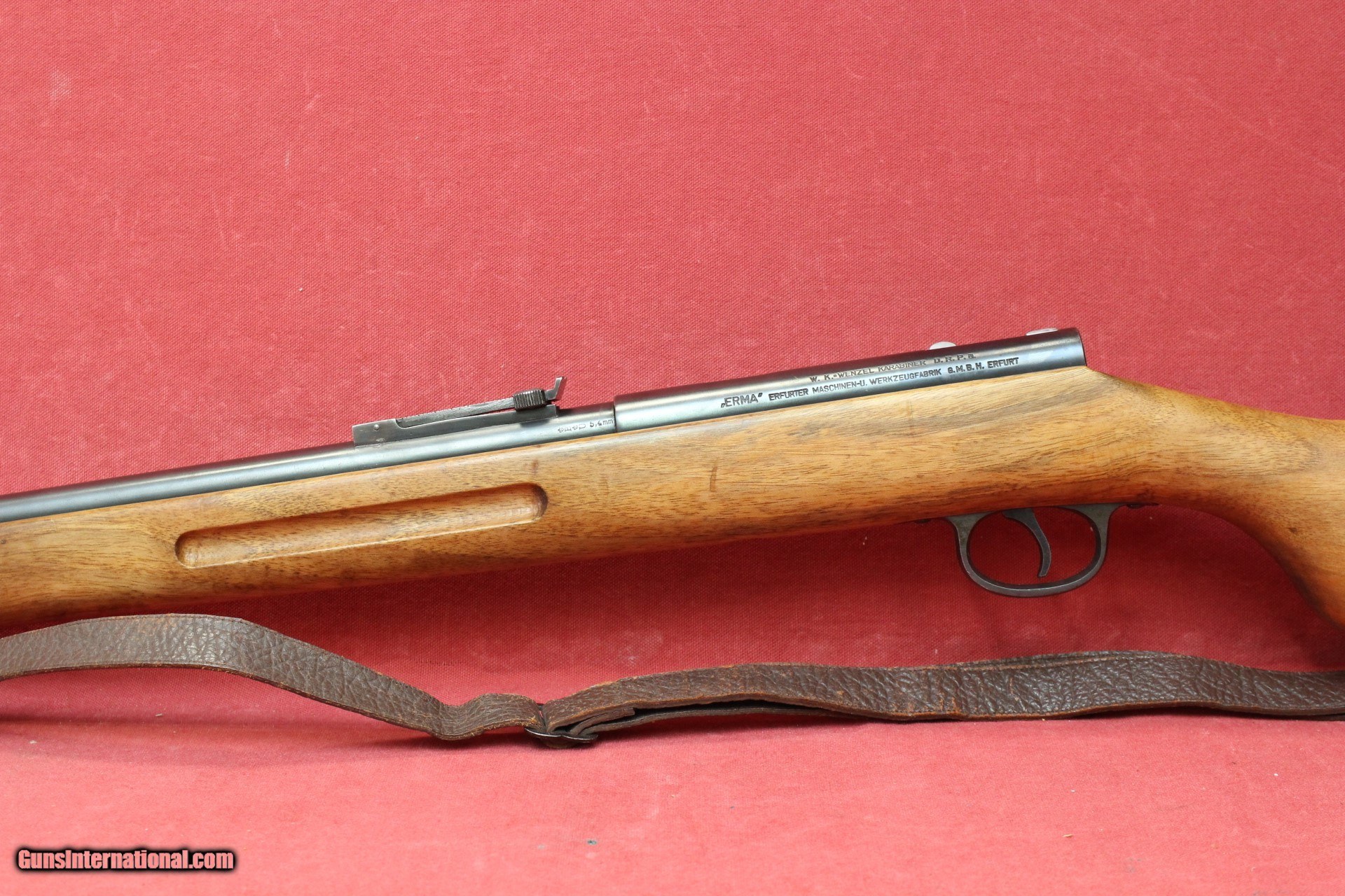 Description: 22lr, serial number 82XX. Marked "Wenzel Karabiner D.R.P.a Erma Erfurter Maschinen-U Werkzeugfabrik G.M.B.H. Erfurt". 25" barrel, single shot. Correct rear sight. Front sight appears to be correct but has been filed and possibly re-installed. Wood has been uniformly sanded, otherwise in good condition, buttplate slightly proud at toe. No large marrs or cracks. Top half of barrel 4" back from muzzle (under front sight) shows possible chemical removal of bluing. Otherwise metal shows normal wear/use. Bore is excellent. Metal buttplate. More photos on request. Please add $40.00 for shipping and insurance. Will ship to C&R. SOLD Curio/Relic: Yes |