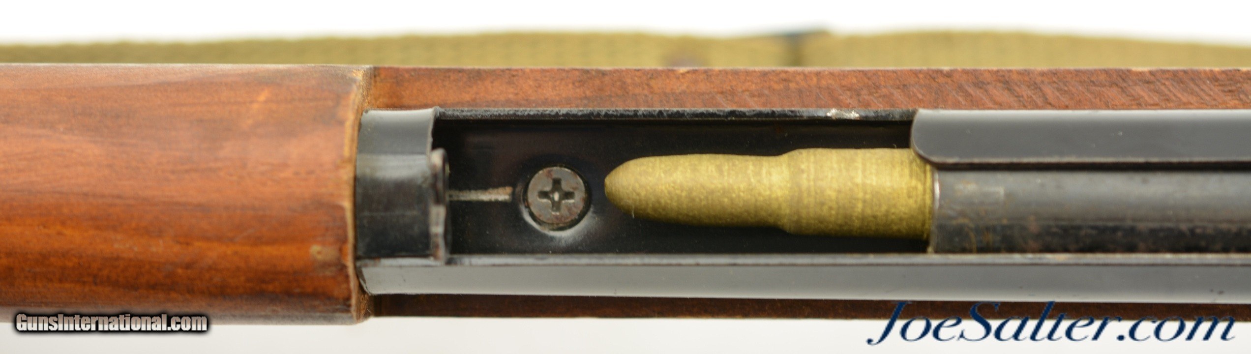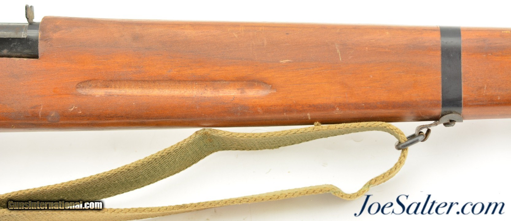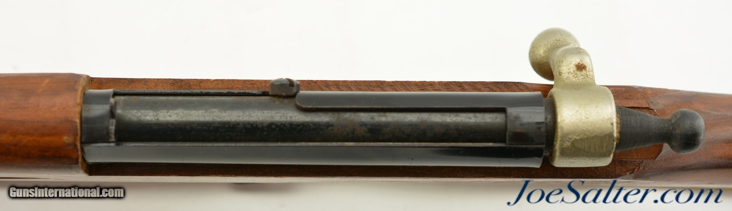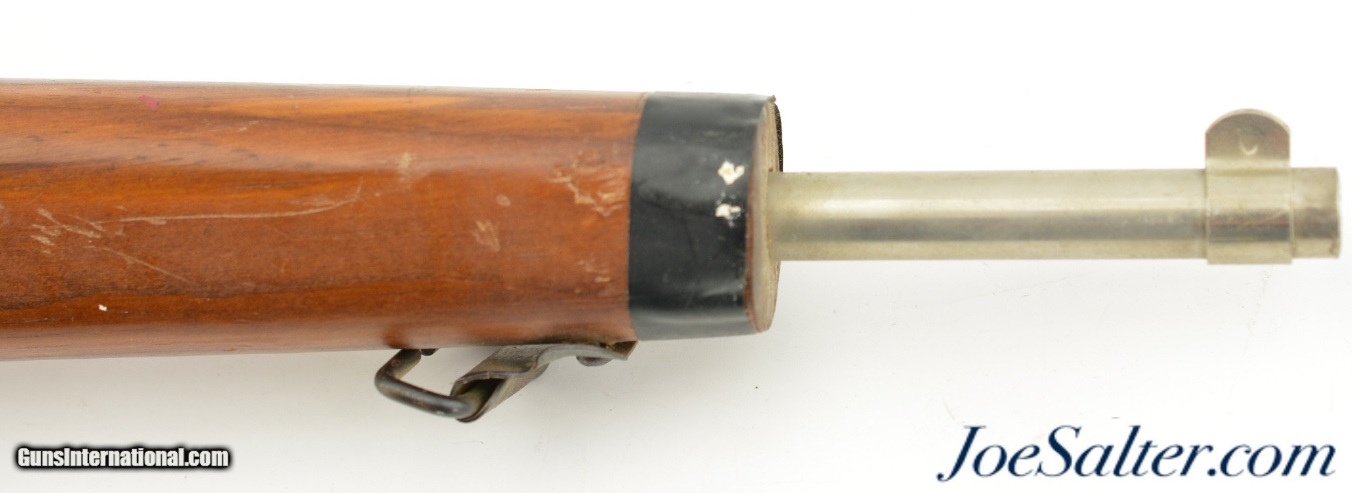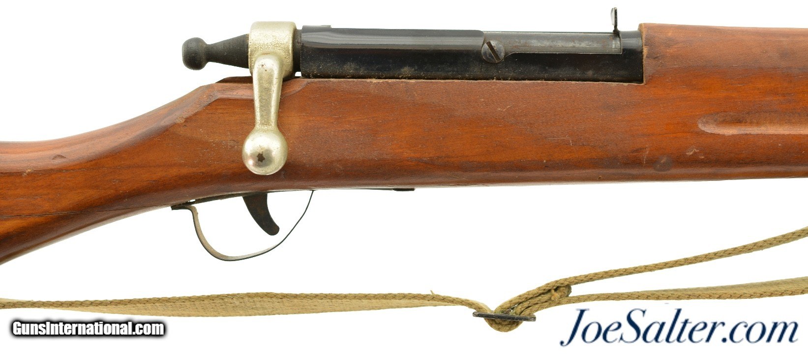 Description: This is a non-firing, Vintage Parris-Dunn M1903 Springfield Training Rifle. Although now unmarked, with the outline of the original sticker on the side of the stock, I'm certain they were made by the Parris Mfg. Co. and is vintage, I would make these as post war and were made in the '50s or '60s. Designed to look like M1903 Springfield bolt action rifles, complete with a wooden bullet in the chamber and three potion sling. This example measure 43 inches long and has numerous chips, scratches and minor wear to the finish. Overall in very good condition. The bolts and triggers work fine and any metal pieces have light oxidation, the sling is in very good condition. ; Curio/Relic: Yes Price: $129.00 Contact Seller |