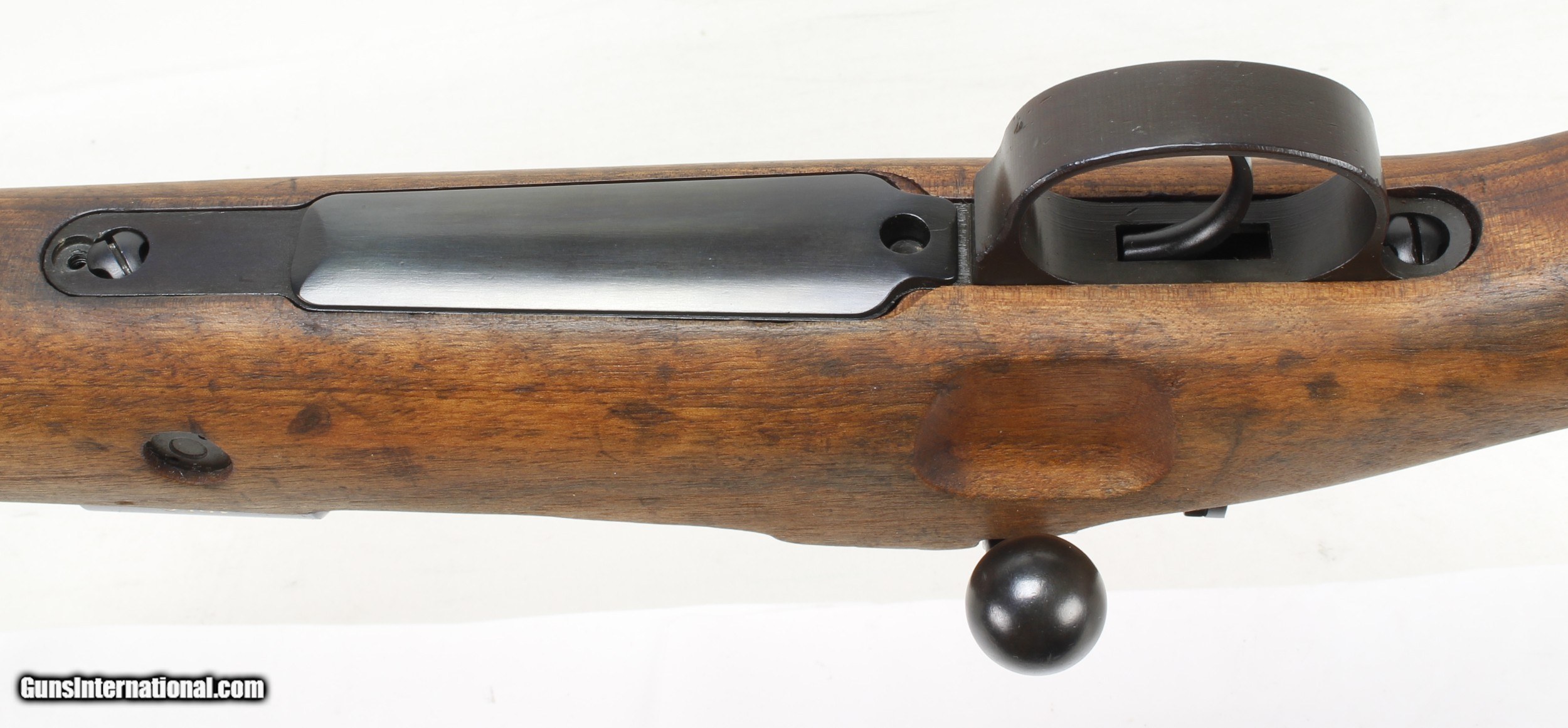 Description: This listing is for a very hard-to-find FN K98 22 Trainer, s/n: 1959, that was produced in 1952 as part of a 1000-gun contract for the Israeli Defense Force. These were full-size 98's fitted with an FN barrel and converted to single-shot. This rifle is in outstanding condition, bluing and wood have been professionally refinished. 24" barrel, bore is excellent! Hooded front sight, ramp rear sight ranges from 25 to 200 meters in 25m increments, "13" is carved into the stock just in front of the floorplate (probably a rack number), "0.22" marked on right rear of stock. This is a rare opportunity to own one of these unusual rifles! $1649.00 plus $45.00 shipping to lower 48 SOLD Curio/Relic: Yes Rifle Caliber: .22 Long Rifle |