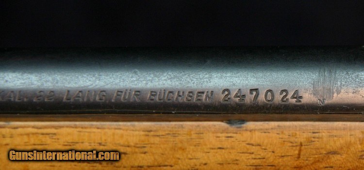 Description: .22lr, 26 inch barrel, blue finish, hardwood stock, original sights, all matching numbers Condition: excellent bore, 95% blue, excellent wood may have been cleaned, excellent markings, excellent mechanically. SOLD Curio/Relic: Yes |